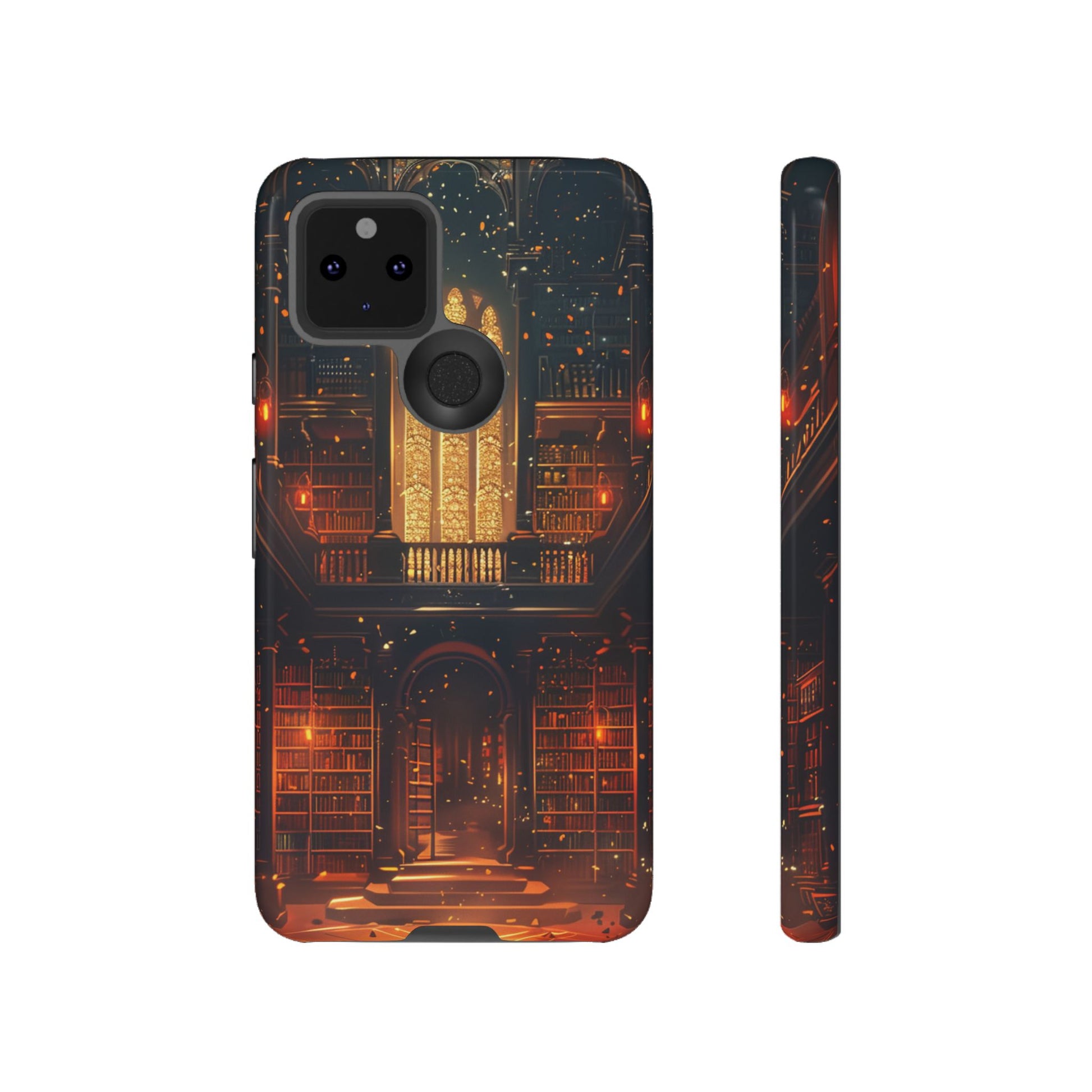 Golden embers drift across shadowy bookshelves and a glowing sigil floor, turning your Google Pixel into a relic from a secret academy. High‑definition art combines with impact‑resistant dual‑layer construction for daily protection.