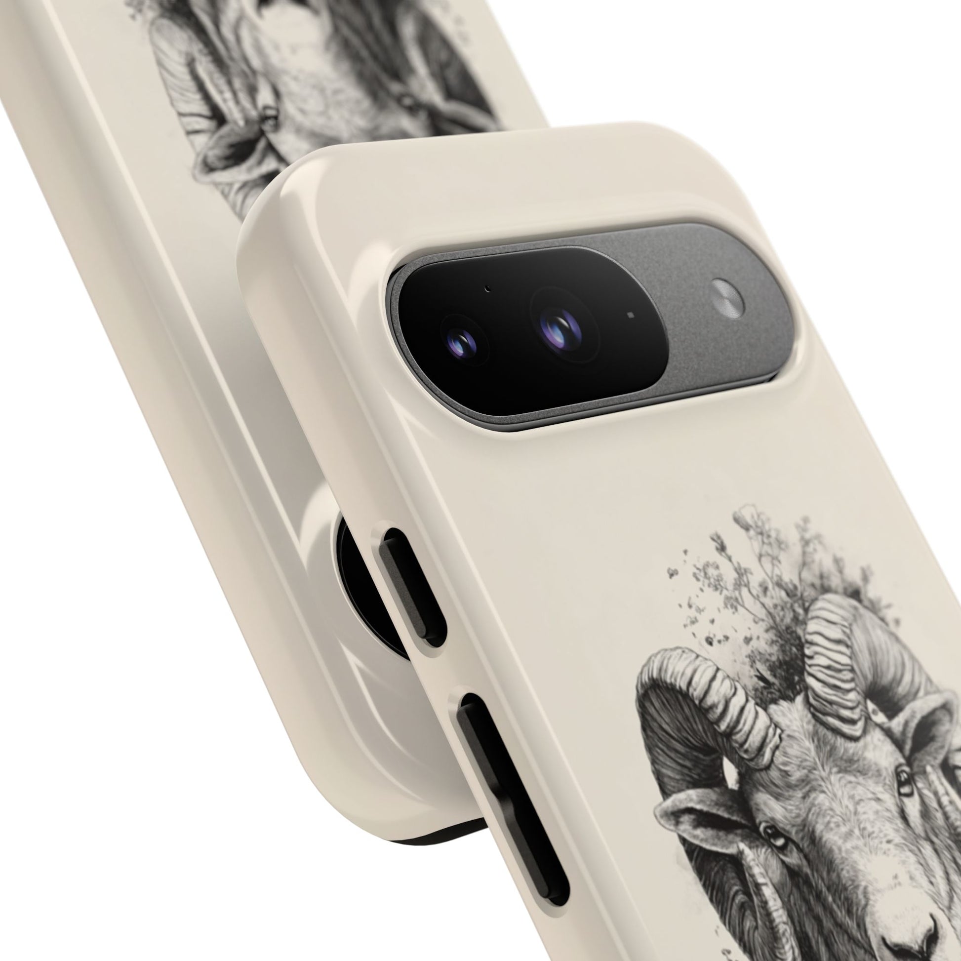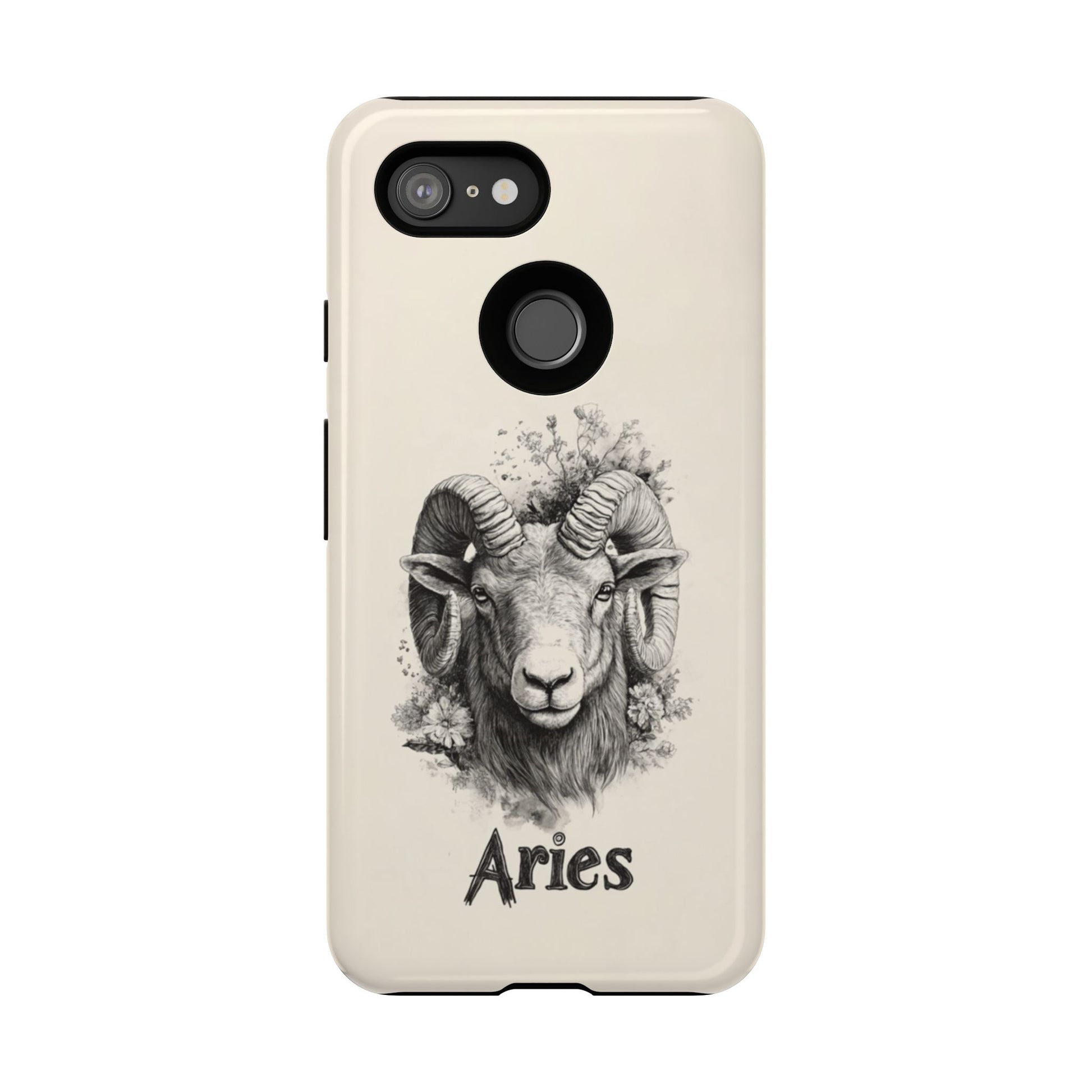 Embrace your fiery Aries spirit with our stunning Aries Zodiac Google Pixel case. This elegant design features a beautifully detailed ram's head with magnificent curved horns, rendered in exquisite pen and ink style illustration. Delicate botanical elements including wildflowers and foliage gracefully frame the powerful ram, creating a perfect balance of strength and natural beauty. The vintage-inspired aesthetic on a soft neutral background makes this design both timeless and sophisticated. Perfect for Aries born between March 21 - April 19, or anyone who appreciates detailed artistic illustrations and celestial themes.
