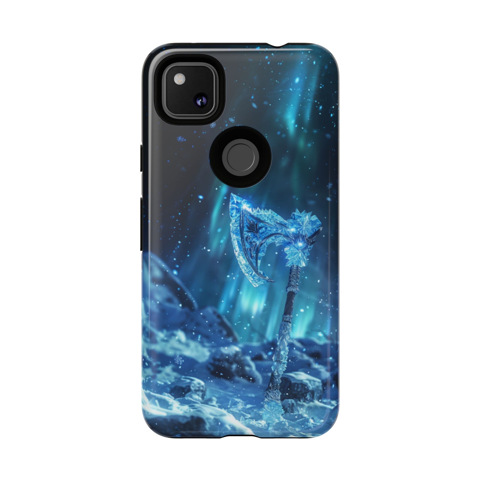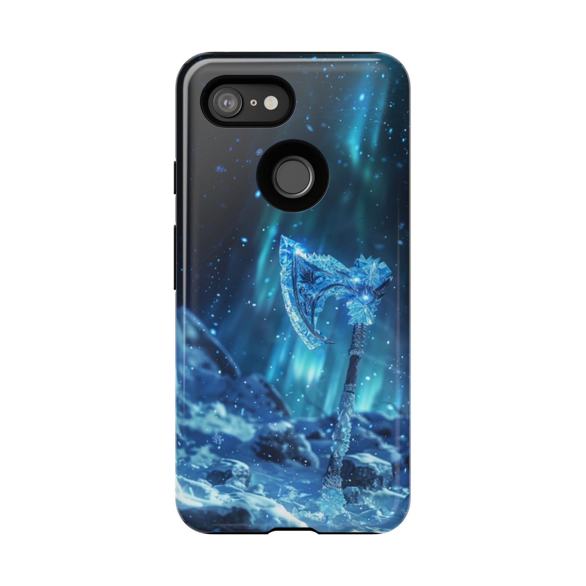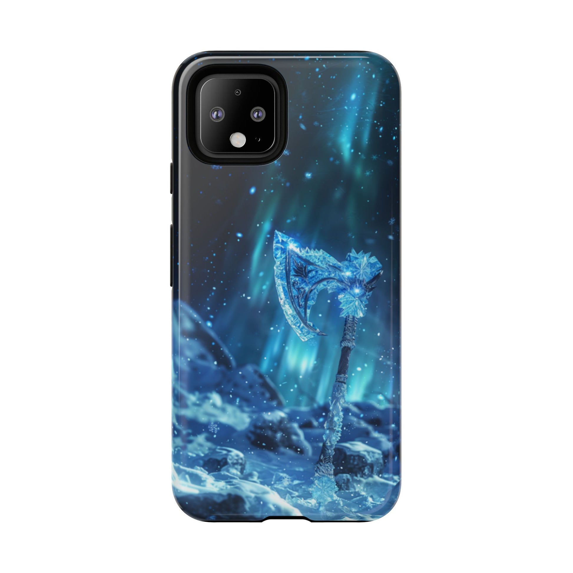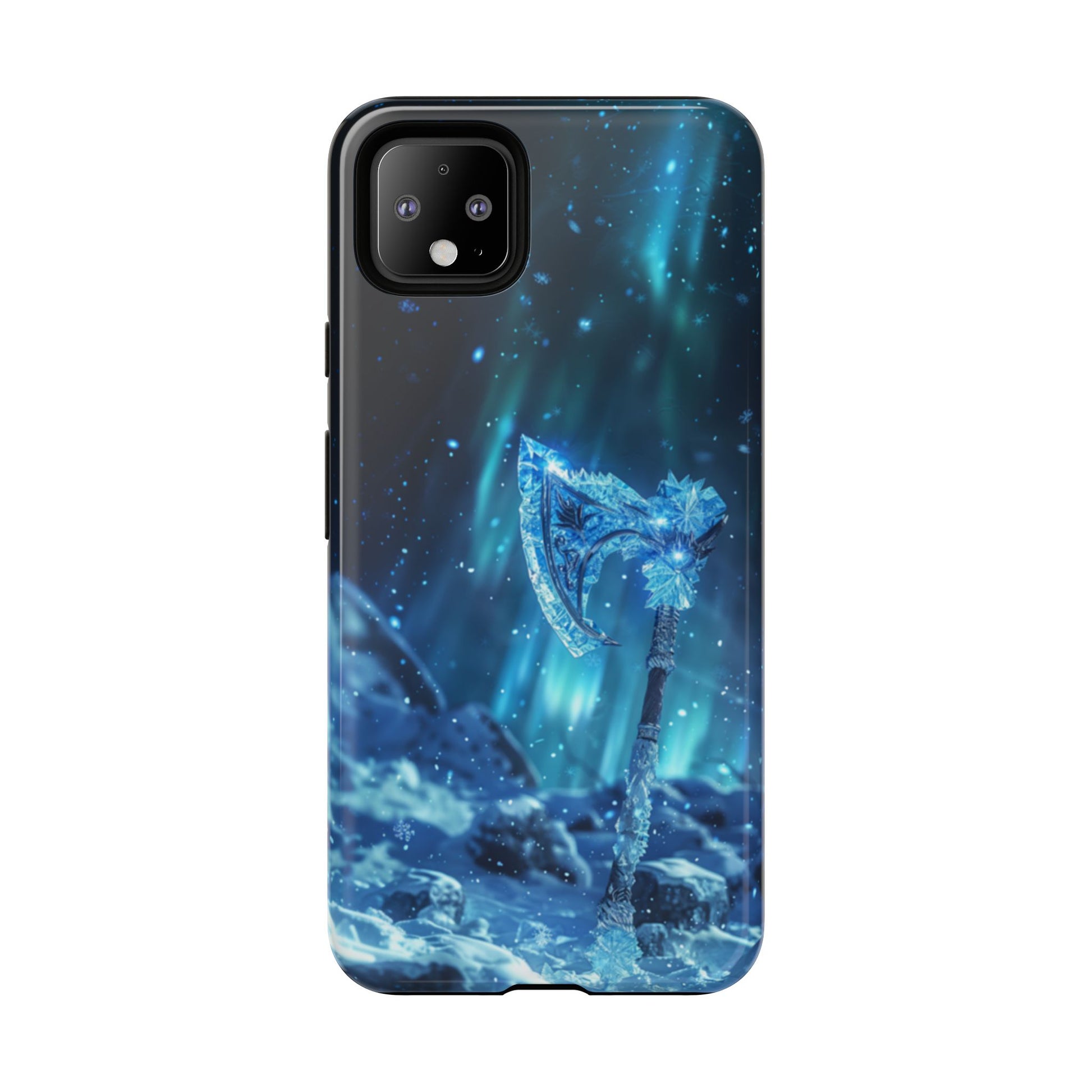 Witness the power of eternal winter with our magnificent Aurora Ice Axe Google Pixel case. This breathtaking design features a legendary crystalline war axe with intricate frost engravings, radiating brilliant blue energy beneath the dancing northern lights. The ornate weapon appears to be forged from pure ice crystal, with elaborate patterns and mystical runes that glow with arctic power. Delicate snowflakes drift through the aurora-lit sky while the axe stands majestically in the pristine snow, creating a scene of pure winter magic and legendary might. Perfect for winter enthusiasts, aurora lovers, or anyone drawn to the mystical beauty of ice magic and northern mythology.