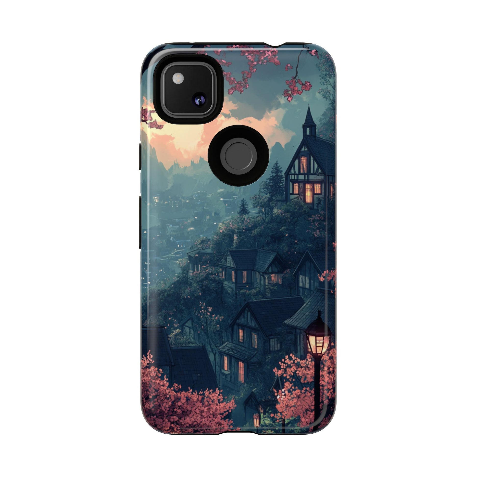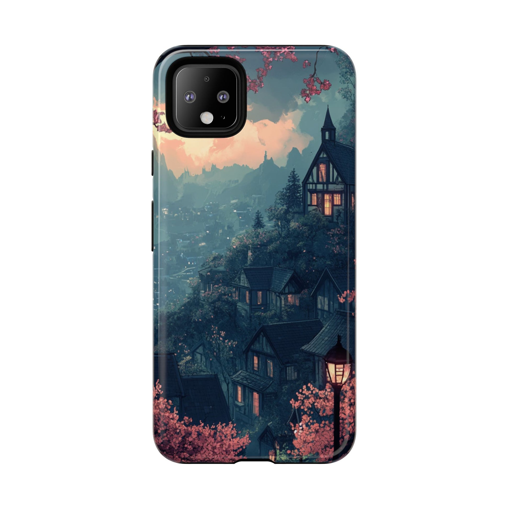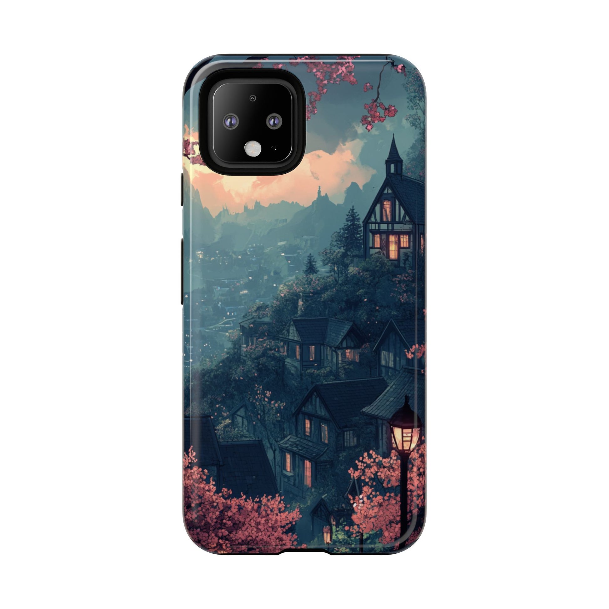 Cobblestone steps wind through a cherry‑blossom hillside village, lanterns aglow, beneath a pastel evening sky. This high‑definition scene adorns your Google Pixel while impact‑resistant dual‑layer construction guards against life’s bumps.