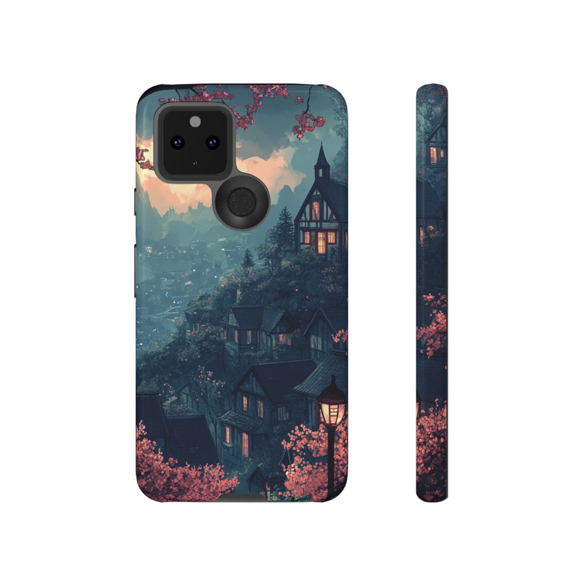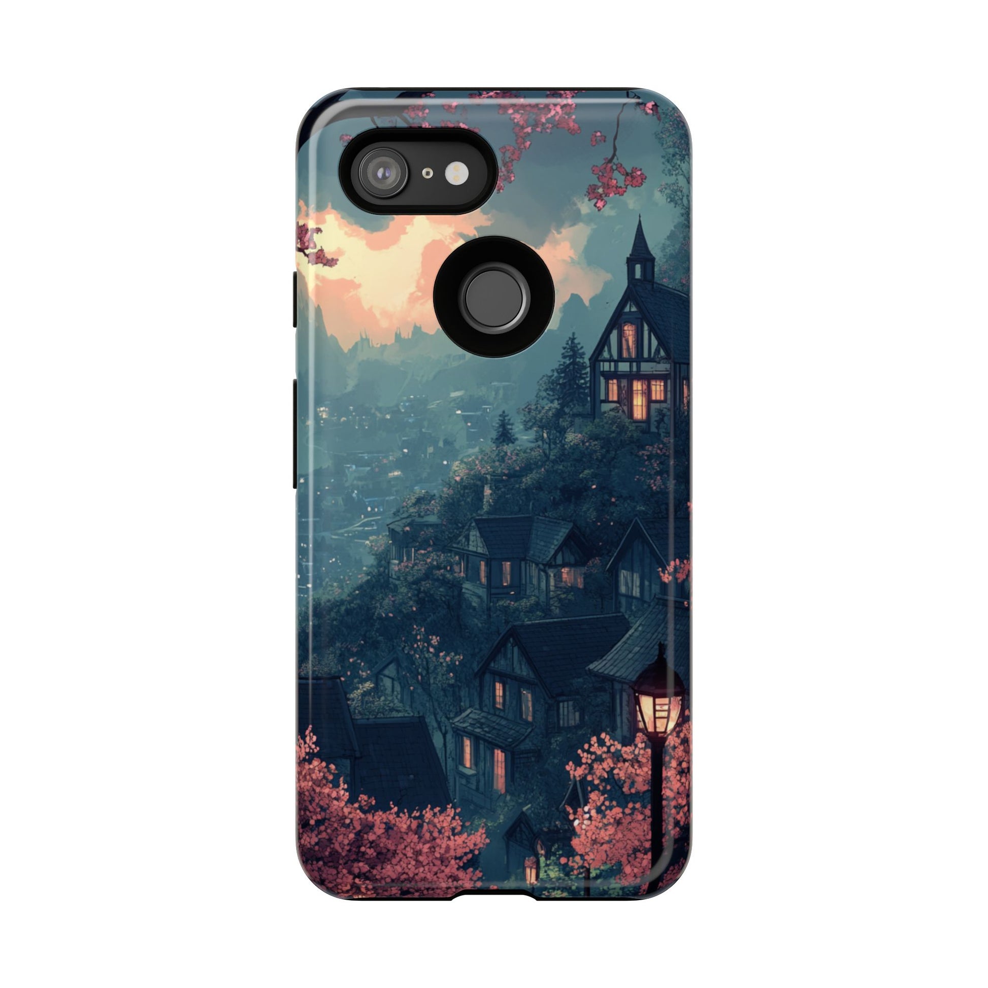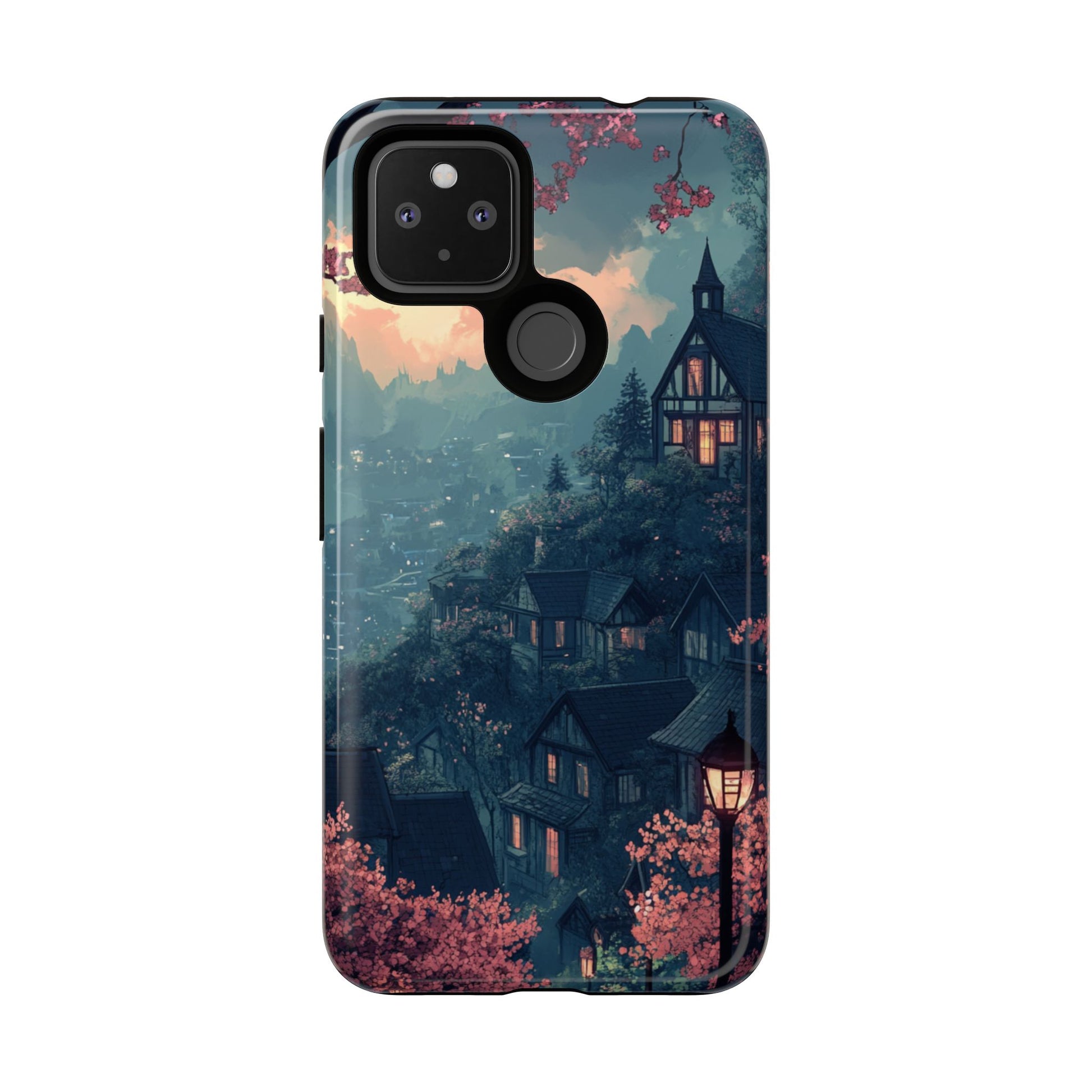 Cobblestone steps wind through a cherry‑blossom hillside village, lanterns aglow, beneath a pastel evening sky. This high‑definition scene adorns your Google Pixel while impact‑resistant dual‑layer construction guards against life’s bumps.