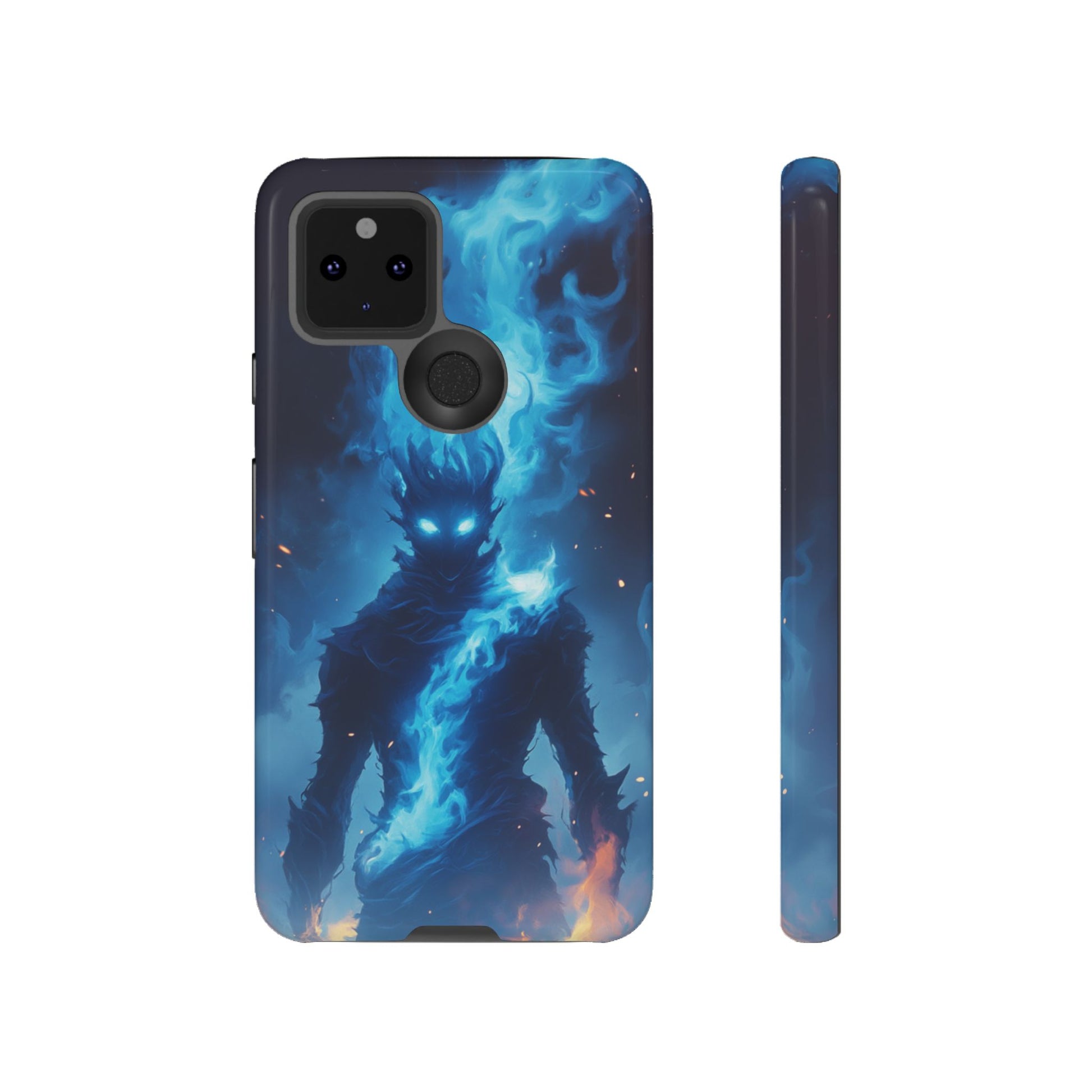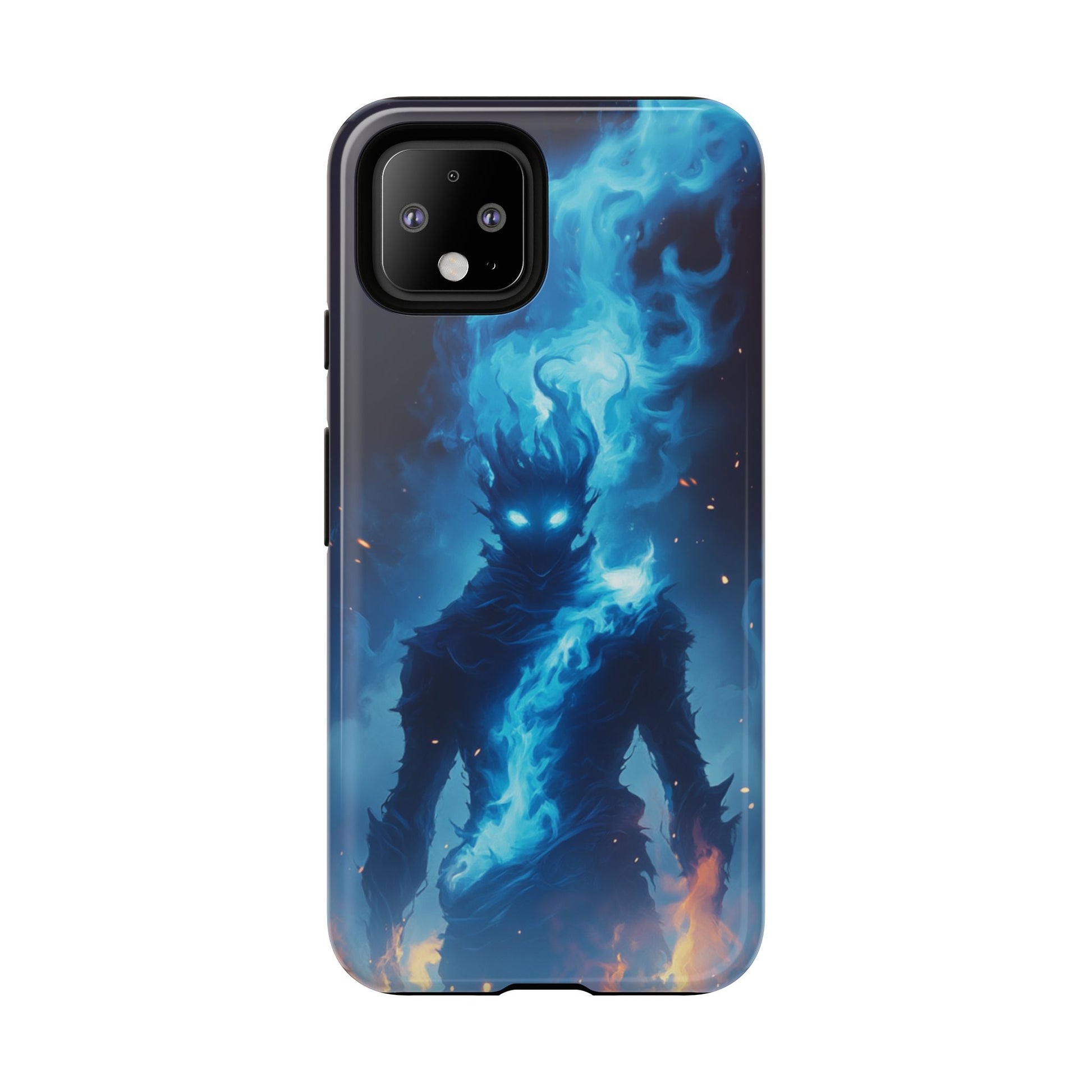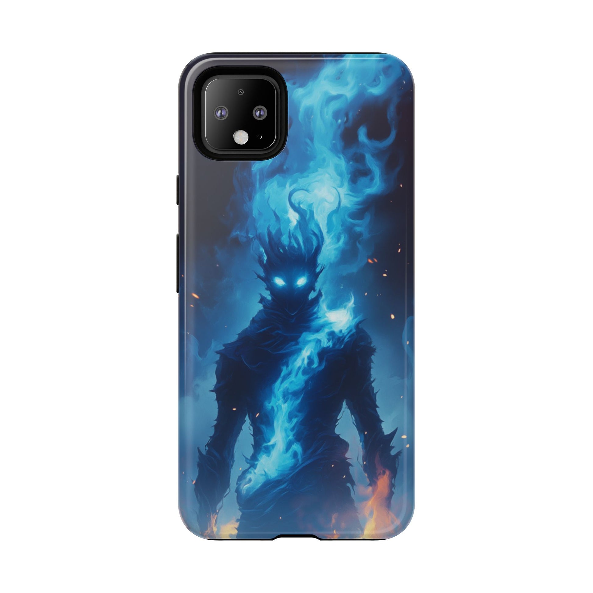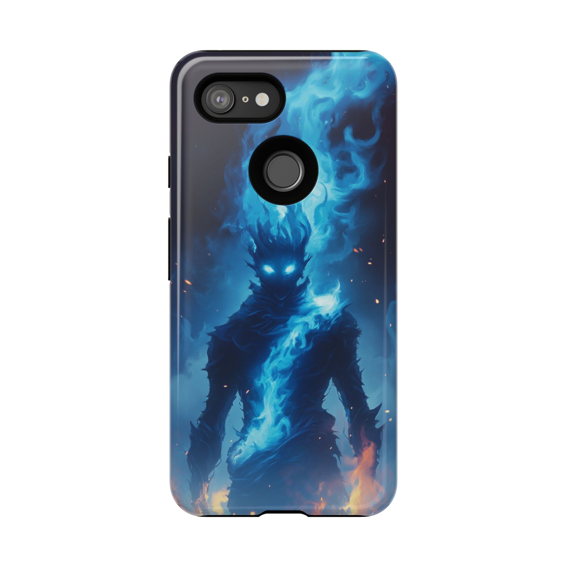 Enter a realm of mystical power with our captivating Blue Flame Spirit Google Pixel case. This mesmerizing design features a mysterious figure wreathed in brilliant blue ethereal flames, with piercing glowing eyes that seem to peer into your soul. The dark silhouette is surrounded by swirling spiritual energy in luminous blues and teals, while warm orange flames dance at the base, creating a stunning contrast between celestial and earthly elements. Perfect for fantasy enthusiasts, lovers of supernatural art, or anyone drawn to mystical and otherworldly imagery that evokes power and mystery.