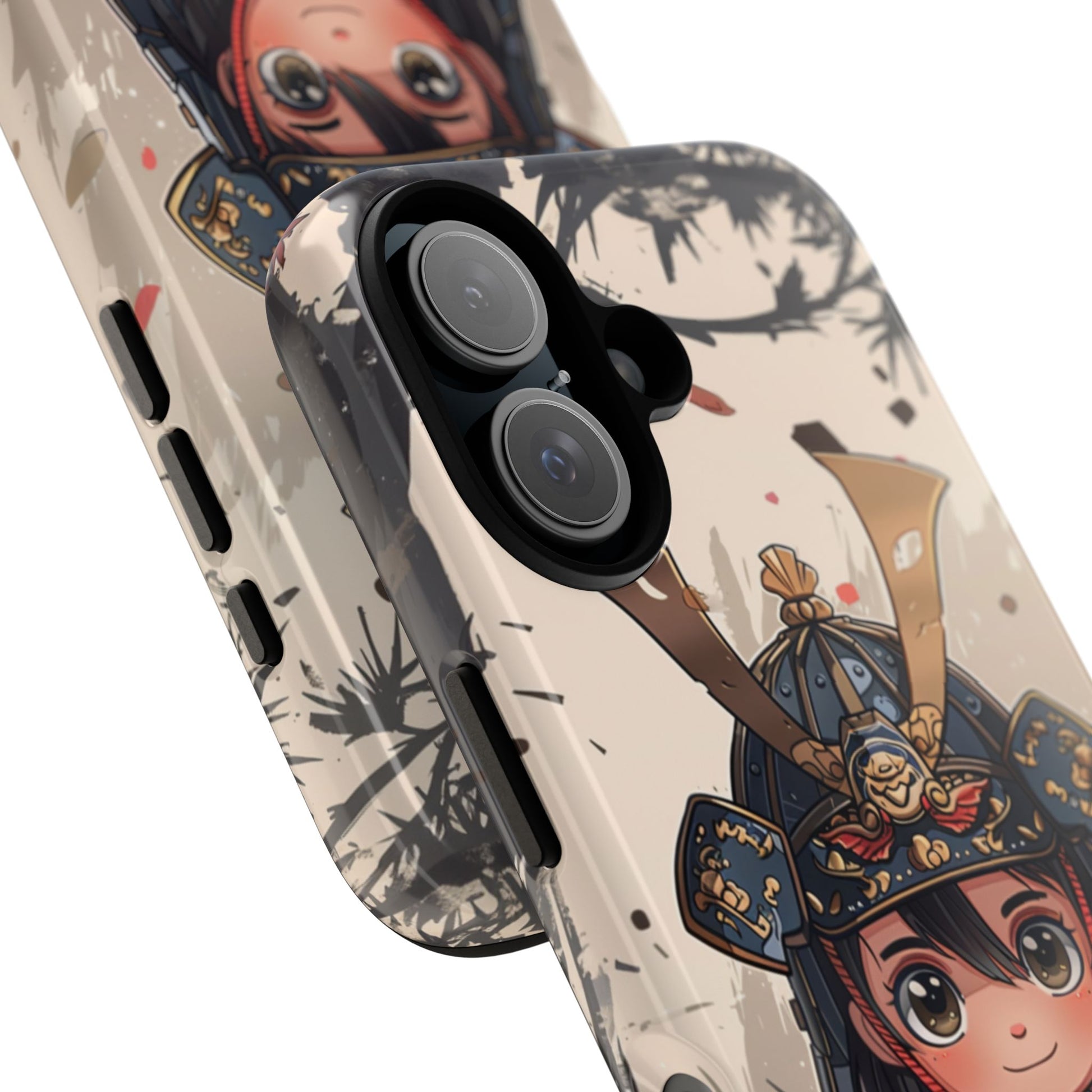 Embrace your inner warrior with our adorable Chibi Samurai iPhone case. This charming design features a cute chibi-style samurai warrior dressed in detailed traditional armor with ornate blue and gold detailing, complete with a katana sword and authentic Japanese helmet. Set against a backdrop of falling autumn leaves and artistic ink brushstrokes, this kawaii interpretation of the noble samurai combines fierce warrior spirit with irresistible cuteness. The soft color palette and anime art style create a perfect balance between strength and adorable charm. Perfect for anime enthusiasts, kawaii collectors, or anyone who loves the combination of cute aesthetics and warrior culture.