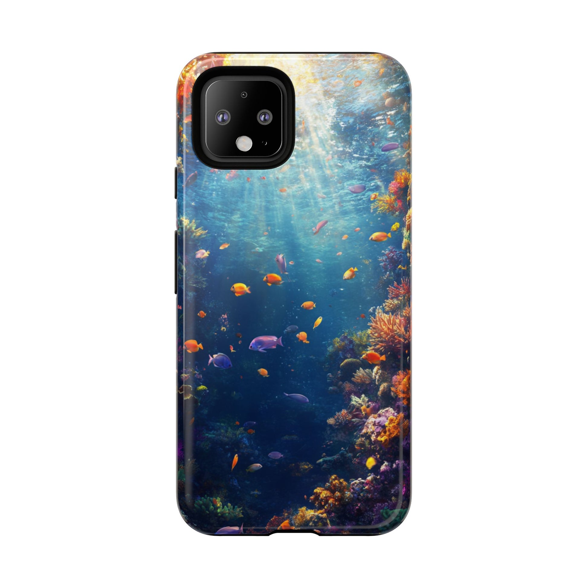 Protect your Google Pixel with our premium Coral Reef Paradise phone case featuring a breathtaking underwater coral reef scene with vibrant tropical fish and stunning sunlight rays. This robust Pixel case delivers outstanding drop protection while showcasing mesmerizing marine life artwork perfect for Pixel users who love underwater adventures.