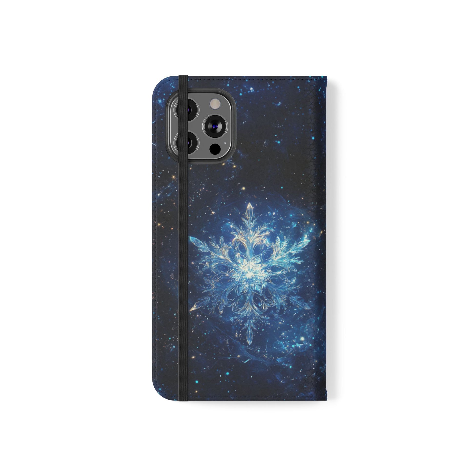 Protect your phone with our premium Cosmic Snowflake wallet case featuring a luminous crystal snowflake glowing against a deep space starfield with golden and blue celestial lights. This versatile flip case combines wallet functionality with comprehensive phone protection, card storage, and enchanting cosmic winter artwork.
