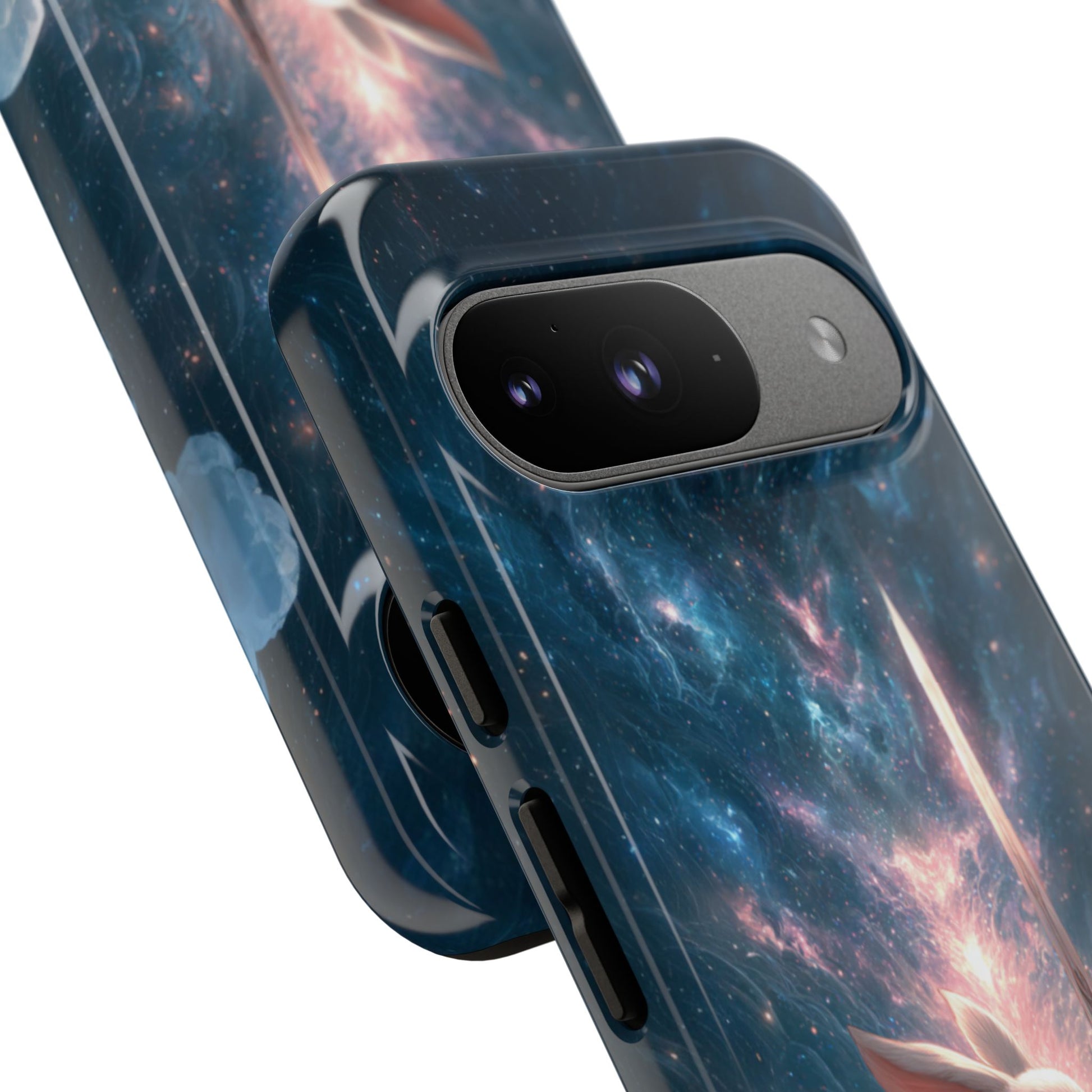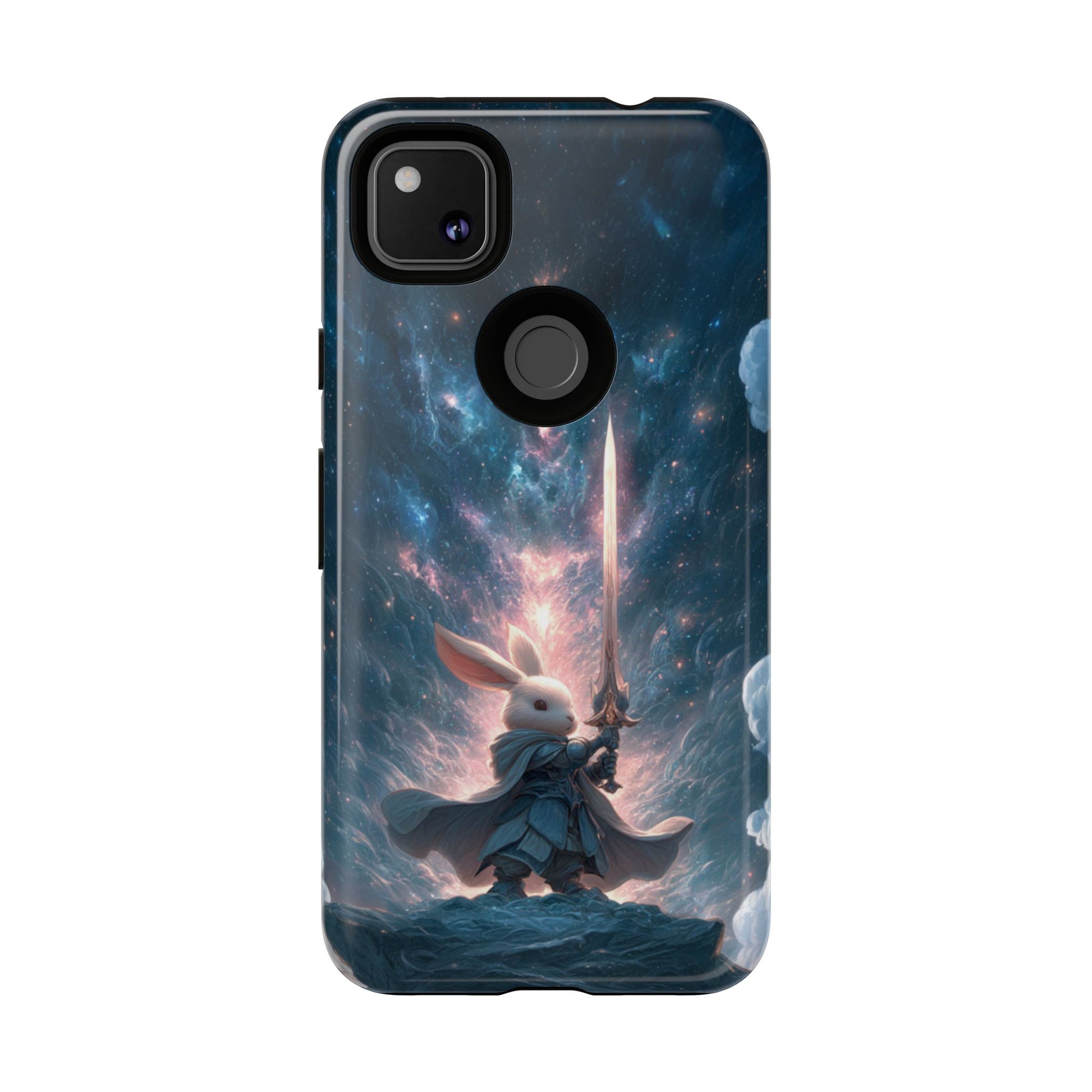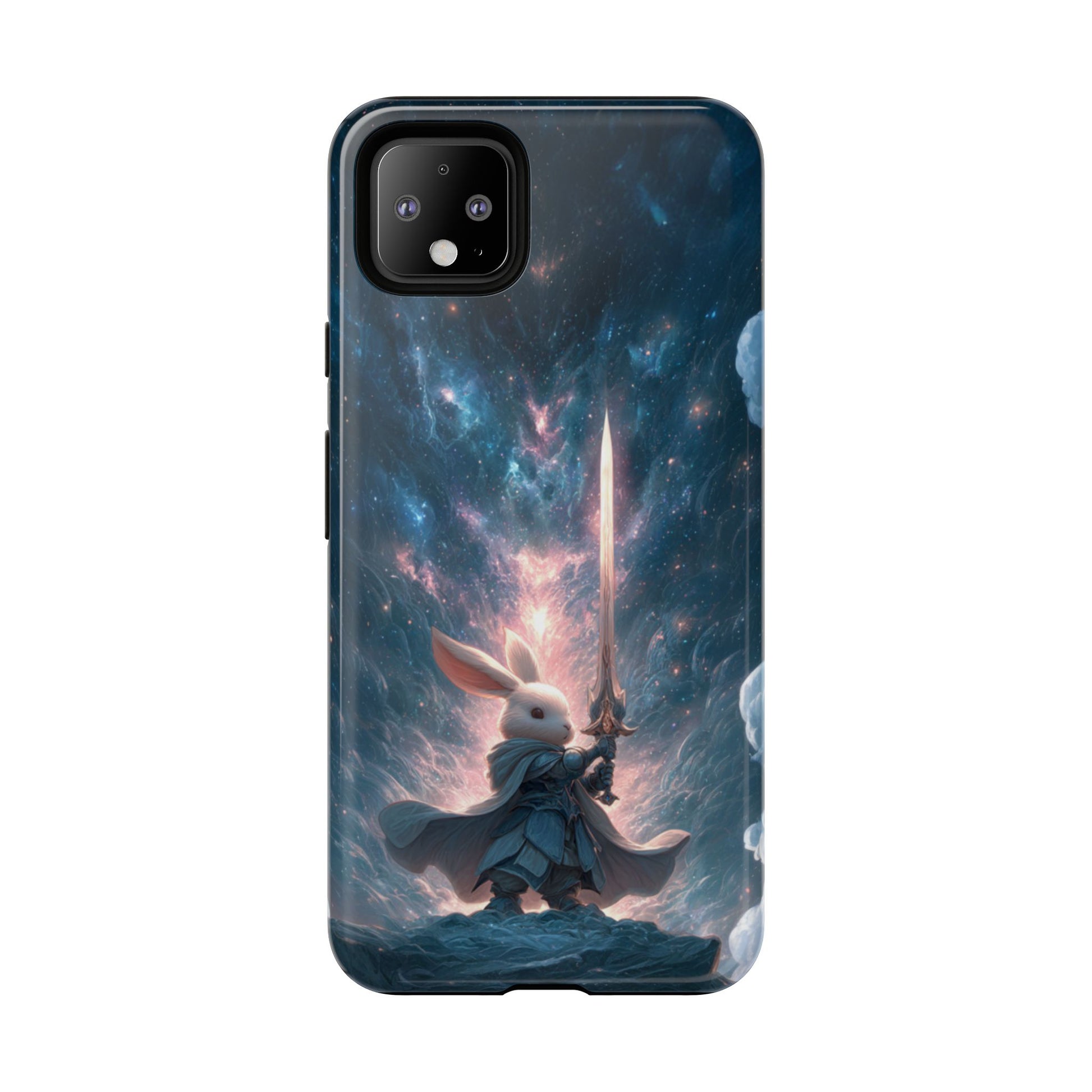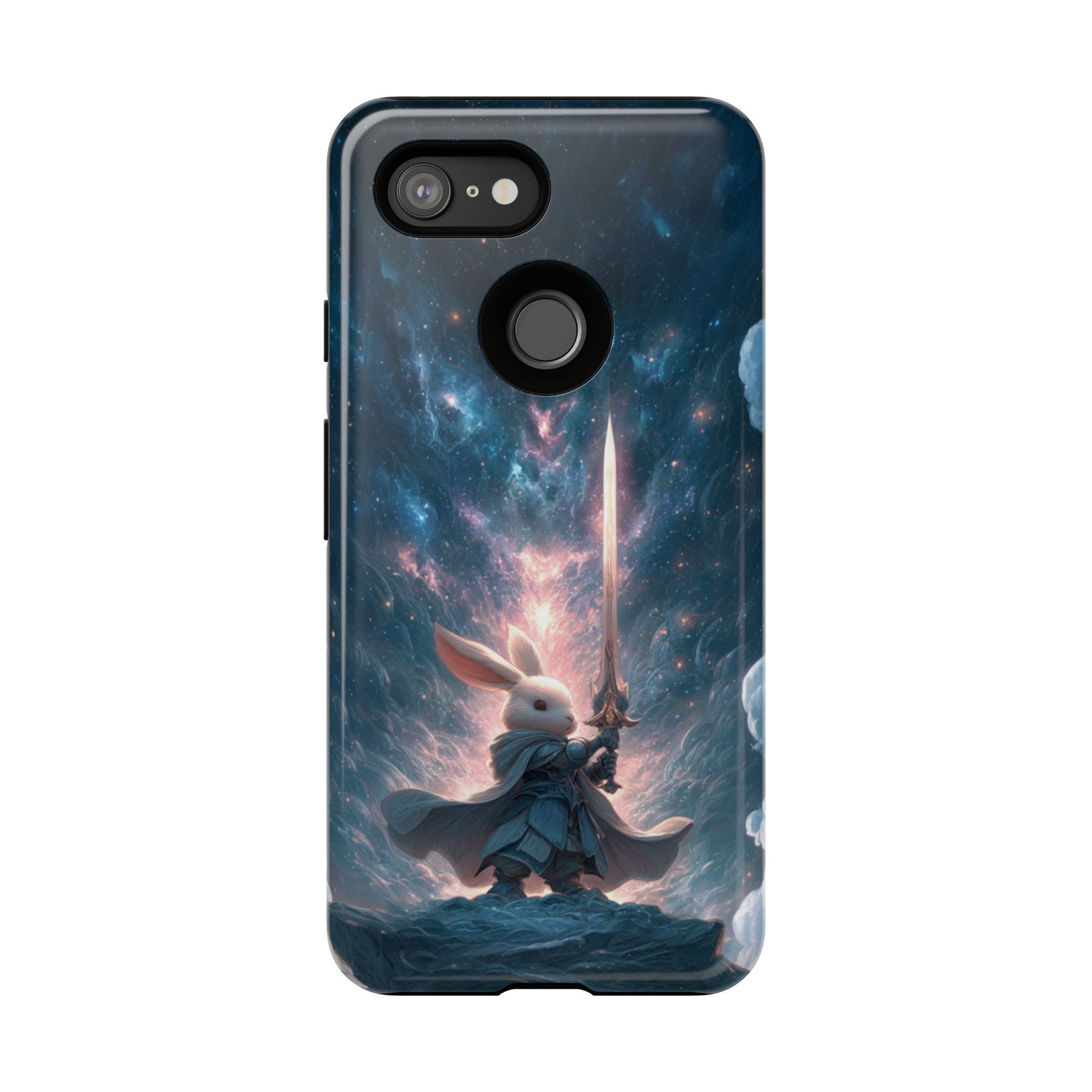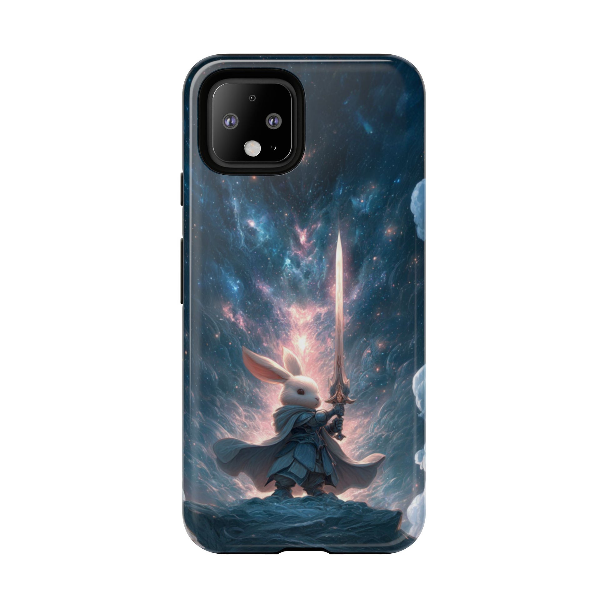 Journey through the cosmos with our epic Cosmic Warrior Rabbit Google Pixel case featuring a noble rabbit warrior wielding a radiant sword against a backdrop of swirling galaxies and stellar nebulae. This magnificent design combines fantasy adventure with cosmic wonder, as the heroic rabbit stands triumphant on a celestial cliff surrounded by brilliant starlight and cosmic energy. Perfect for fantasy enthusiasts and those who love unique anthropomorphic characters in epic settings.