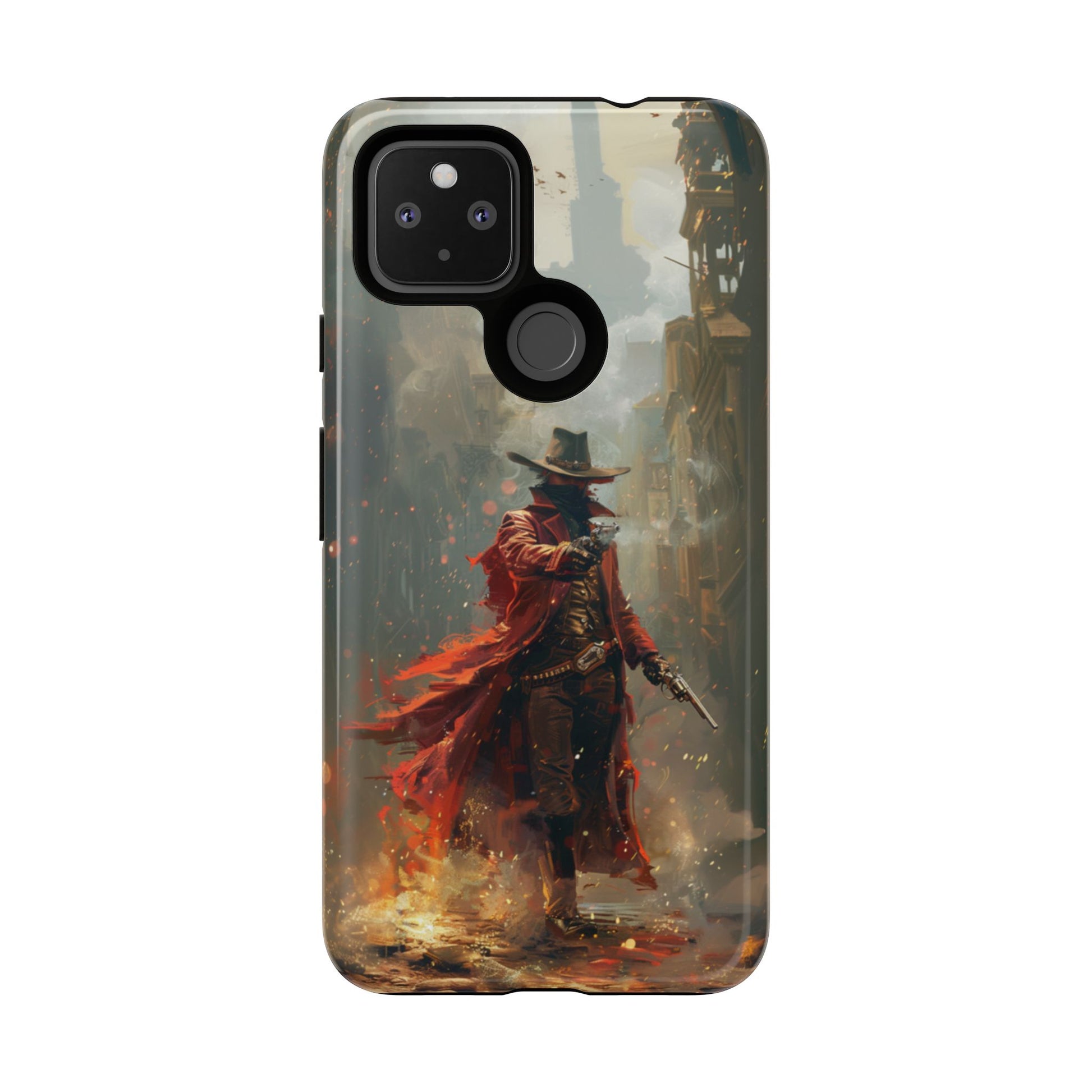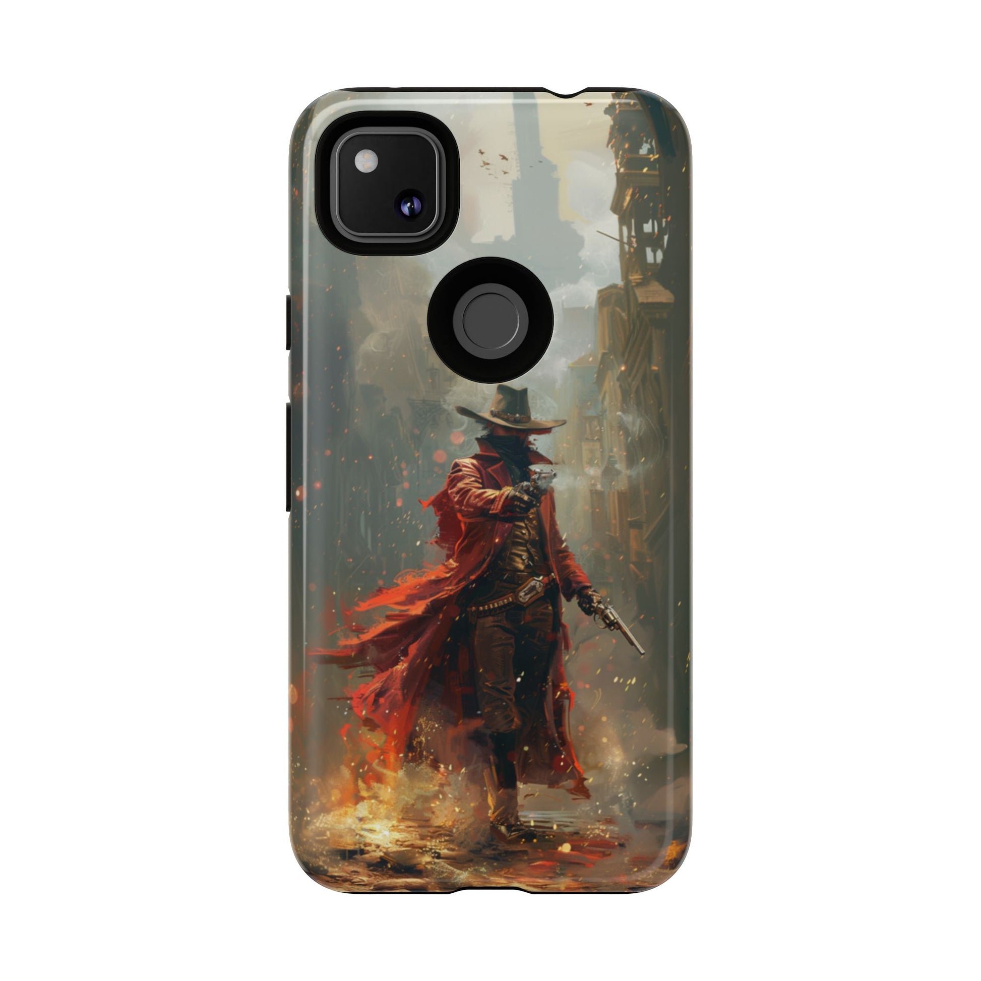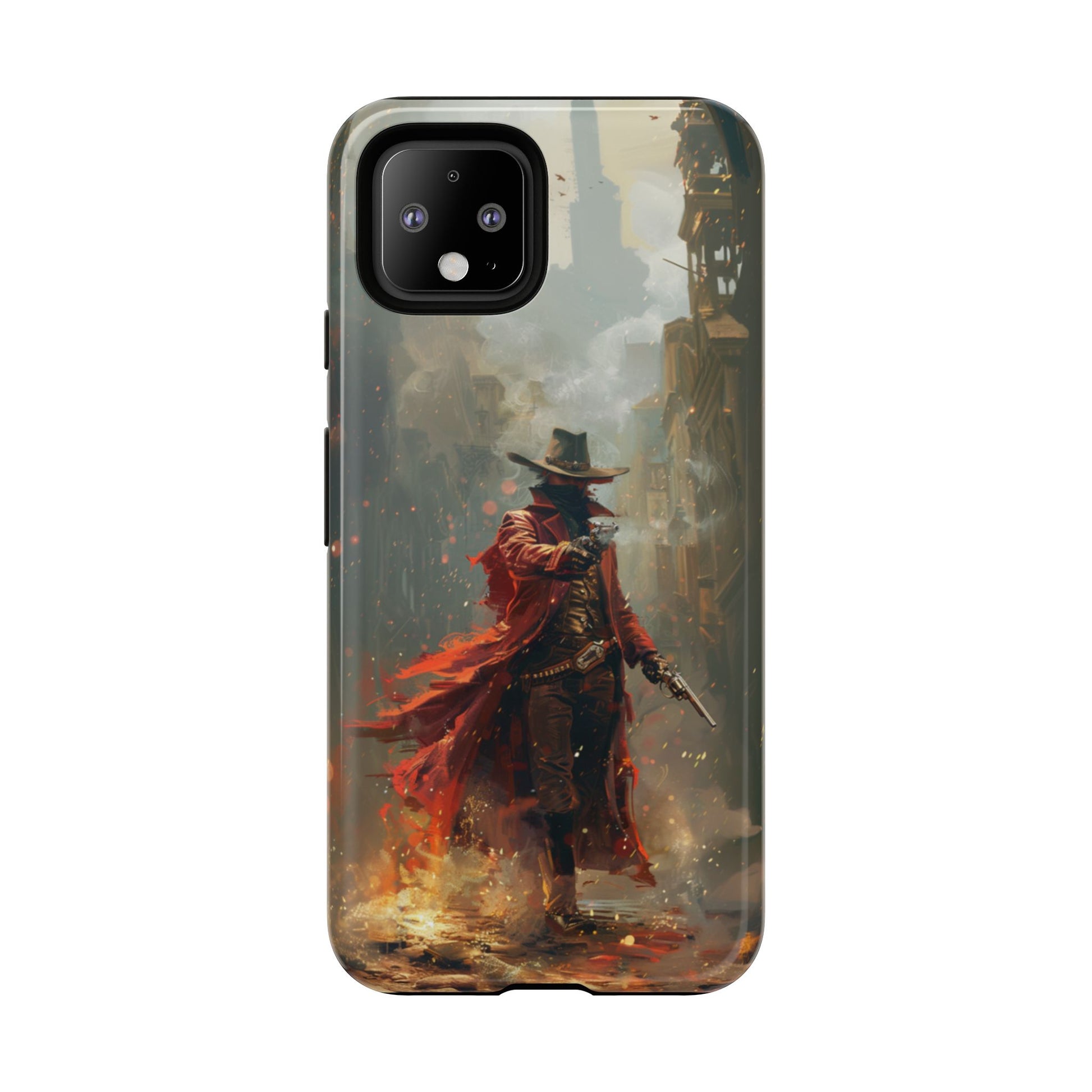 Amid swirling ash and sparks, a scarlet‑clad outlaw cuts a path through the smoke‑filled streets. High‑definition detail adorns your Google Pixel while impact‑resistant dual‑layer construction keeps it safe on every quest.
