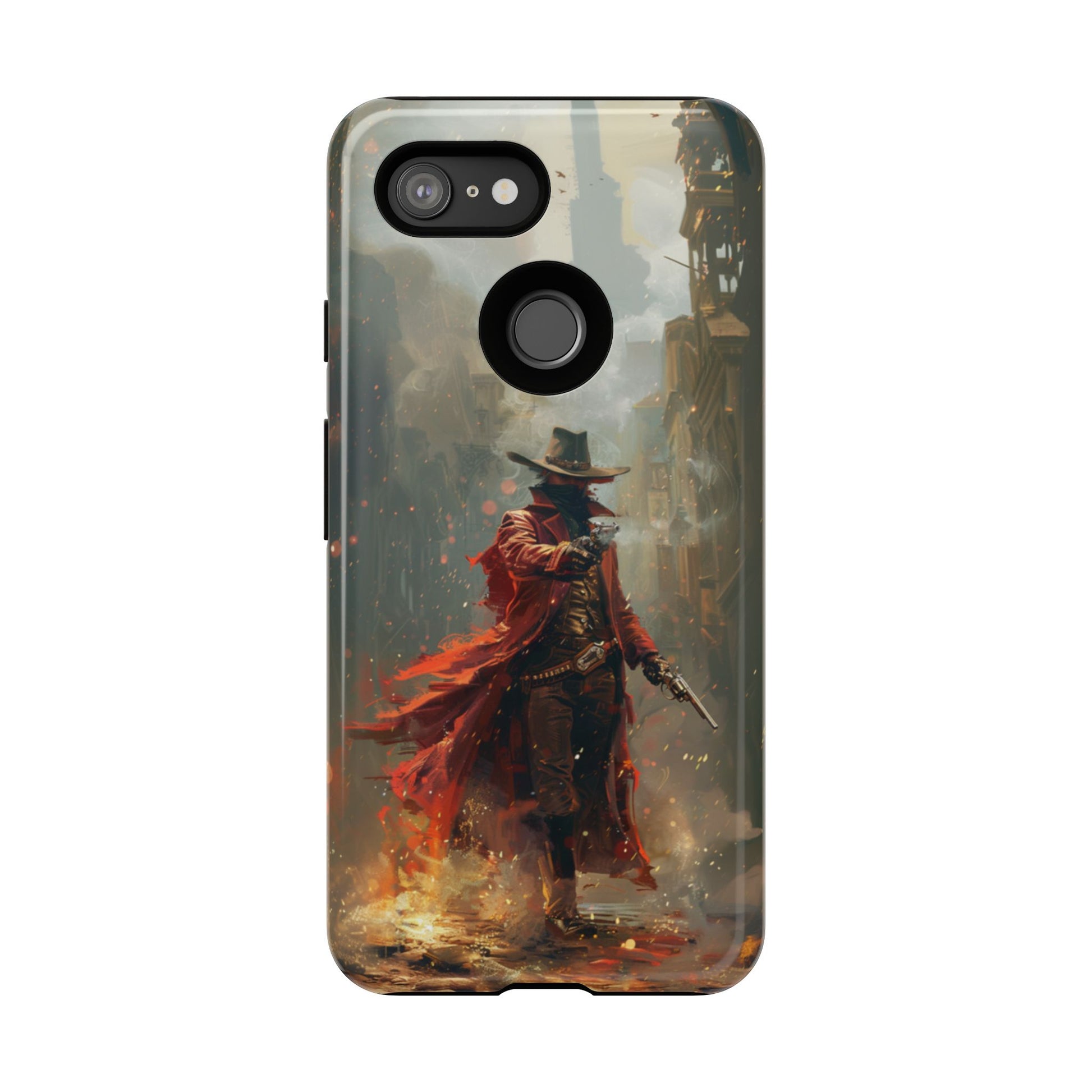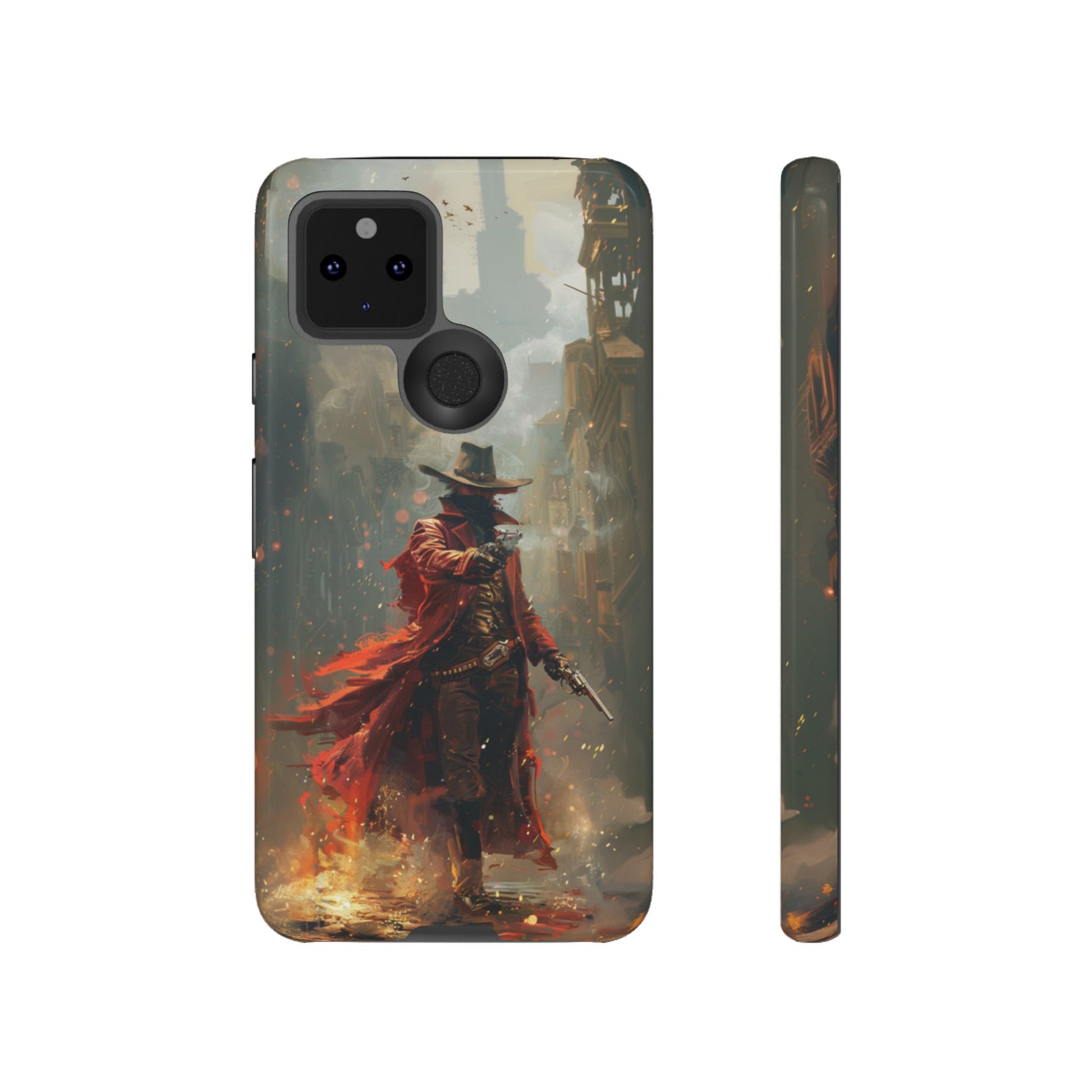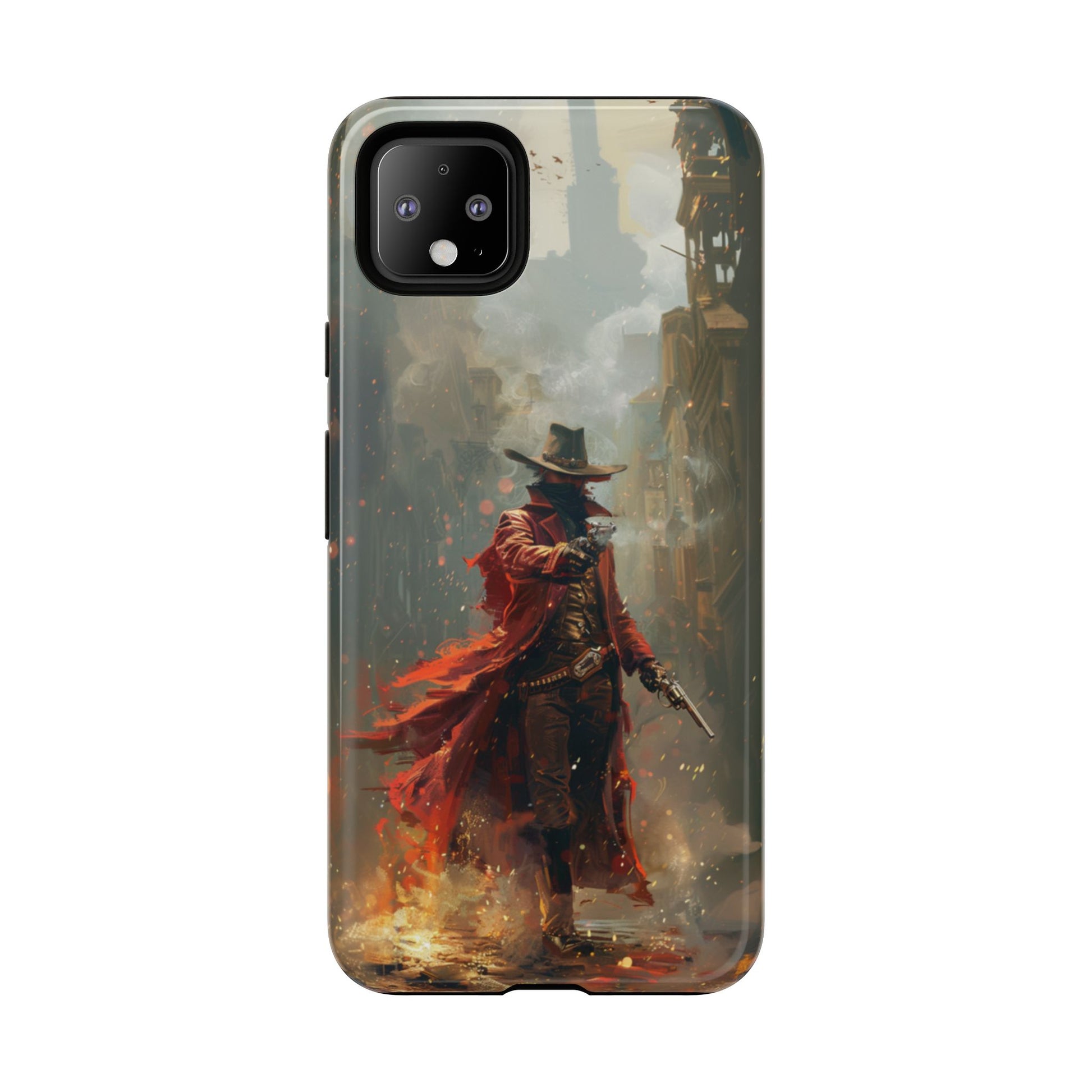 Amid swirling ash and sparks, a scarlet‑clad outlaw cuts a path through the smoke‑filled streets. High‑definition detail adorns your Google Pixel while impact‑resistant dual‑layer construction keeps it safe on every quest.