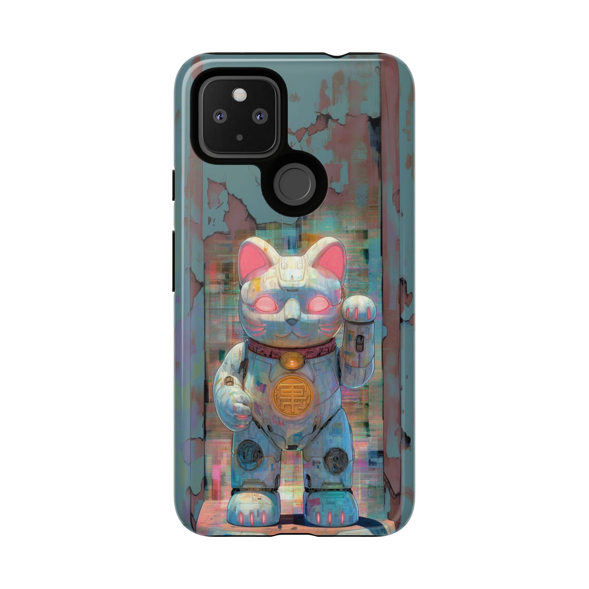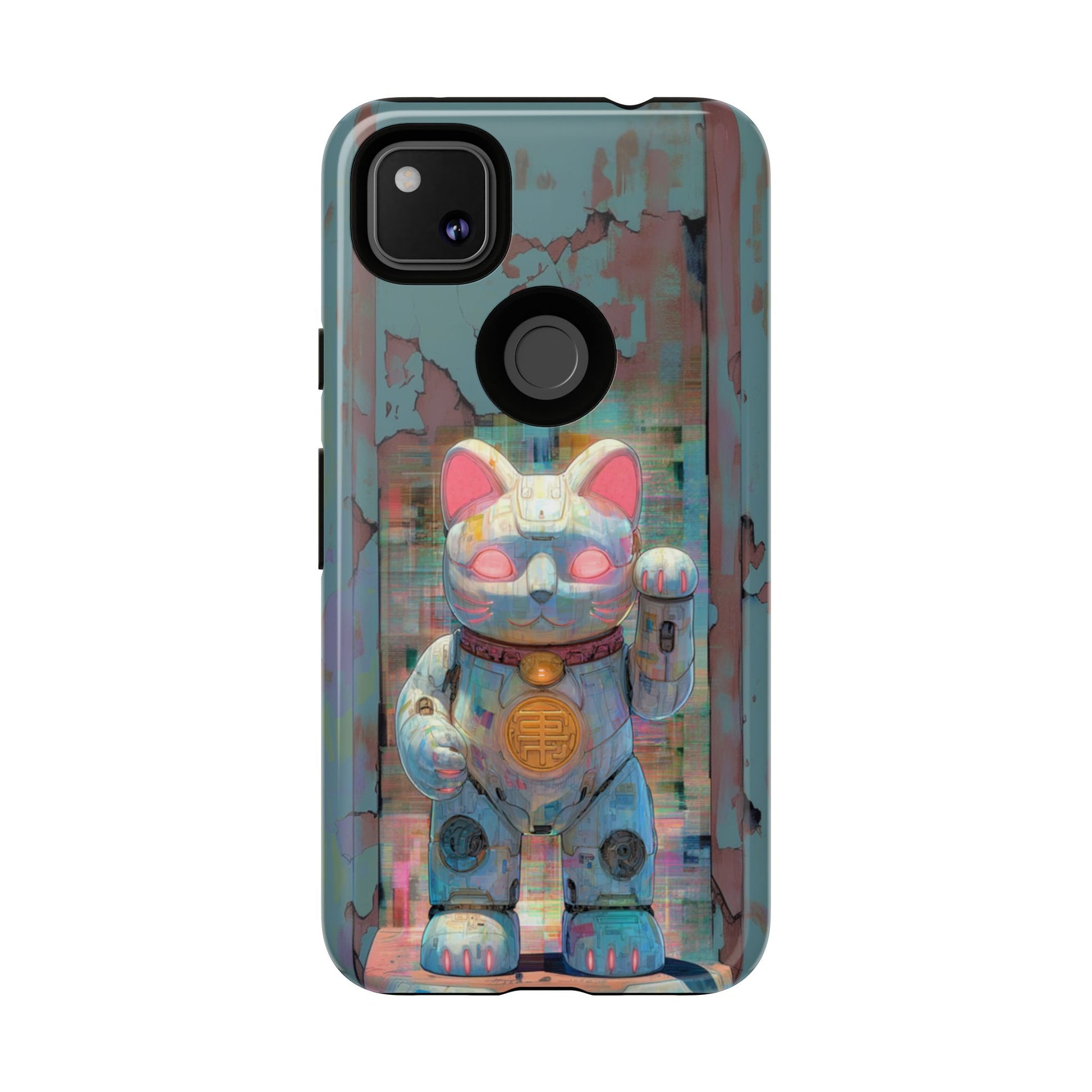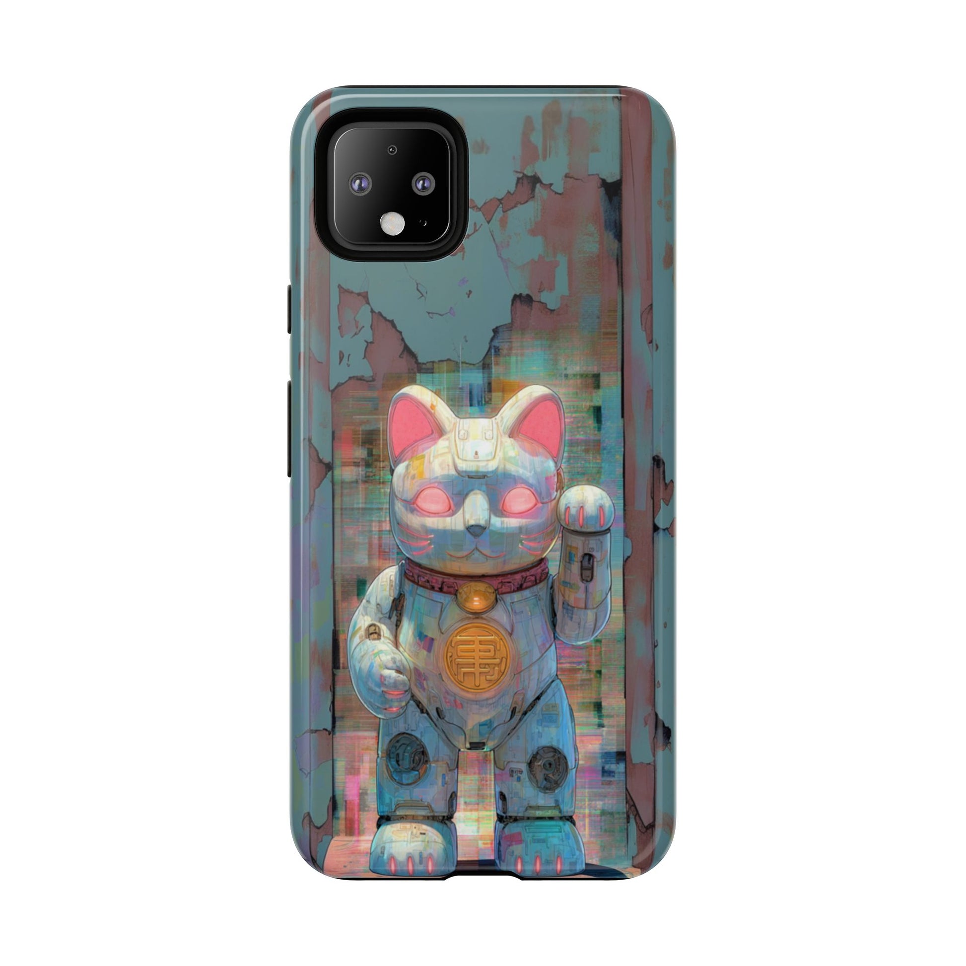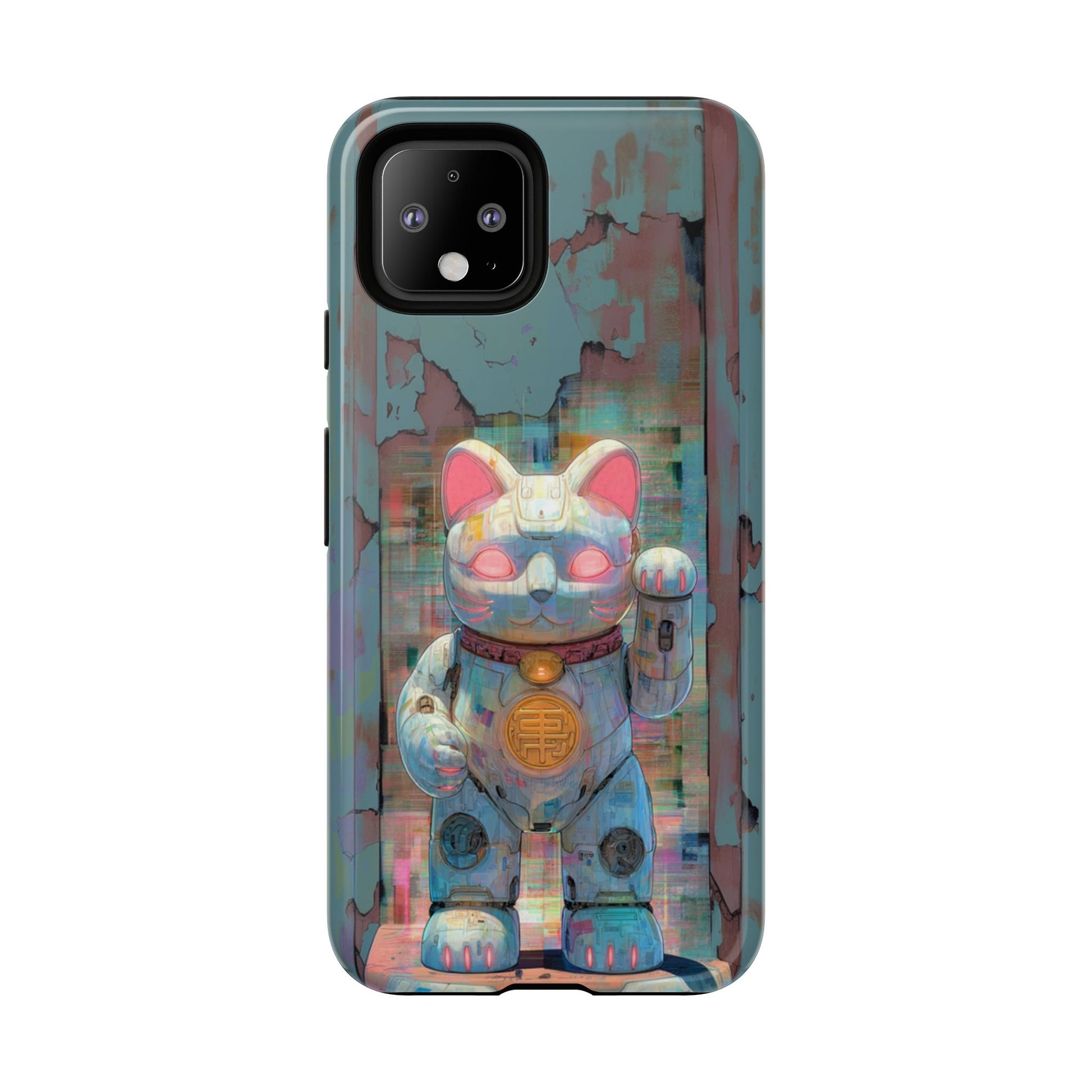 Enter the digital future with our striking Cyber Lucky Cat Google Pixel case featuring a futuristic robotic maneki neko with holographic effects and neon accents. This cyberpunk-inspired design blends traditional Japanese fortune symbols with cutting-edge technology aesthetics. The translucent robot cat glows with digital energy against weathered urban textures, creating a unique fusion of ancient luck and modern innovation.