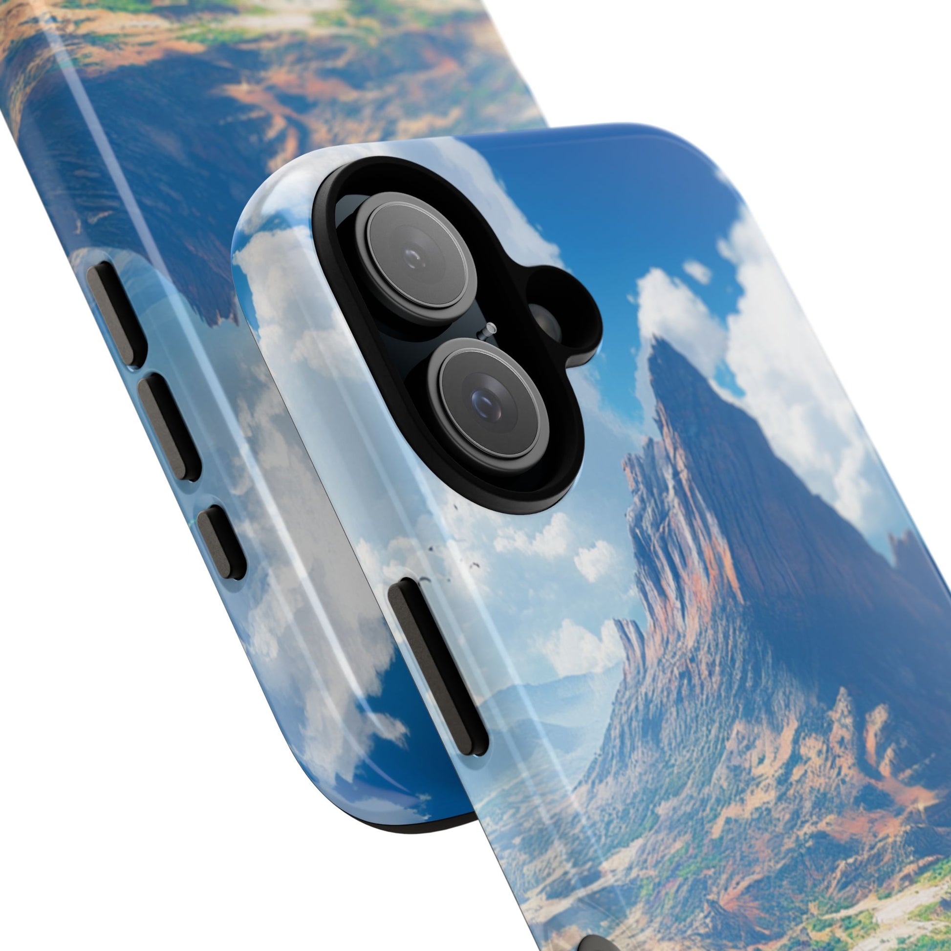 A solitary sandstone peak rises from an endless canyon, bathed in golden light and framed by towering clouds. This high‑definition wrap‑around print brings rugged natural grandeur to your iPhone while shielding it with dual‑layer protection.