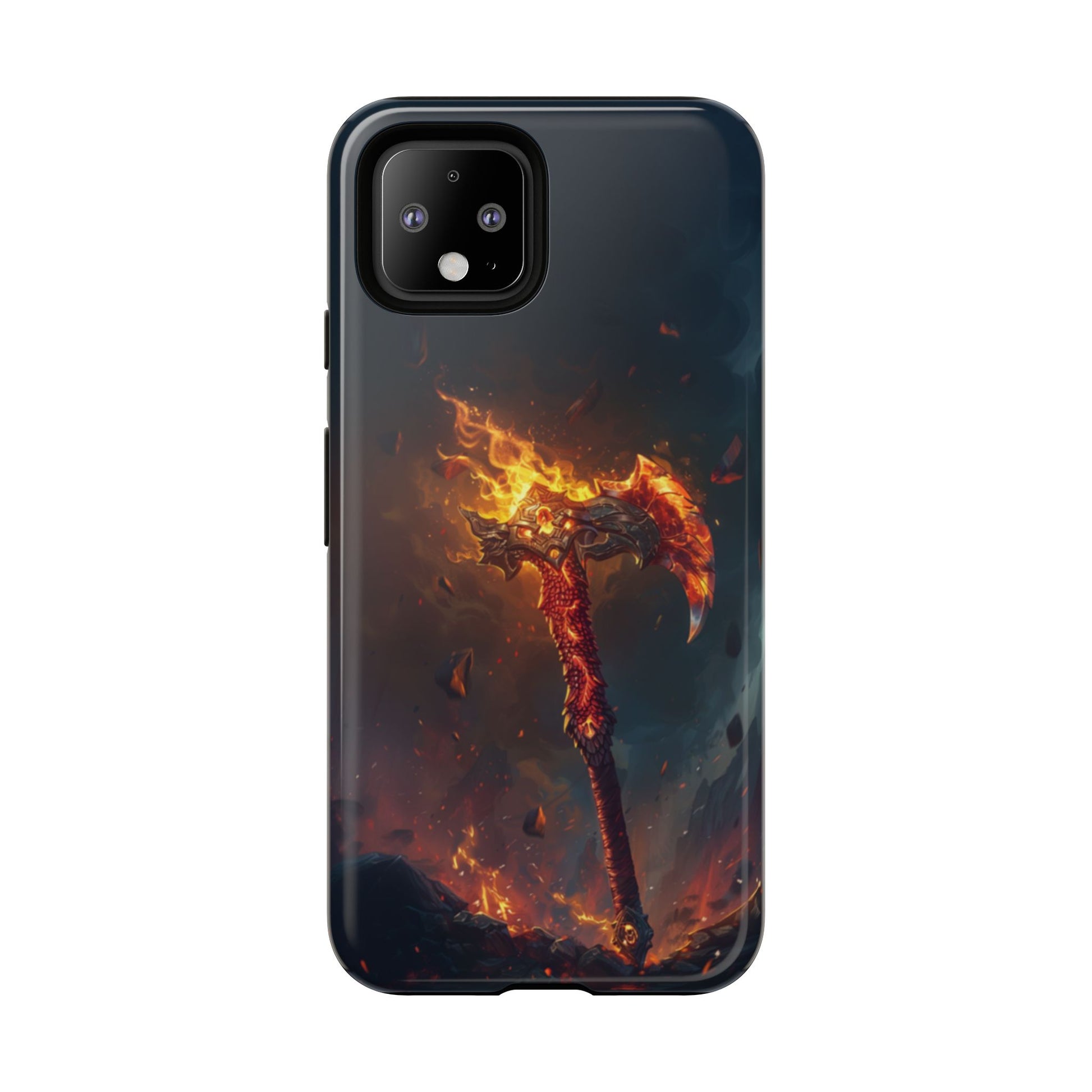 Wield the legendary power of dragons with our magnificent Dragon Fire Axe Google Pixel case. This breathtaking design features an ornate war axe with an intricately carved dragon head that breathes blazing flames, creating a scene of pure mythical power. The detailed dragon scales, fierce expression, and ornamental metalwork are engulfed in roaring orange and red flames that dance around the weapon against a dramatic stormy sky. This legendary weapon embodies the raw power and majesty of ancient dragons. Perfect for fantasy enthusiasts, dragon lovers, or anyone drawn to epic mythical weapons that combine artistry with devastating power.