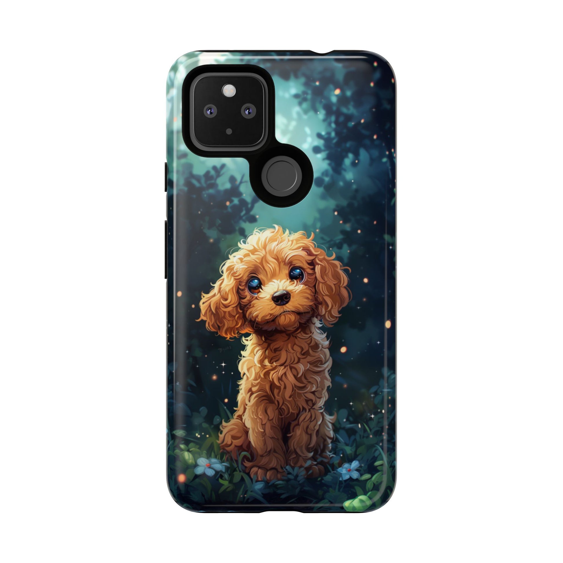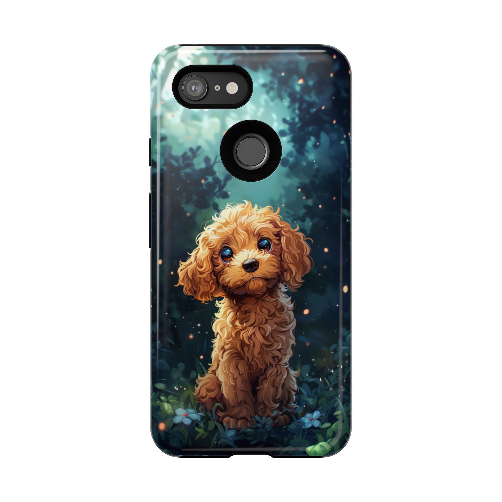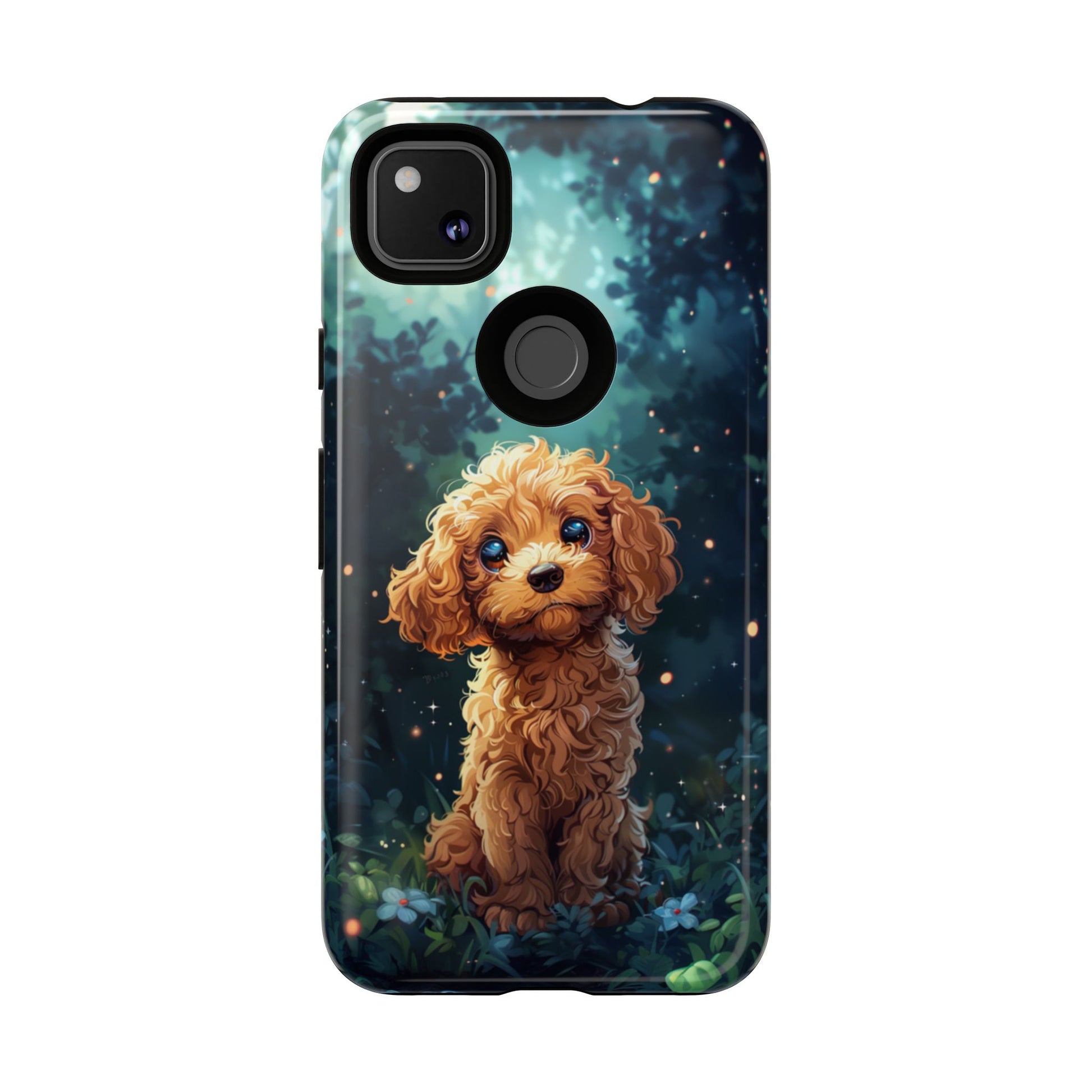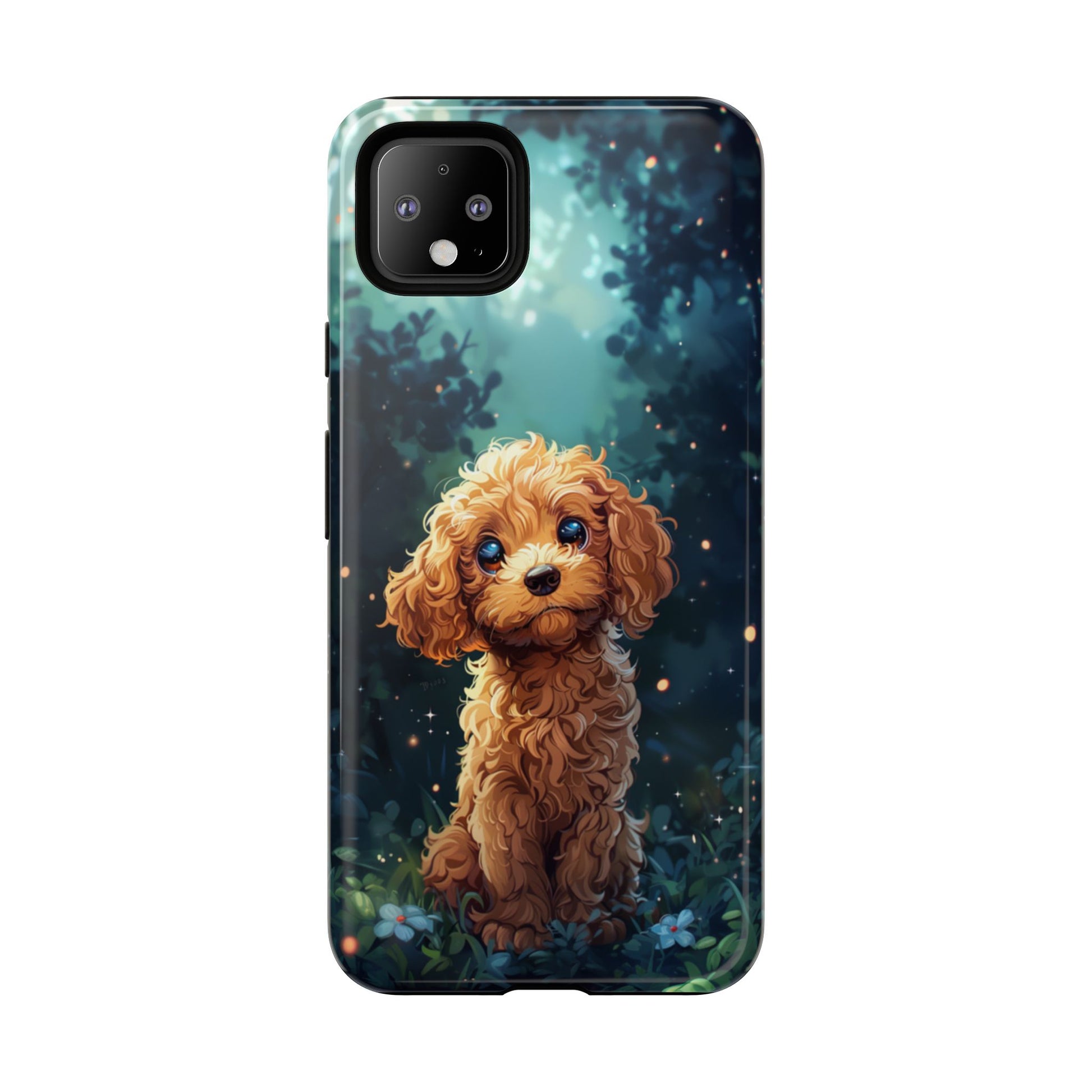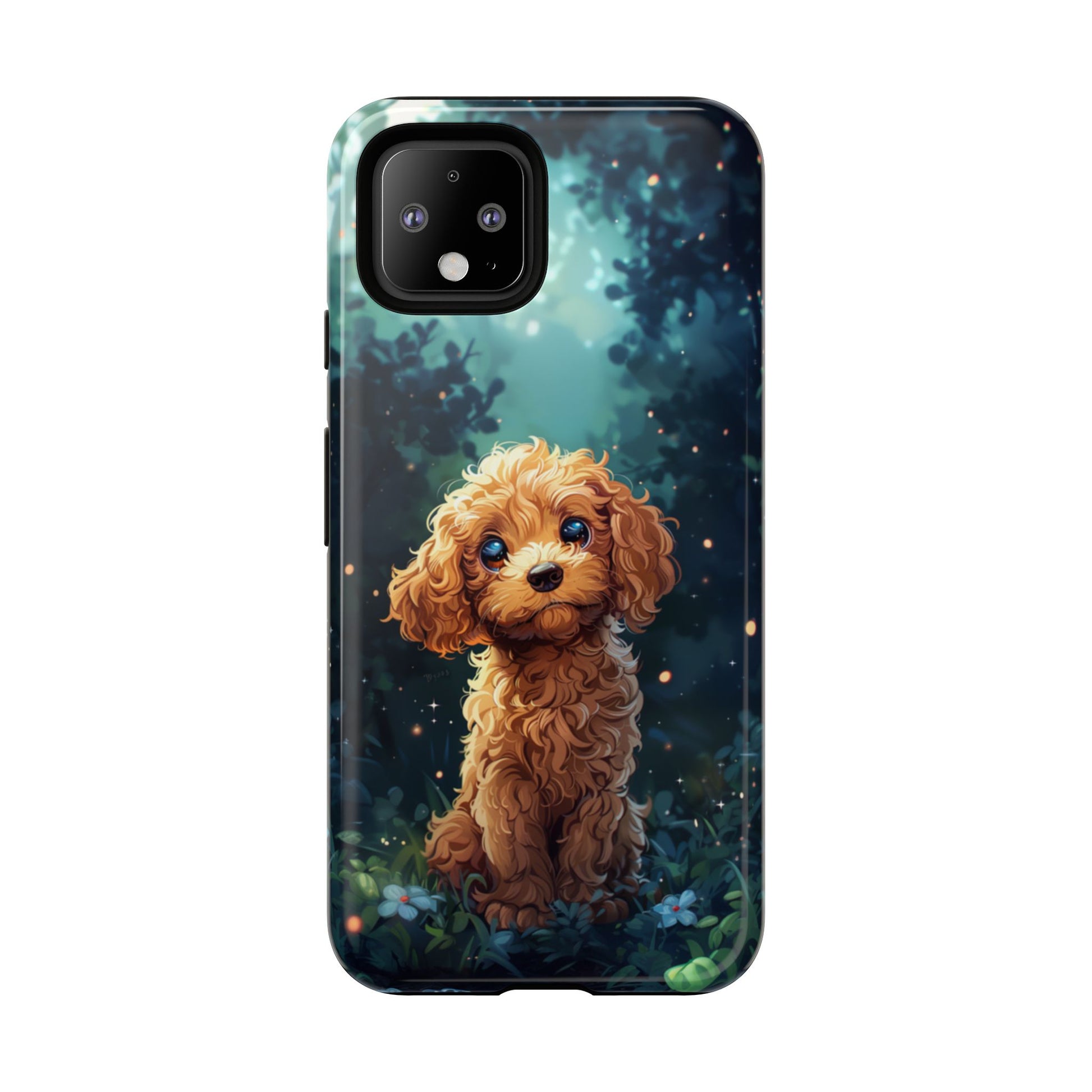 Step into a magical world with our captivating Forest Poodle Google Pixel case. This captivating design features an adorable golden poodle with luxuriously curly coat and soulful dark eyes, sitting gracefully in a mystical forest setting. The scene is illuminated by ethereal sunbeams filtering through ancient trees, while magical sparkles and fairy lights dance throughout the enchanted woodland. Delicate blue wildflowers carpet the forest floor, creating a whimsical fairy-tale atmosphere. The poodle's beautifully textured curls and gentle expression radiate warmth and charm, while the mystical forest backdrop with its golden light rays and floating sparkles creates an otherworldly, magical ambiance. Perfect for poodle lovers, fantasy enthusiasts, or anyone who believes in the magic of nature and adorable companions.