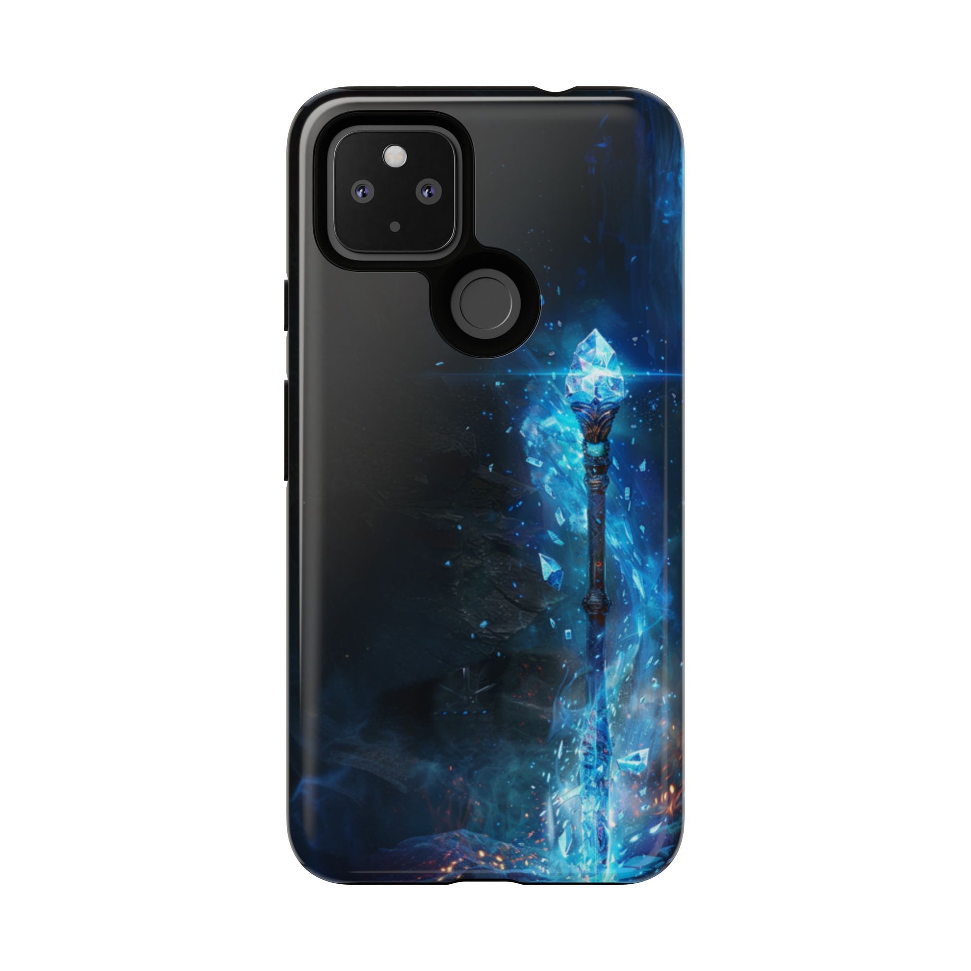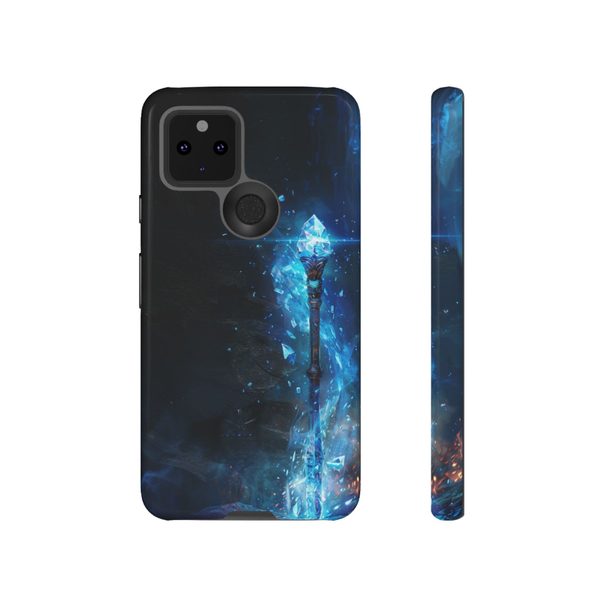 Wield the power of ancient ice magic with our epic Frost Staff Google Pixel case. This breathtaking design features a legendary crystalline staff radiating brilliant blue ice energy, embedded in the stone floor of a mystical cavern. The ornately carved handle supports a magnificent crystal orb that appears to be forged from pure ice crystal, with magical frost energy swirling around it and casting ethereal blue light throughout the shadowy chamber. Sparkling ice particles and glowing crystal formations complete this scene of legendary power. Perfect for fantasy enthusiasts, RPG gamers, or anyone drawn to epic magical weapons and ice magic aesthetics.