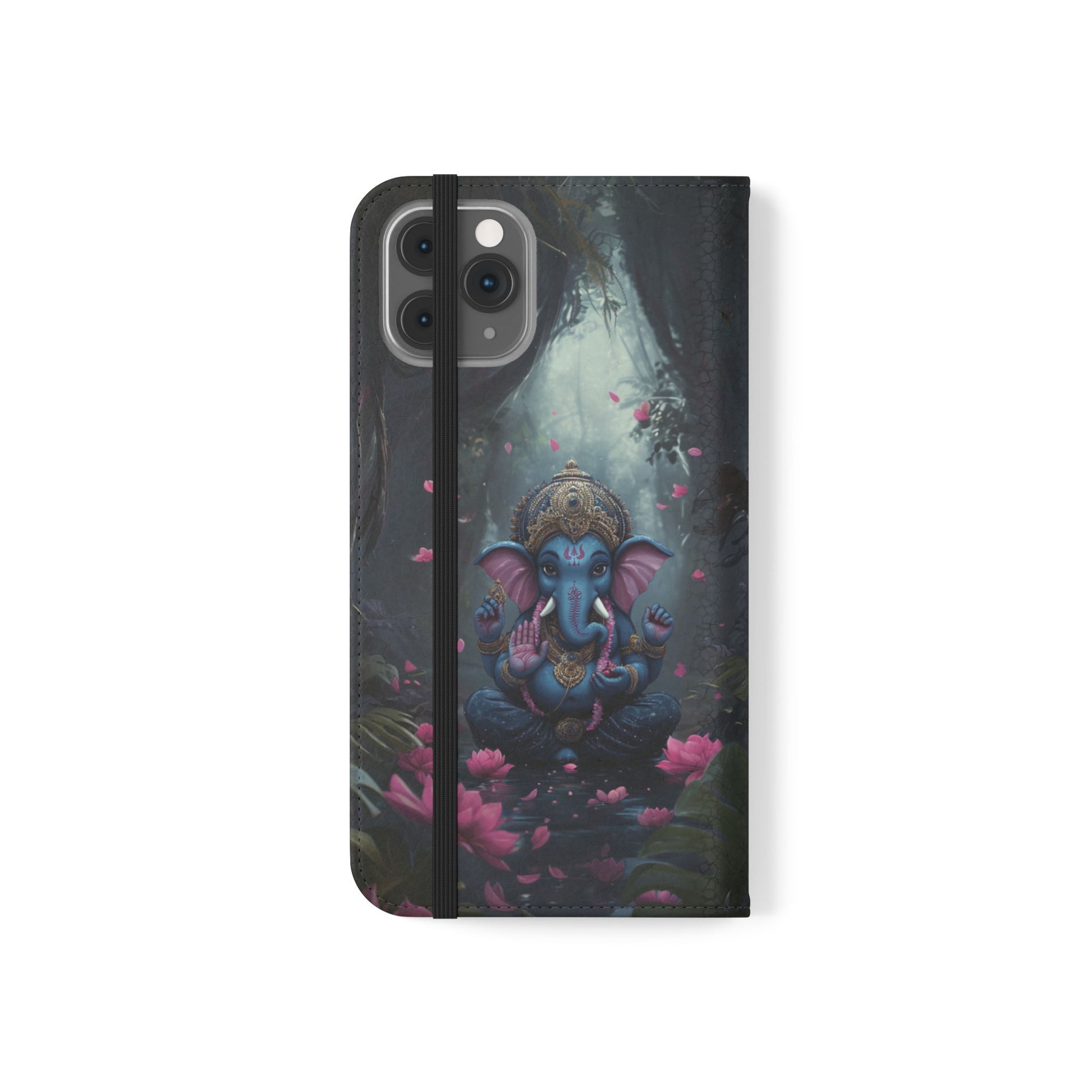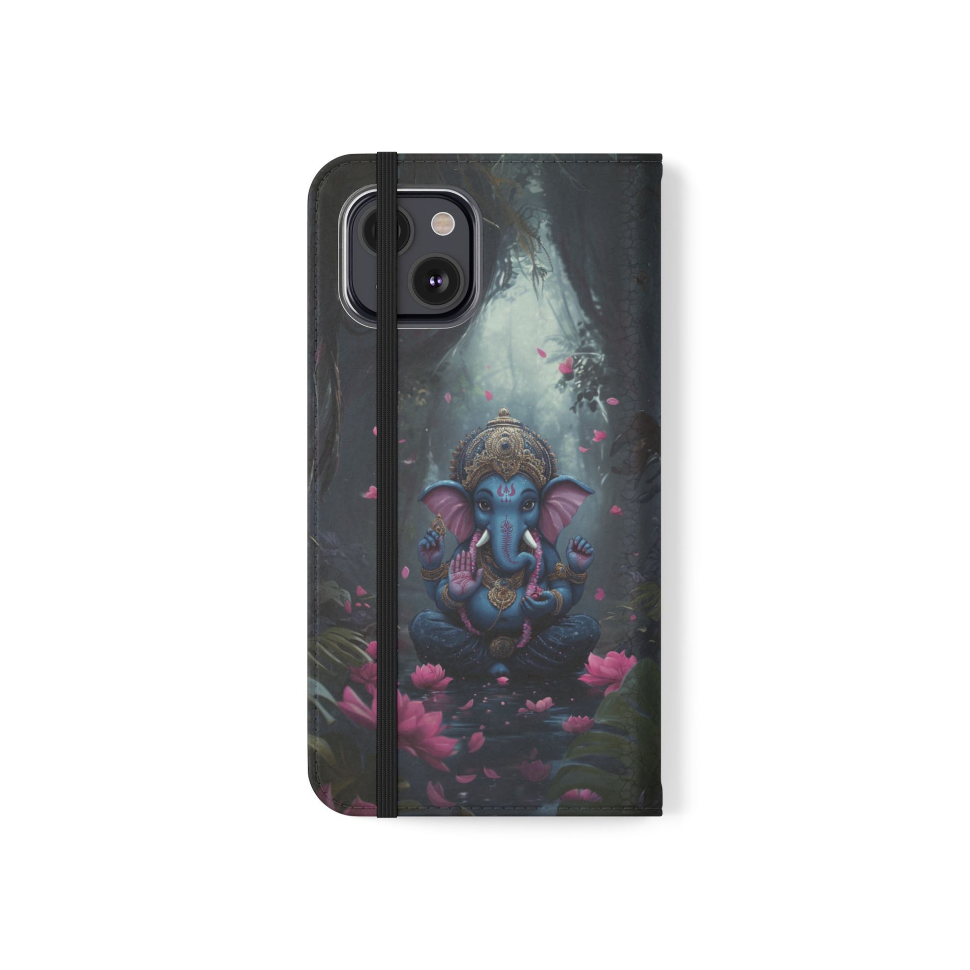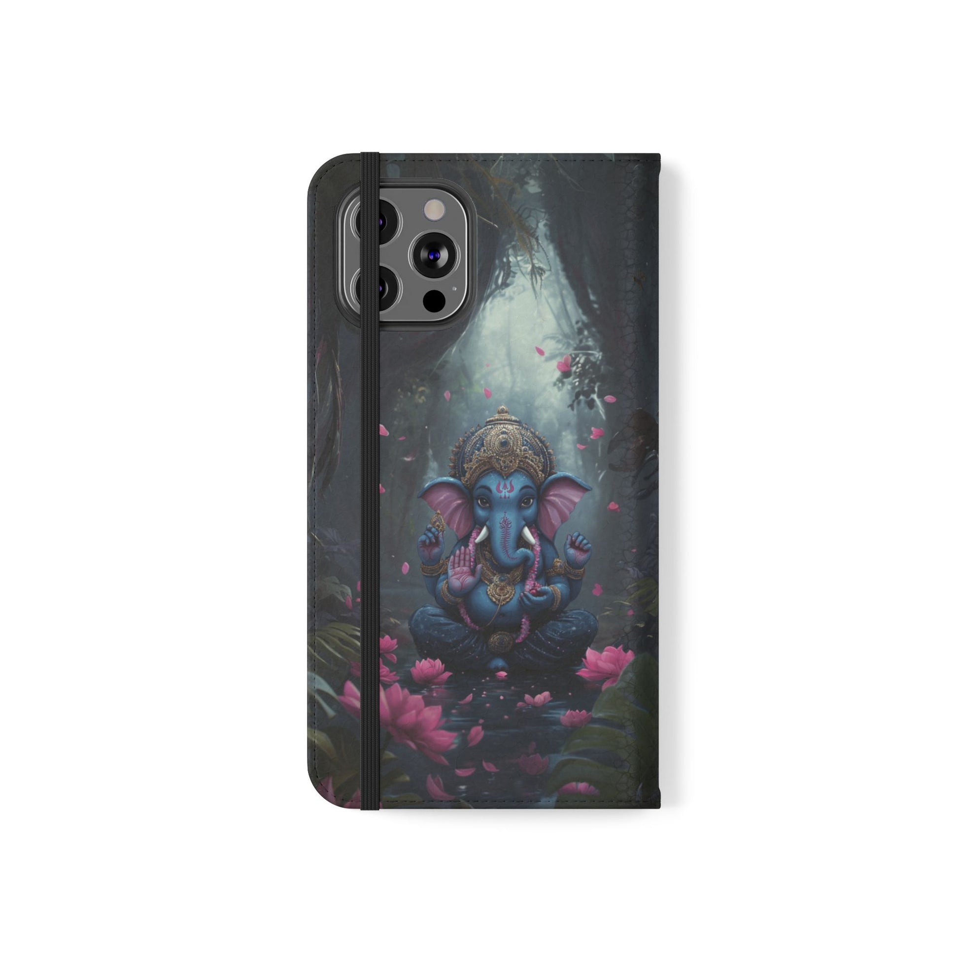Protect your phone with our premium Ganesha Lotus wallet case featuring Lord Ganesha in peaceful meditation surrounded by beautiful pink lotus flowers in an enchanted forest. This versatile flip case combines wallet functionality with comprehensive phone protection, card storage, and spiritual inspiration.