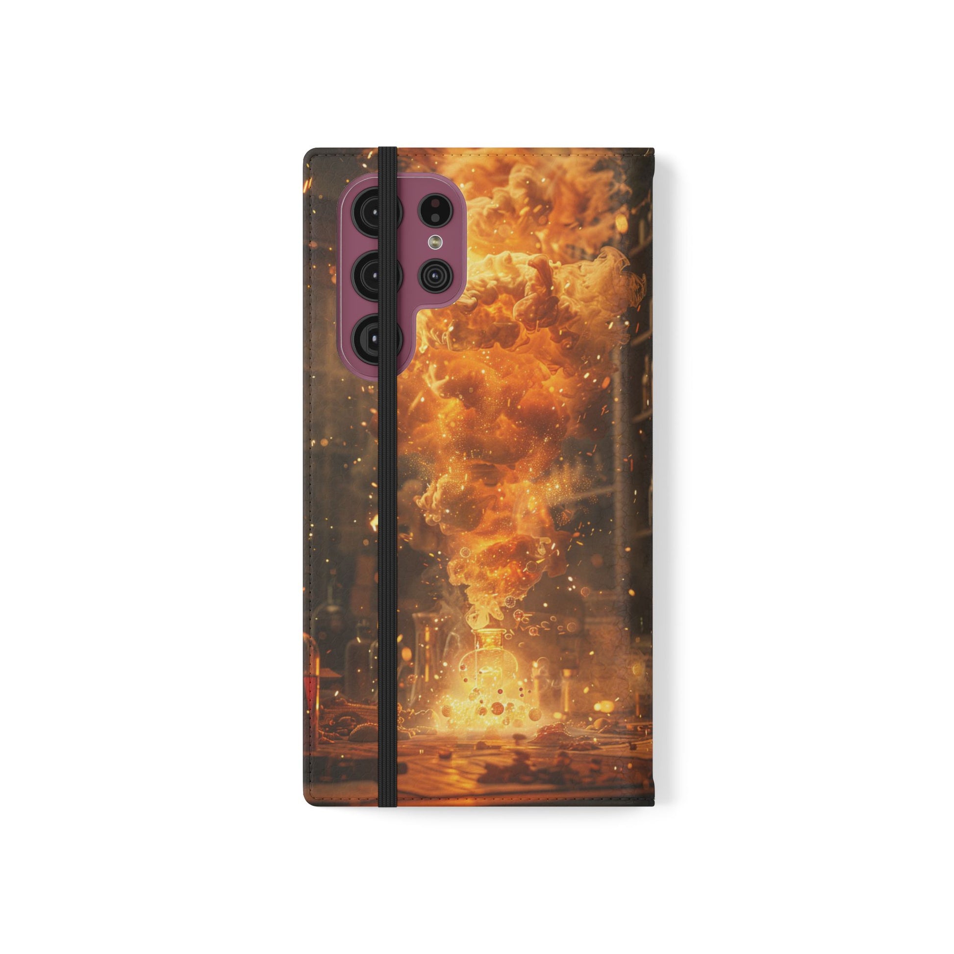 Step into a world of magical wonder with our enchanting Golden Alchemy Wallet Flip Case. This captivating design features a glowing potion bottle releasing swirling golden flames and mystical energy in a cozy alchemist's workshop. Warm amber and honey-gold tones dance through billowing magical smoke, while sparkling particles and glowing embers create an atmosphere of pure enchantment. The detailed laboratory setting with ancient books and mystical apparatus completes this spellbinding scene. Perfect for fantasy enthusiasts, lovers of magical aesthetics, or anyone drawn to the mystical arts of alchemy and potion-making.
