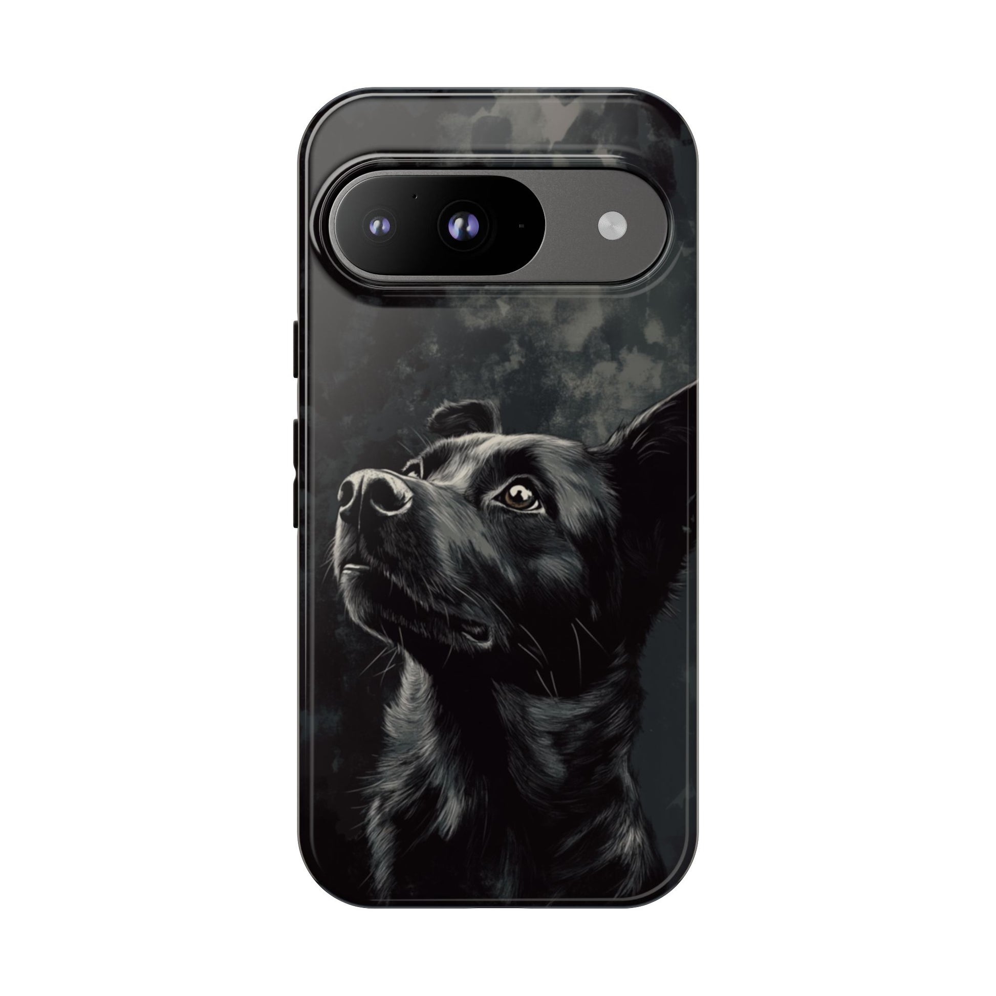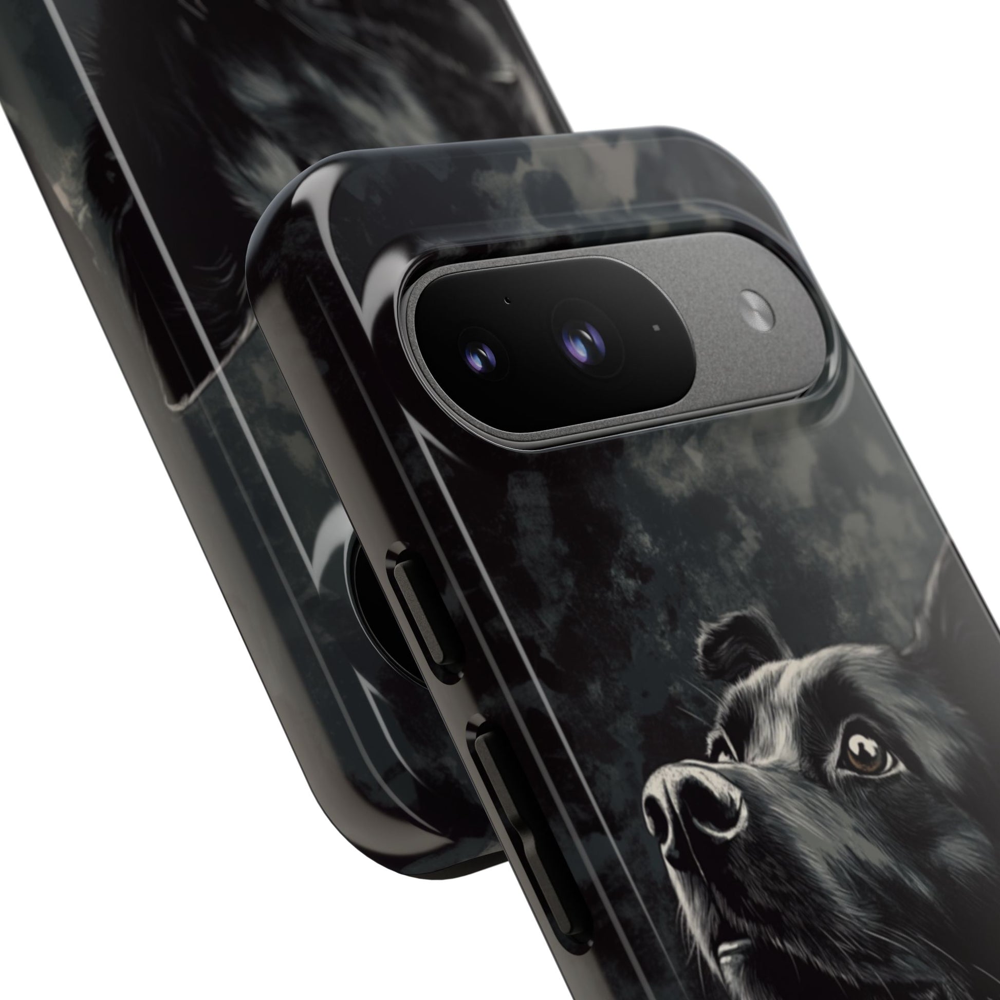 Experience the noble beauty of our stunning Moonlit German Shepherd Google Pixel case. This captivating black and white design features a majestic German Shepherd with piercing golden eyes, gazing upward in a dramatic moonlit forest setting. The artistic monochromatic palette creates a striking contrast between the dog's detailed fur textures and the atmospheric forest backdrop. Soft moonlight filters through the canopy above, casting ethereal shadows and highlighting the shepherd's noble profile and alert expression. The realistic portrayal captures every detail of the breed's characteristic features - from the pointed ears to the intelligent gaze that German Shepherds are known for. This sophisticated design combines artistic elegance with the timeless appeal of one of the world's most beloved dog breeds. Perfect for German Shepherd owners, dog enthusiasts, or anyone who appreciates dramatic, artistic phone case designs.