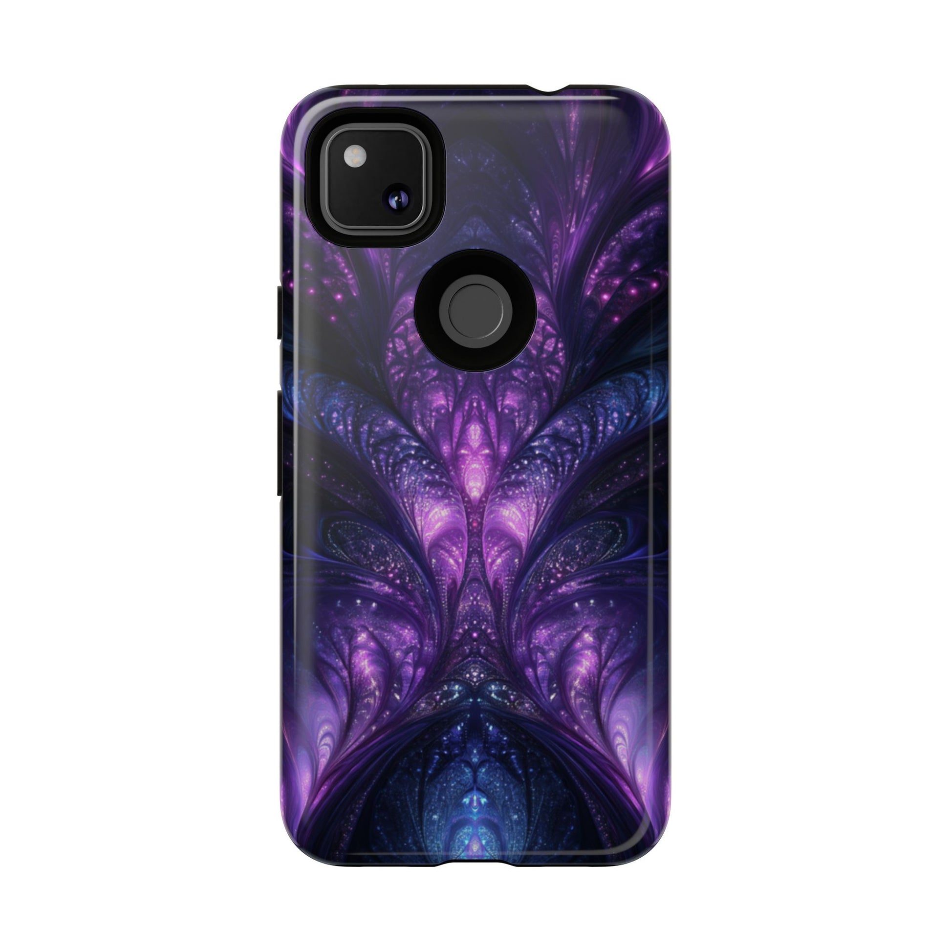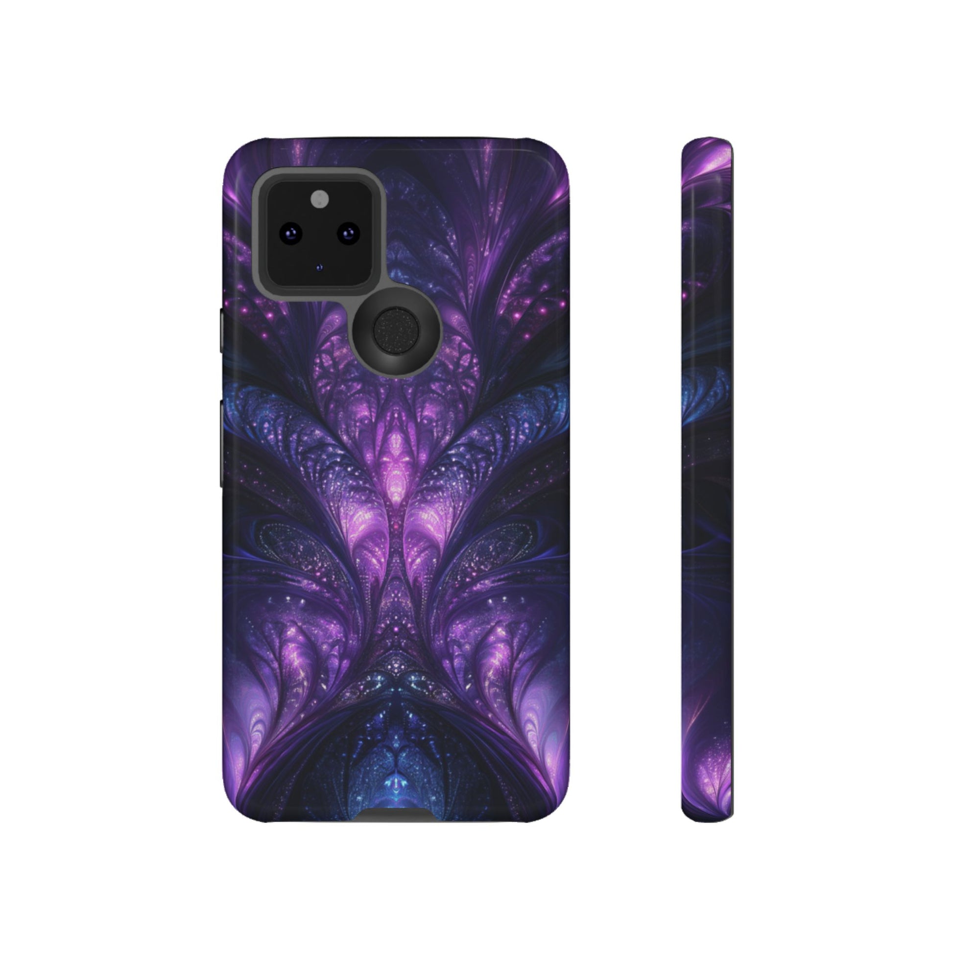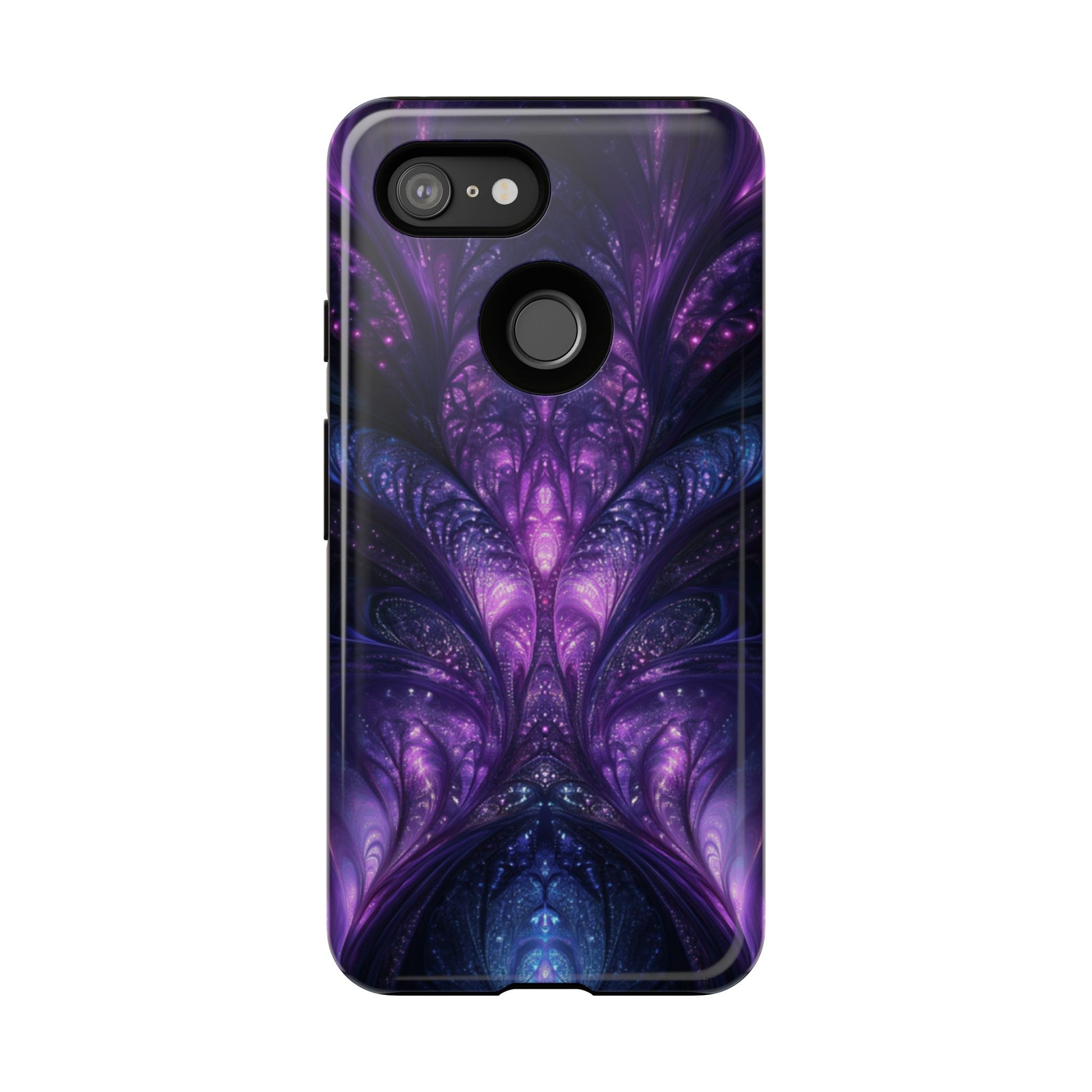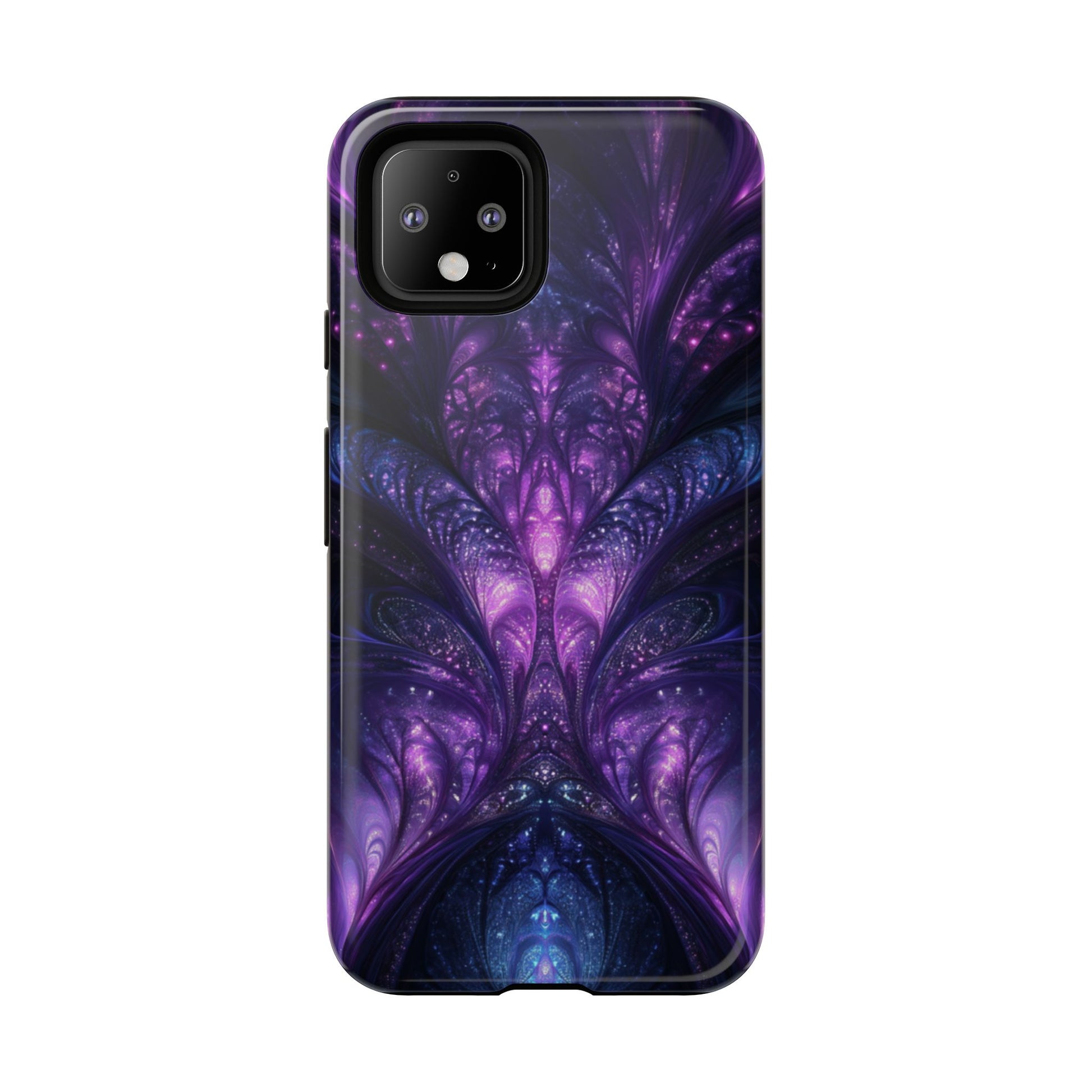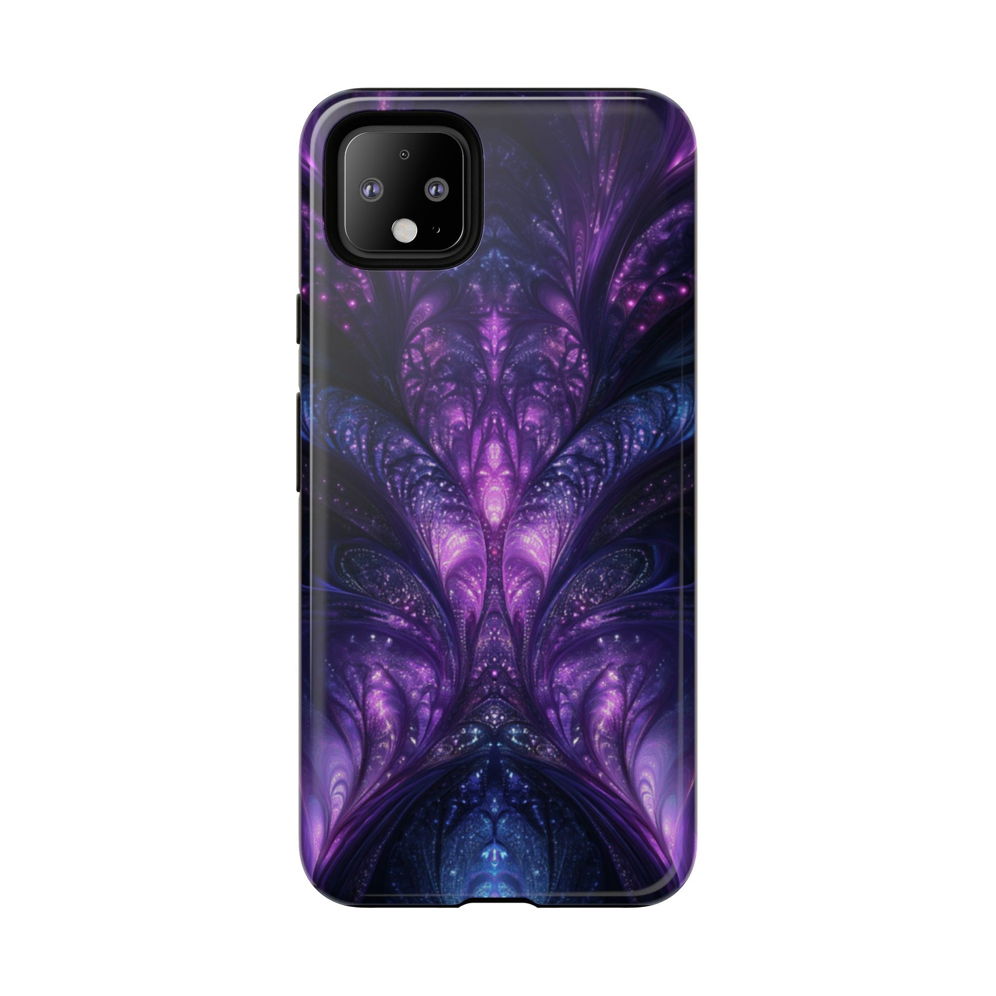 A cathedral of swirling purples and cosmic blues towers across your Google Pixel, rendered in vivid fractal detail. Impact‑resistant dual‑layer construction teams with artful HD printing to defend your device while sparking curiosity.