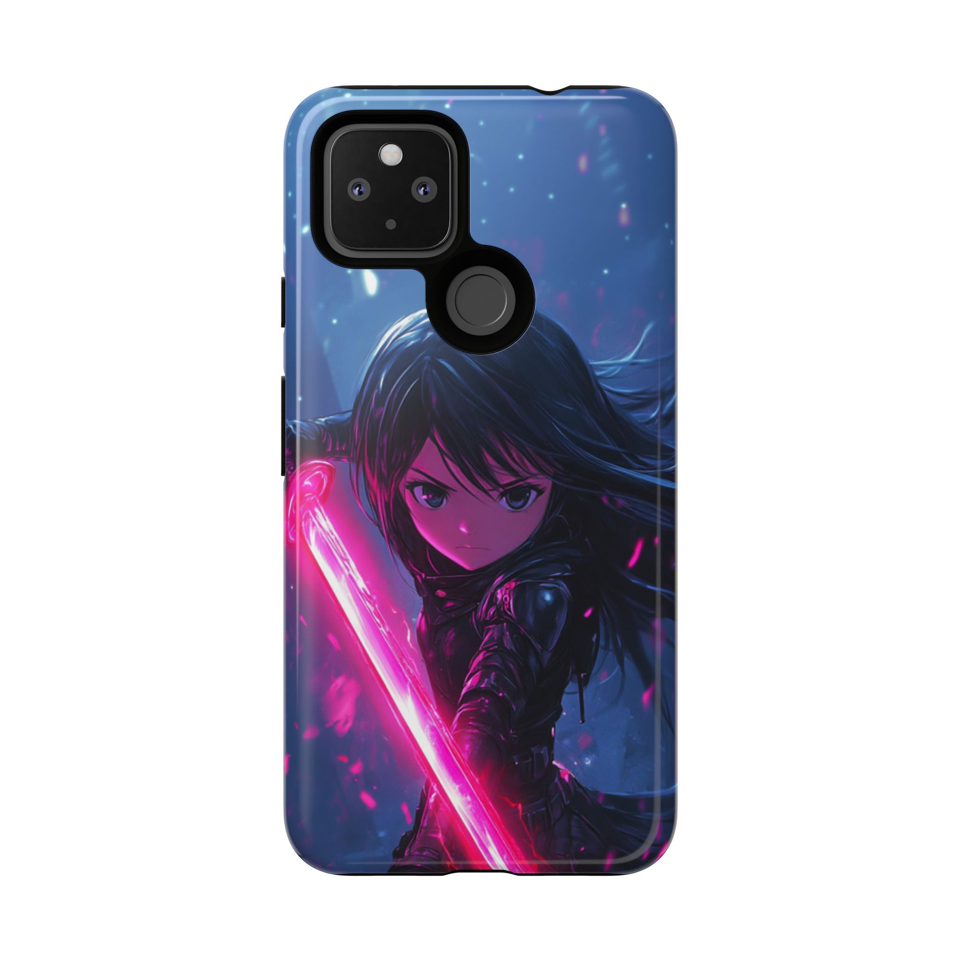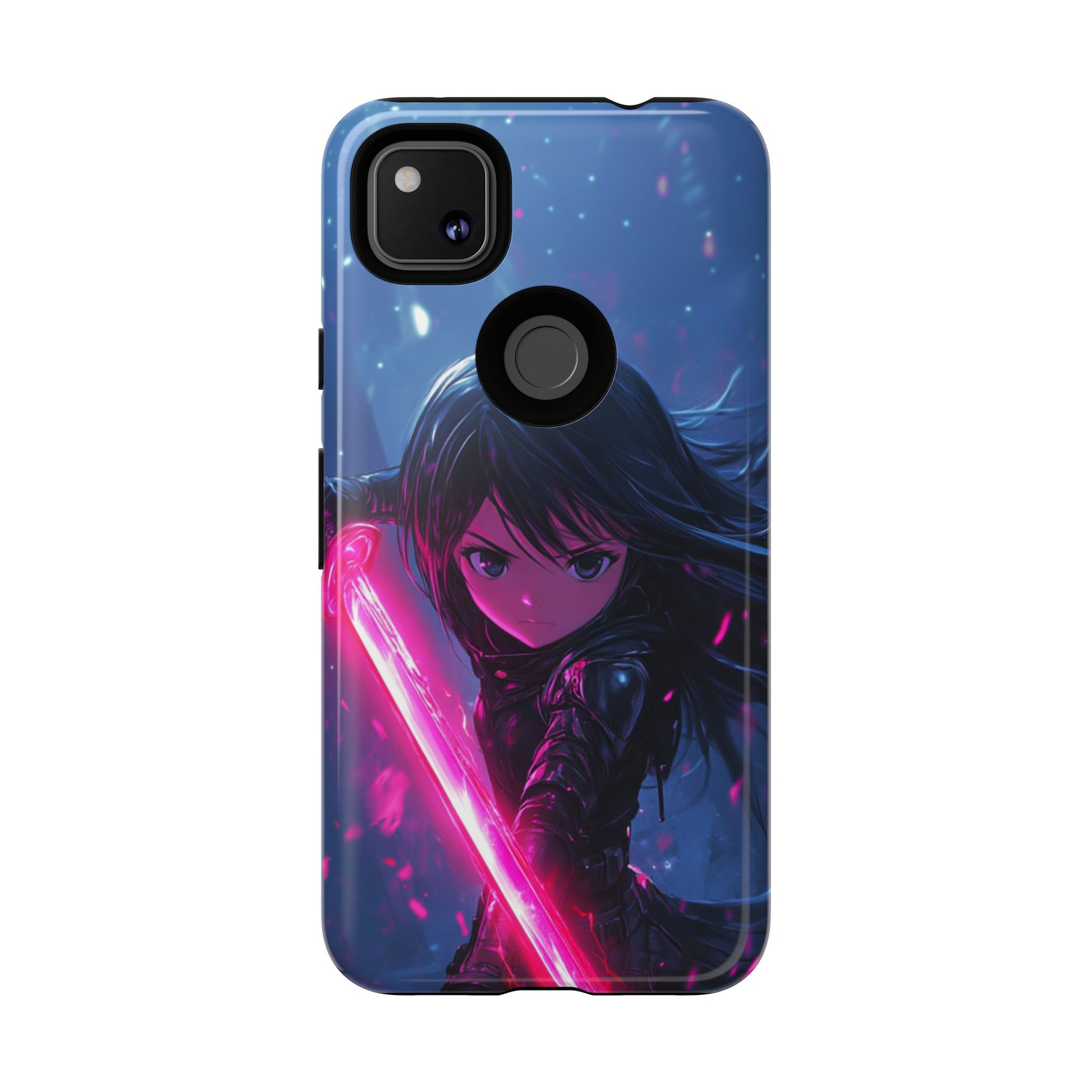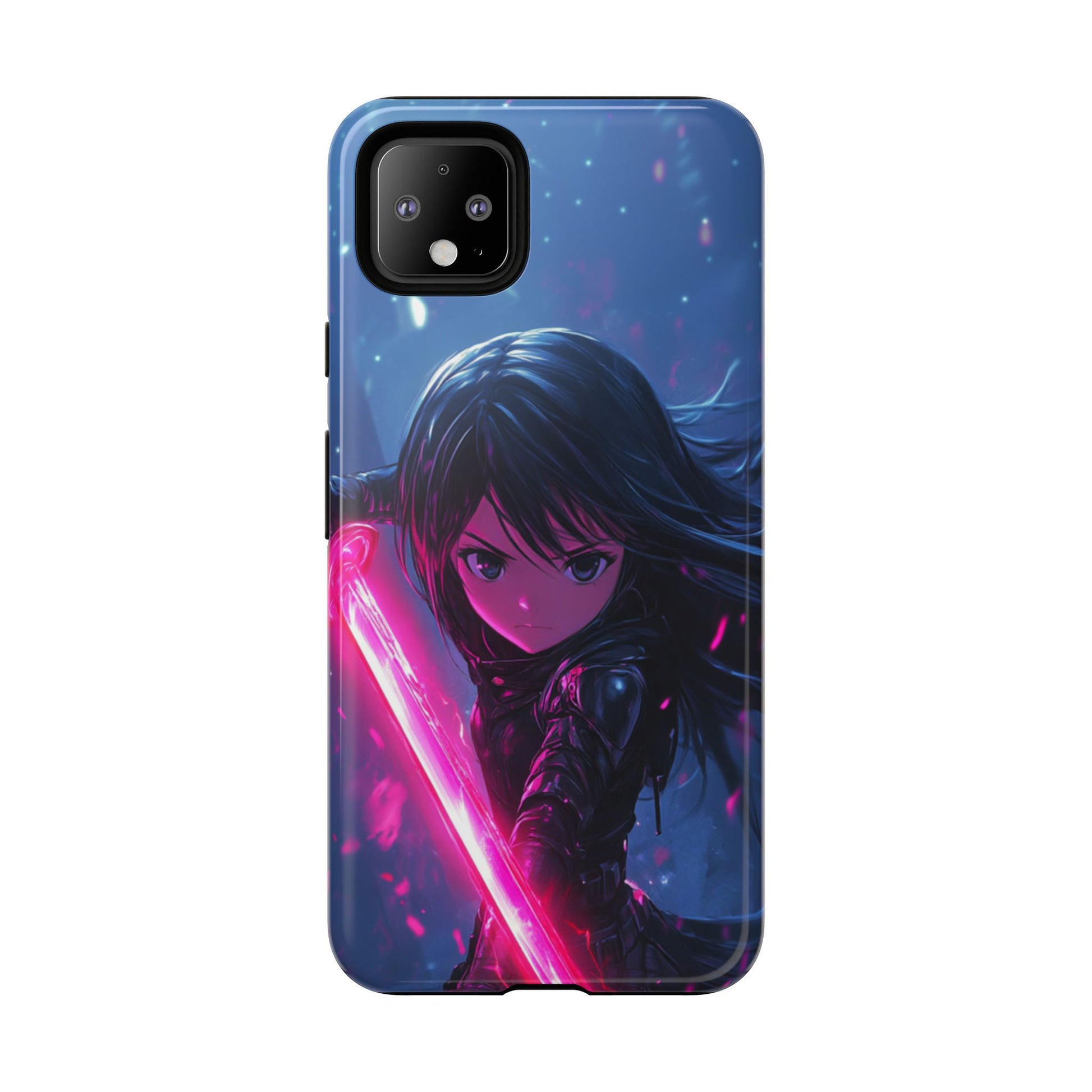 An agile cyber-warrior wields a fluorescent katana, bathing your Google Pixel in neon fury. High-definition artwork pairs with impact-resistant dual-layer protection for daily battles.