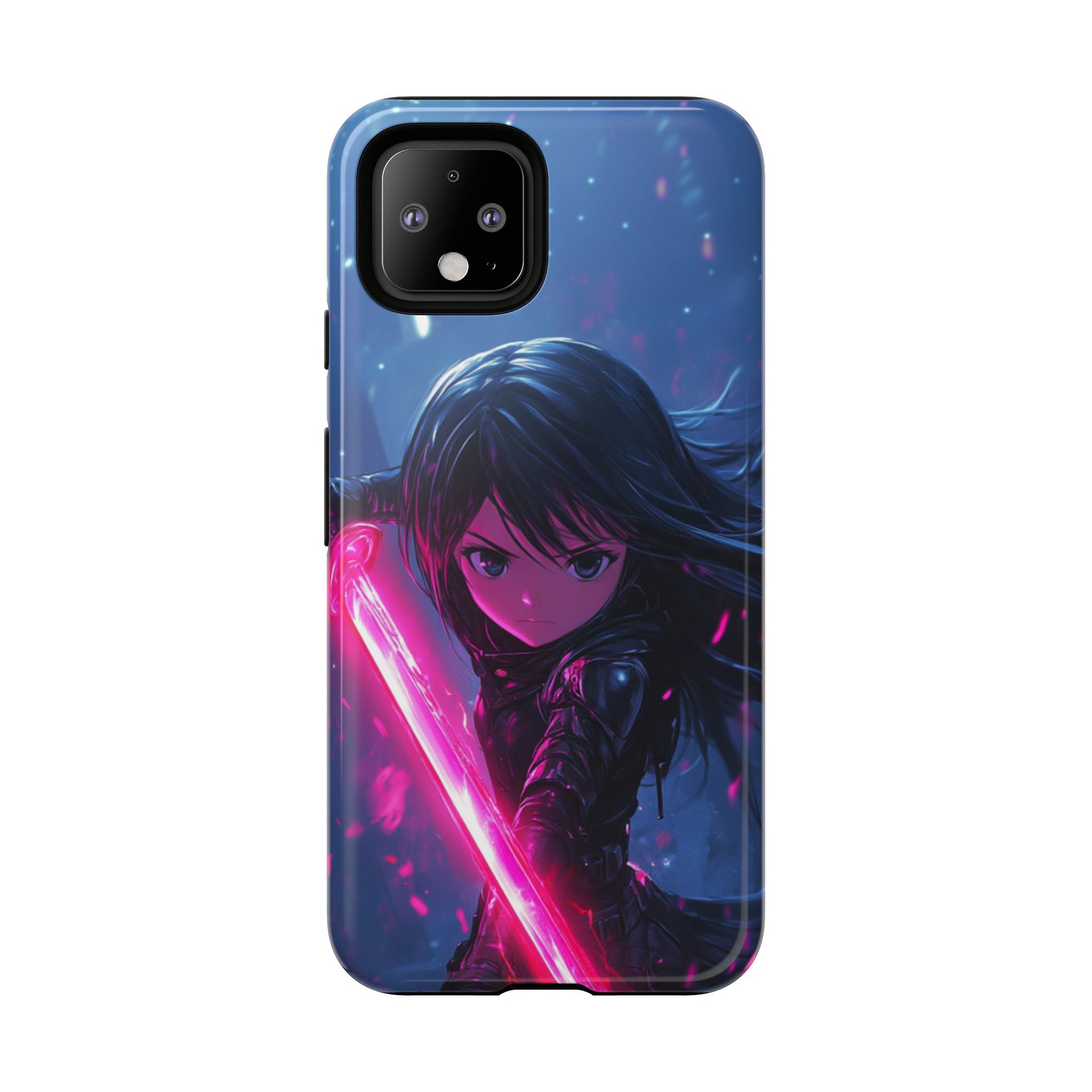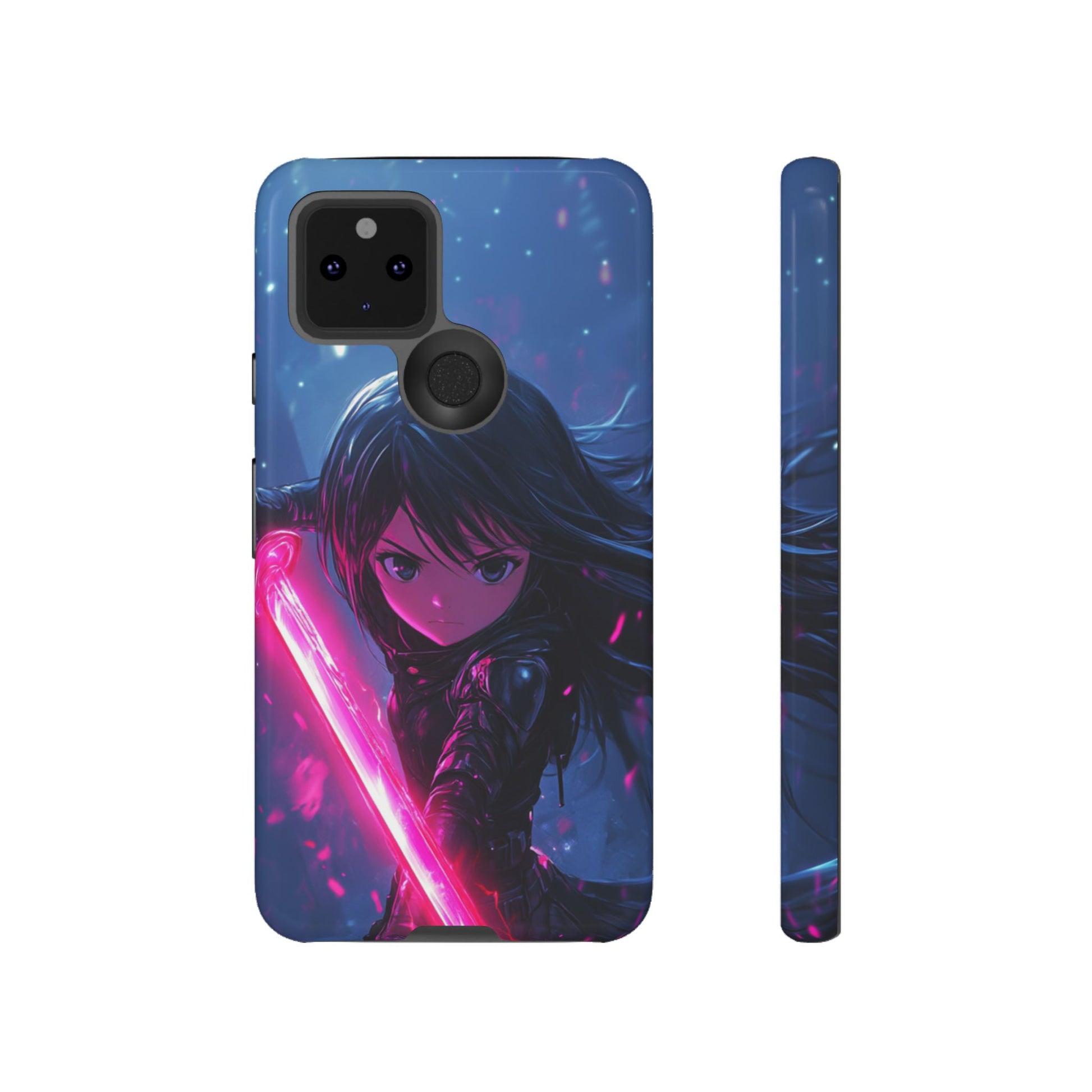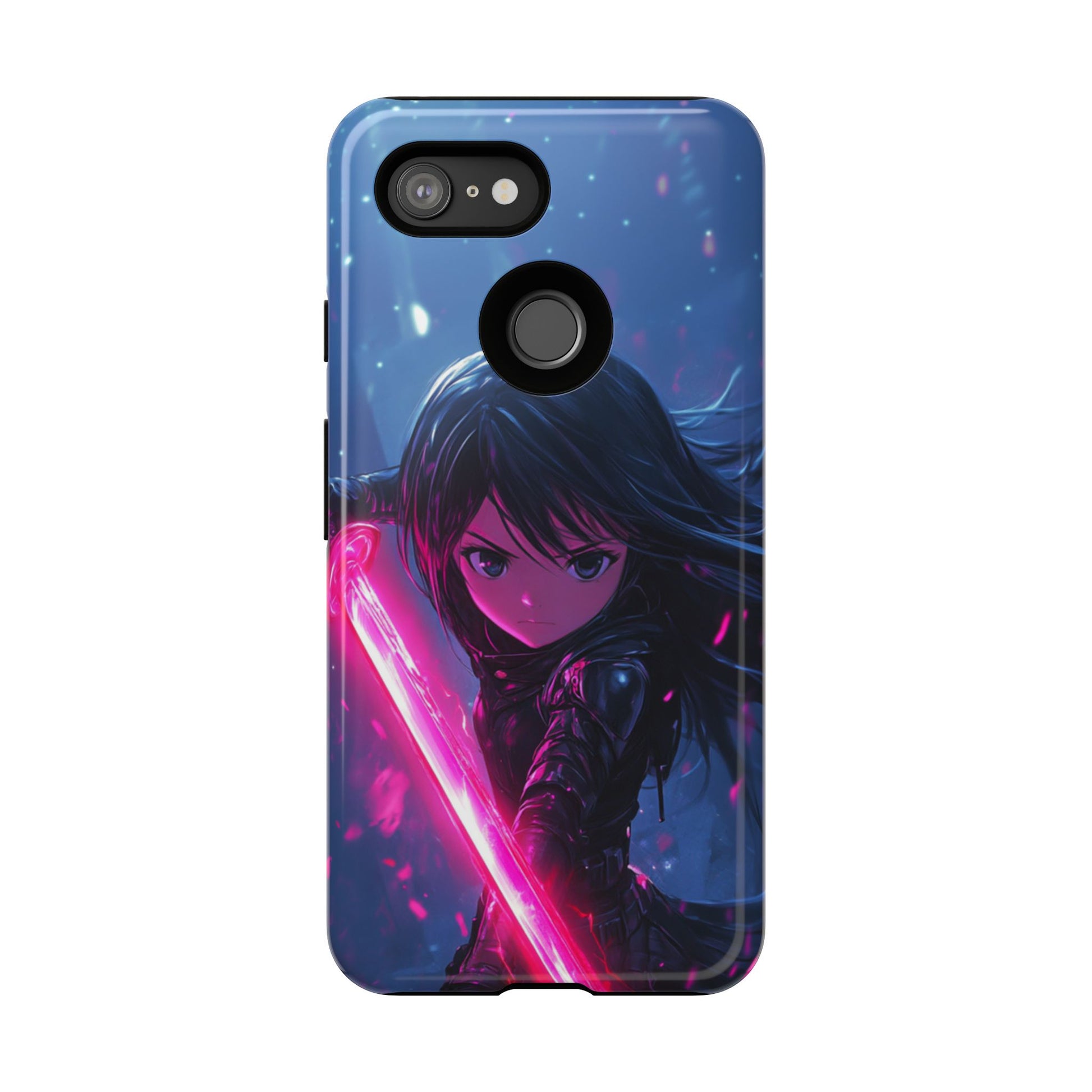 An agile cyber-warrior wields a fluorescent katana, bathing your Google Pixel in neon fury. High-definition artwork pairs with impact-resistant dual-layer protection for daily battles.