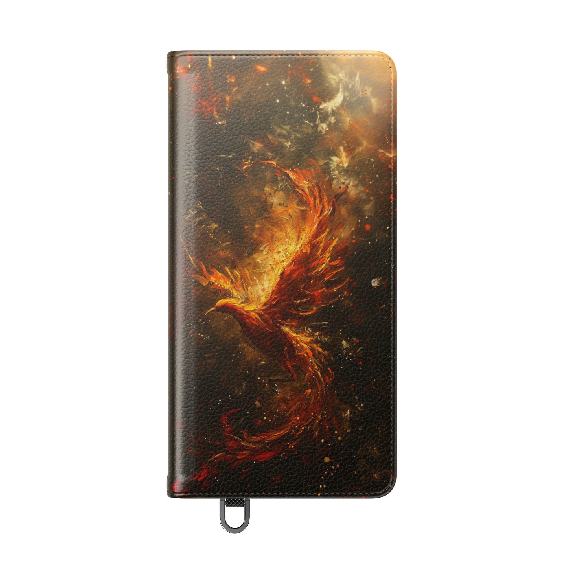 Embrace the power of transformation with our spectacular Phoenix Rising Wallet Flip Case. This breathtaking design captures the legendary firebird in its moment of glorious rebirth, with magnificent wings spread wide as flames and golden sparks swirl dramatically around its majestic form. The phoenix emerges from darkness in brilliant oranges, reds, and golds, its feathers appearing to be made of living fire that dances and flows with ethereal energy. Sparkling embers and celestial light create a cosmic backdrop, while the bird's powerful silhouette commands attention at the center of this fiery spectacle. The rich, warm color palette transitions from deep amber to radiant gold, creating depth and movement that seems to pulse with life. This powerful symbol of renewal, resilience, and transformation makes this design perfect for those overcoming challenges, embracing new beginnings, or anyone drawn to the profound mythology of the phoenix. Ideal for fantasy enthusiasts, spiritual seekers, or those who find inspiration in symbols of strength and rebirth.