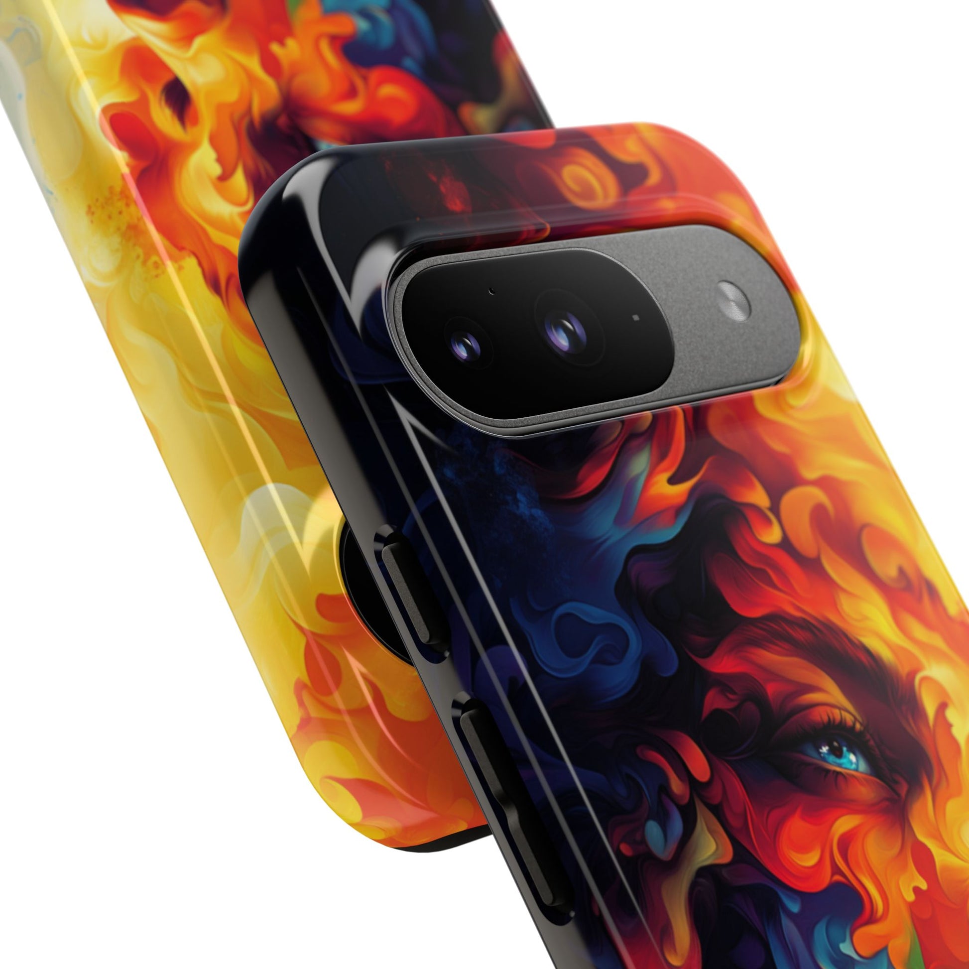 Brushstrokes of incandescent coral, azure, and gold swirl into a surreal visage that seems to breathe imagination. Impact‑resistant dual‑layer engineering and high‑definition printing make this Google Pixel case as durable as it is mesmerizing.