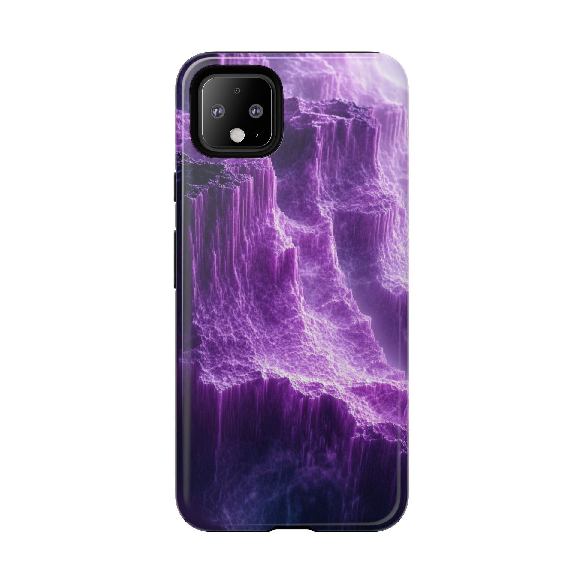 Journey into an otherworldly realm with our stunning Purple Crystal Canyon Google Pixel case featuring towering amethyst crystal formations in a mystical landscape. This breathtaking design showcases dramatic purple and lavender crystal cliffs with ethereal lighting that creates a magical, dreamlike atmosphere. The geological wonder combines natural beauty with fantasy elements, making it perfect for crystal enthusiasts and lovers of mystical landscapes.