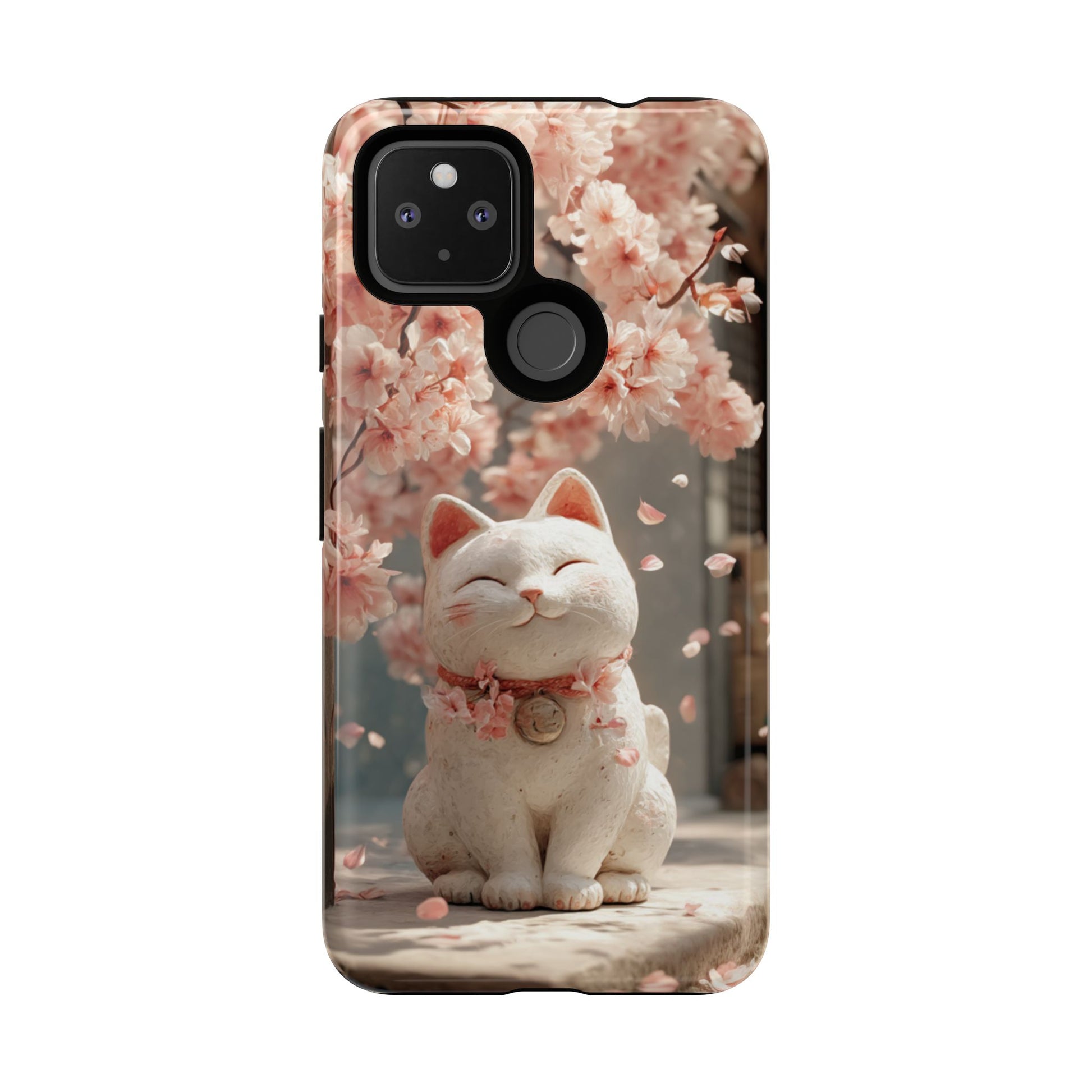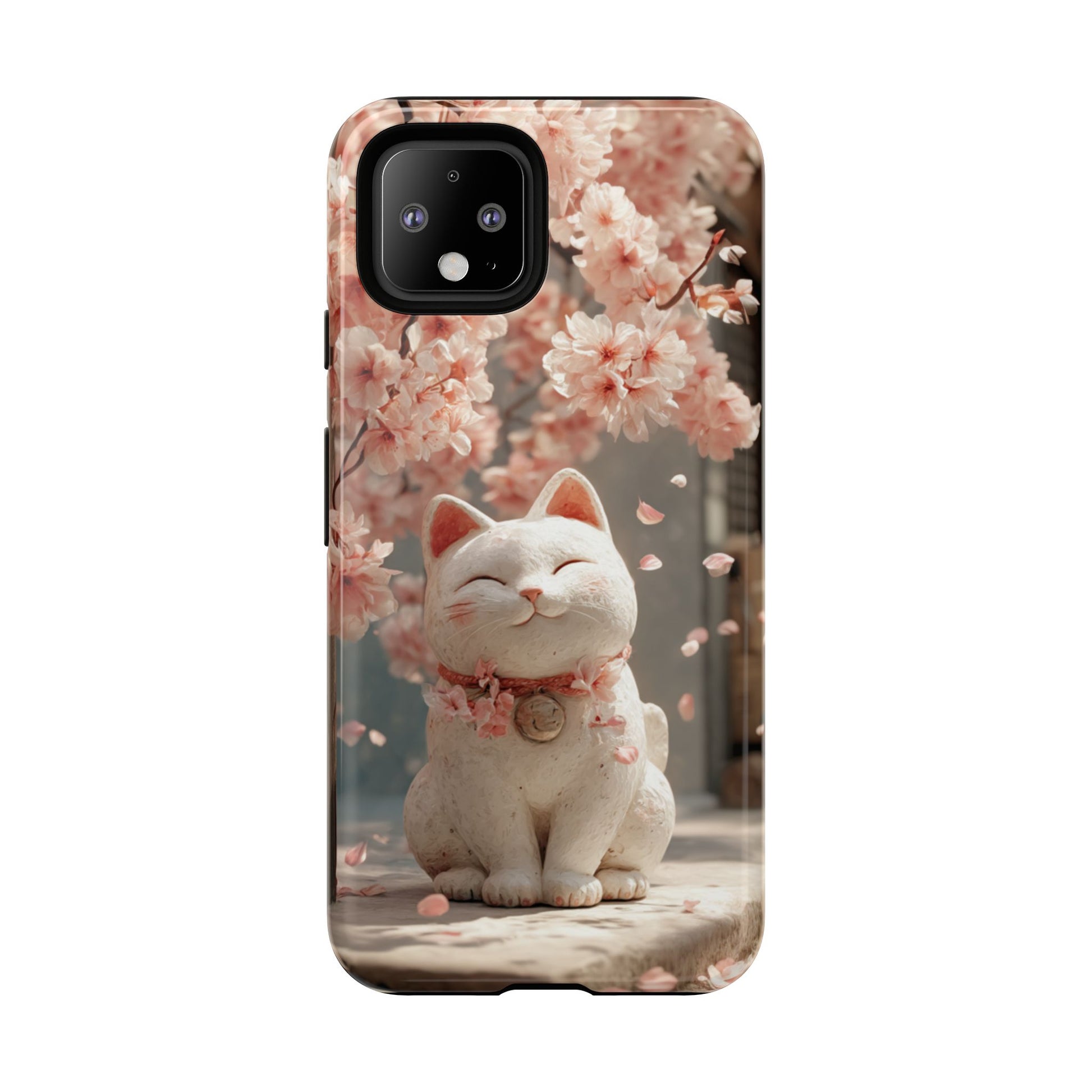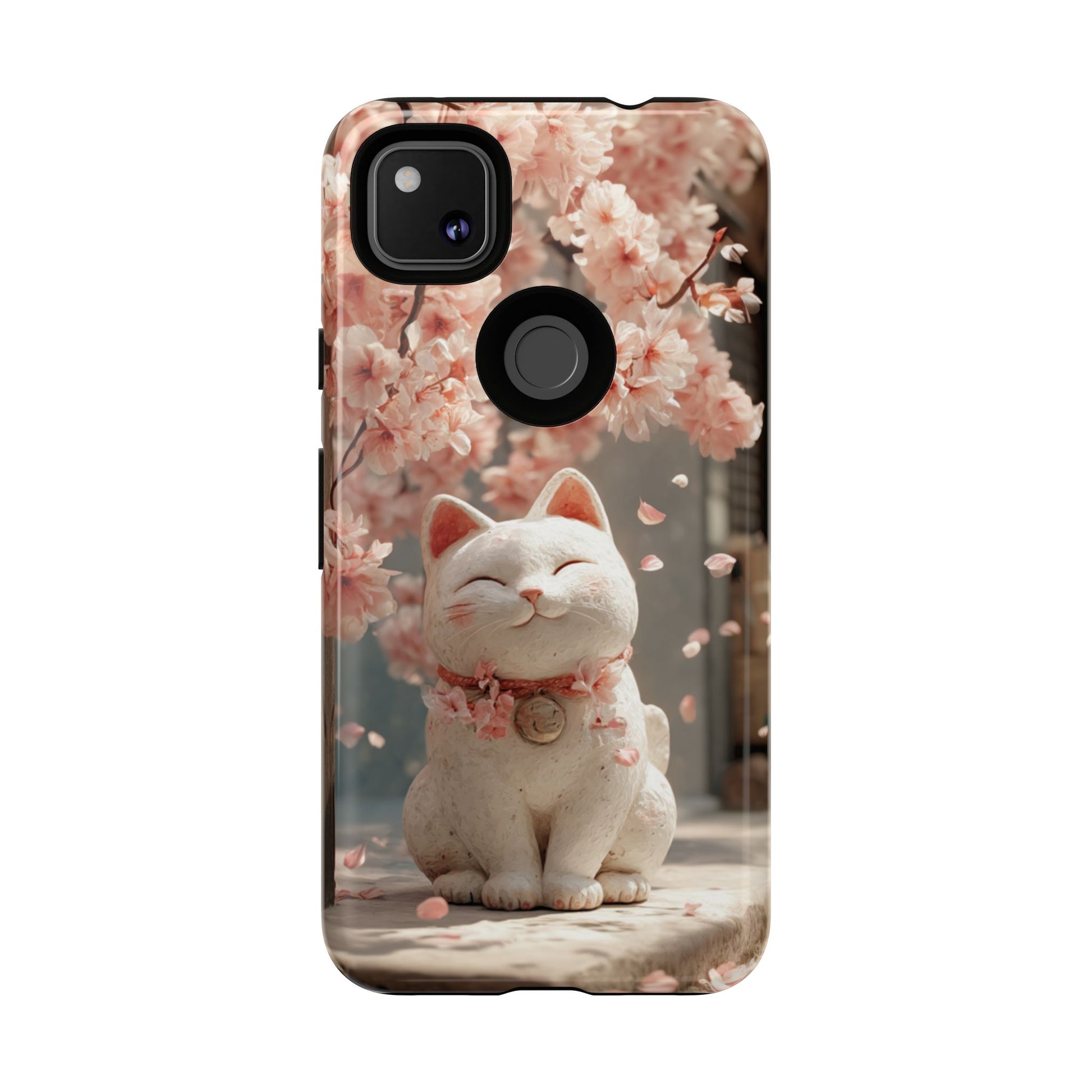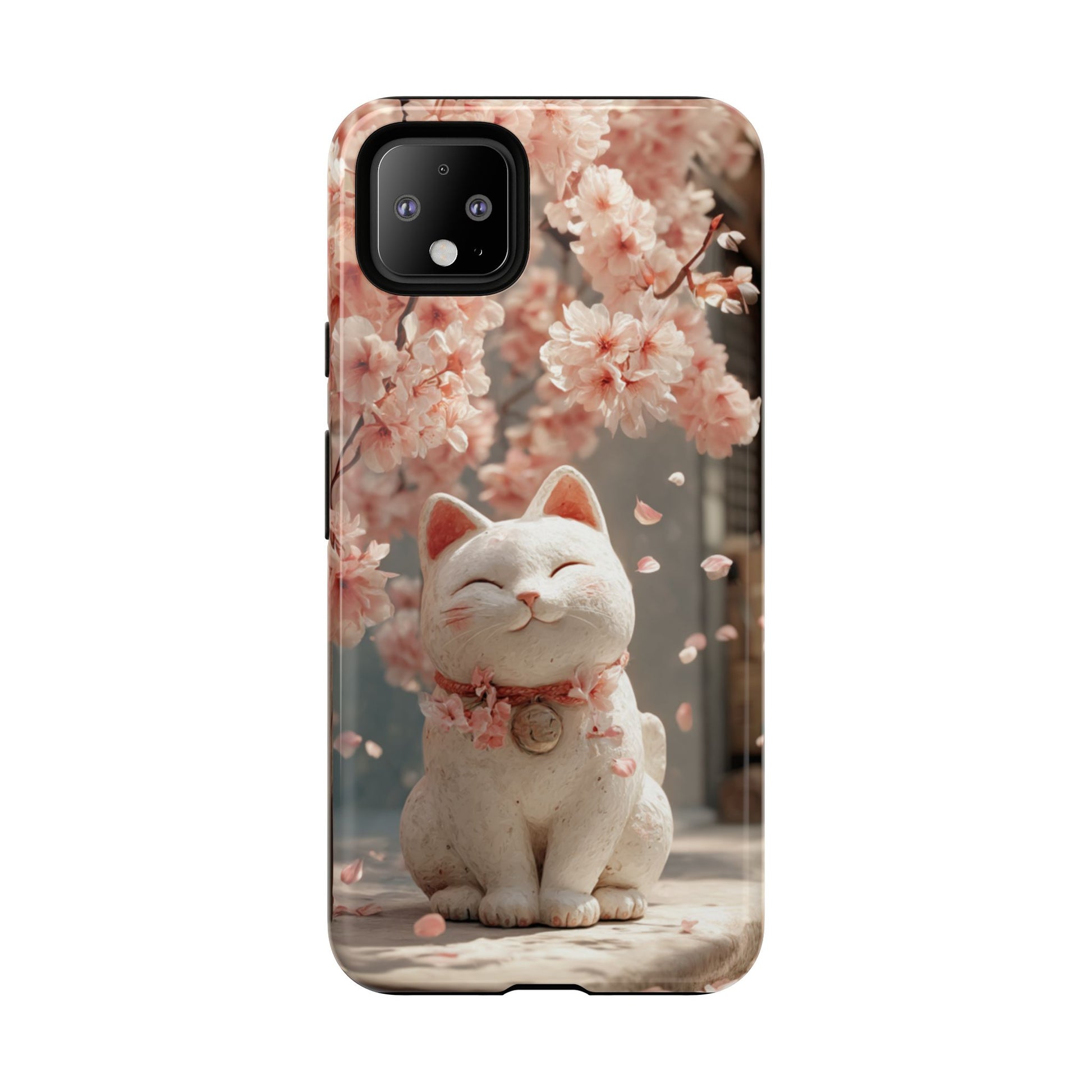 Embrace spring serenity with our gentle Sakura Lucky Cat Google Pixel case featuring a peaceful maneki neko surrounded by soft pink cherry blossoms. The traditional white cat sits contentedly beneath delicate sakura branches with falling petals creating a dreamy atmosphere. This harmonious blend of Japanese cultural symbols captures the tranquil beauty of cherry blossom season and traditional good fortune wishes.
