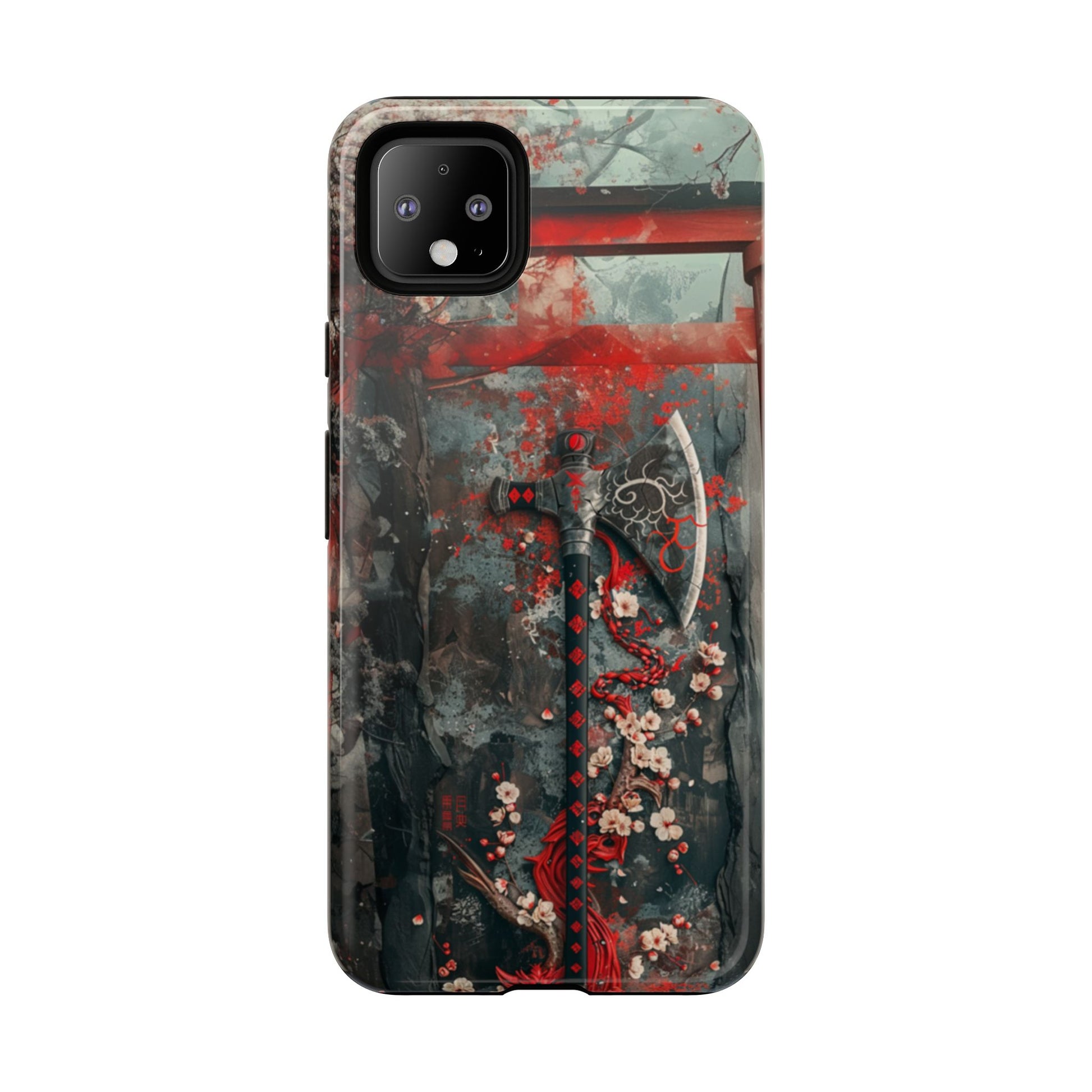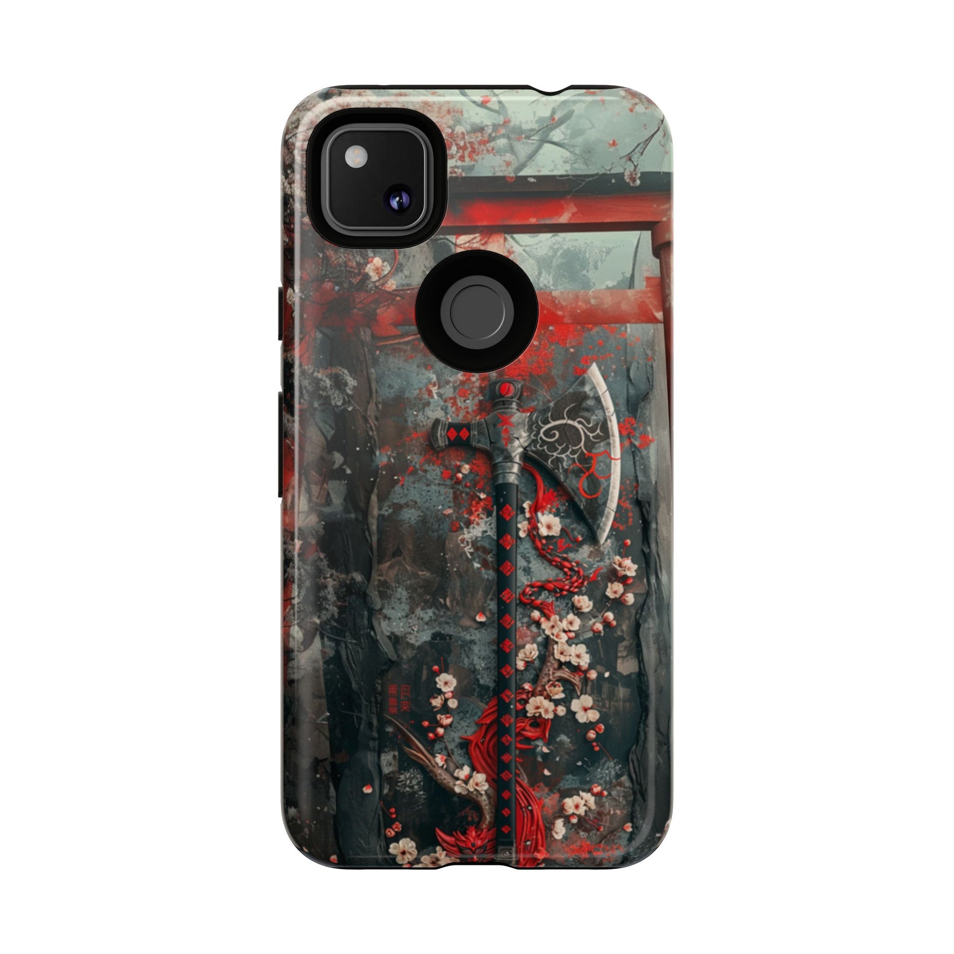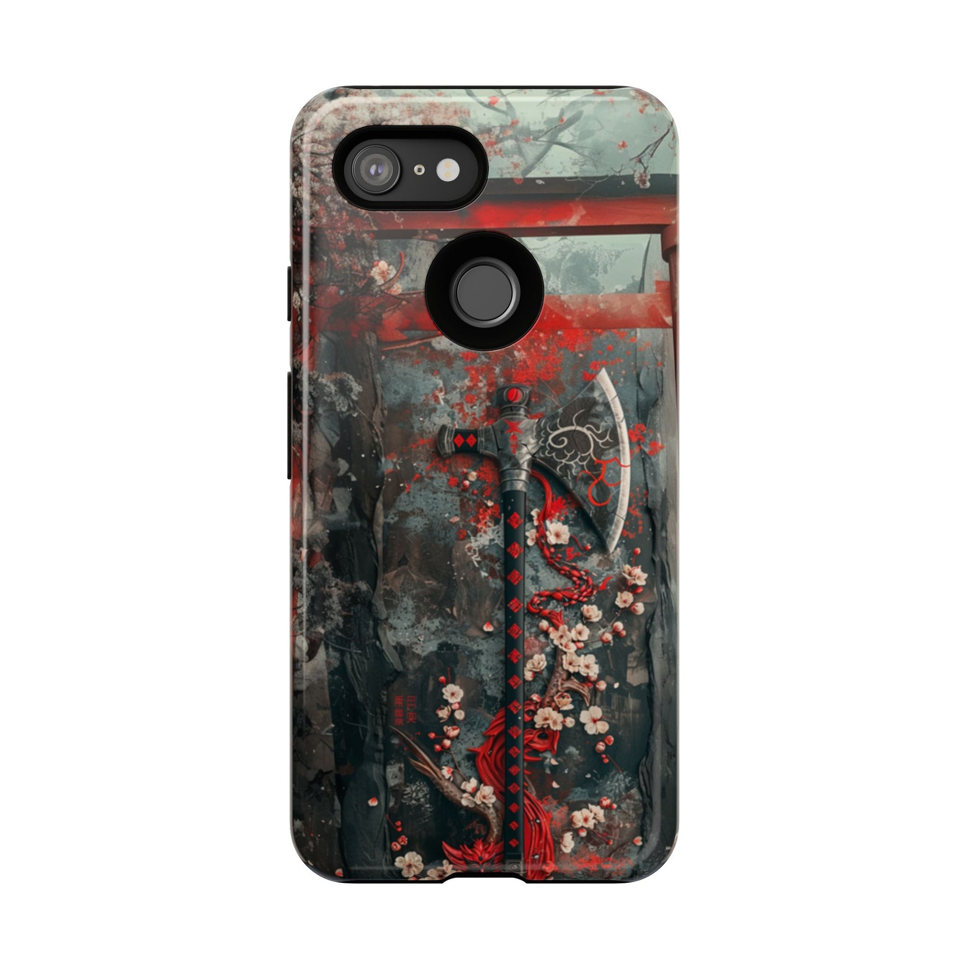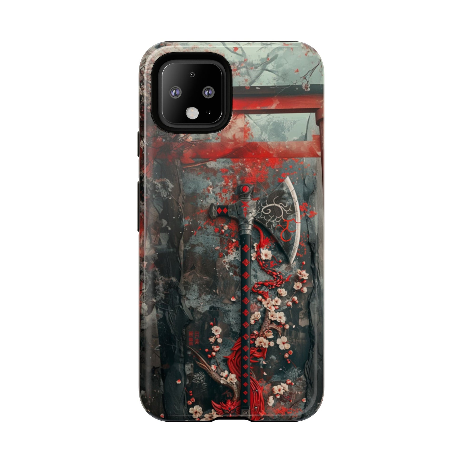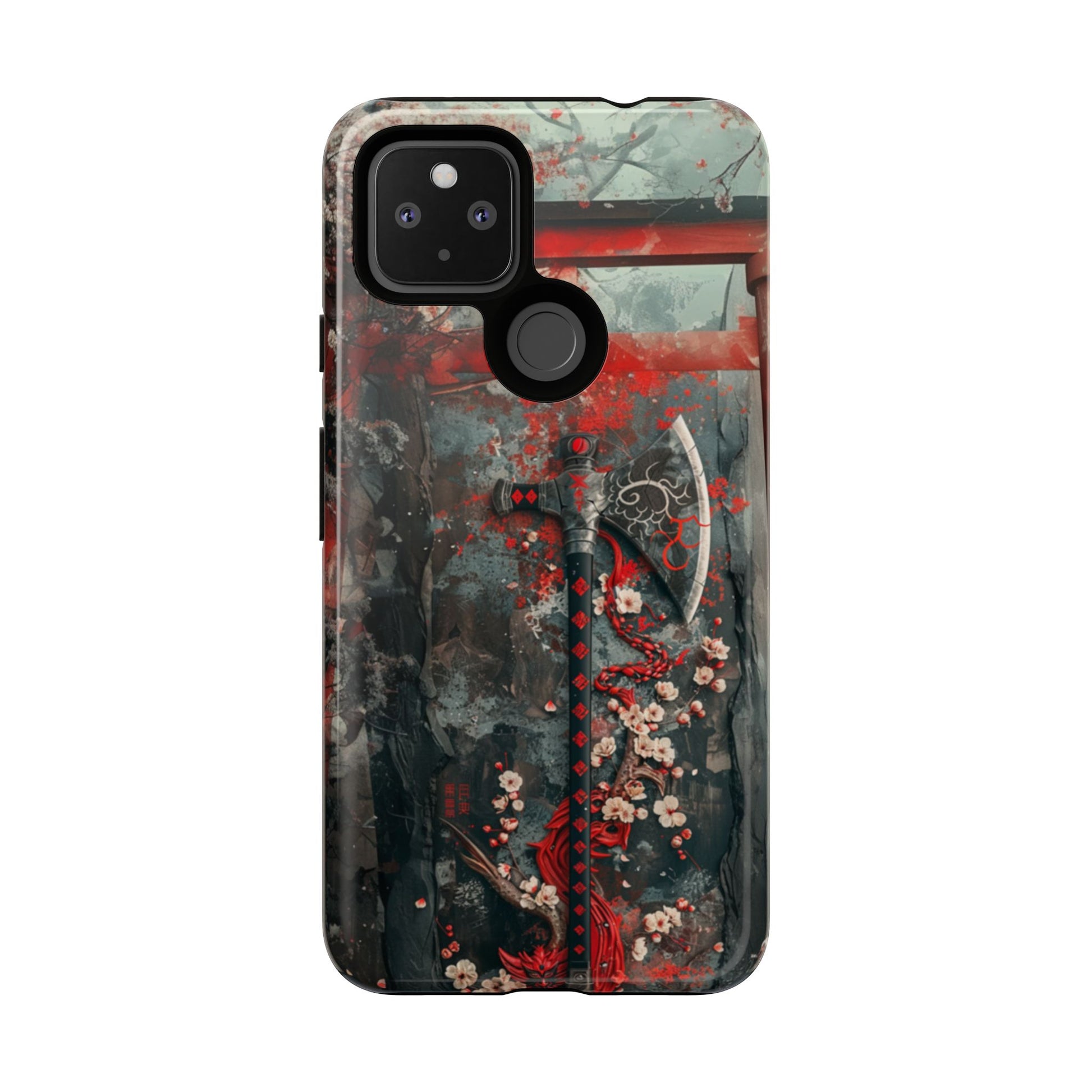 Honor the way of the warrior with our exquisite Sakura Warrior Axe Google Pixel case. This breathtaking design features an elegant Japanese-inspired war axe with intricate red and black ornamental details, surrounded by delicate cherry blossoms that dance through the scene. Set beneath a traditional vermillion torii gate with atmospheric mist and falling sakura petals, this artwork perfectly captures the harmony between martial prowess and natural beauty that defines Japanese warrior culture. The ornate weapon design combines strength with artistic elegance, creating a scene that celebrates both the power and poetry of the samurai spirit.