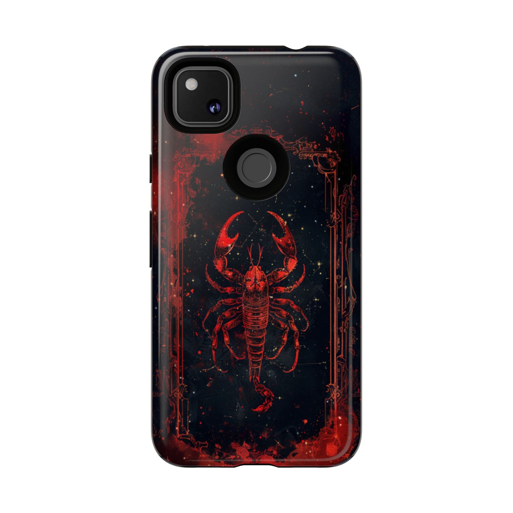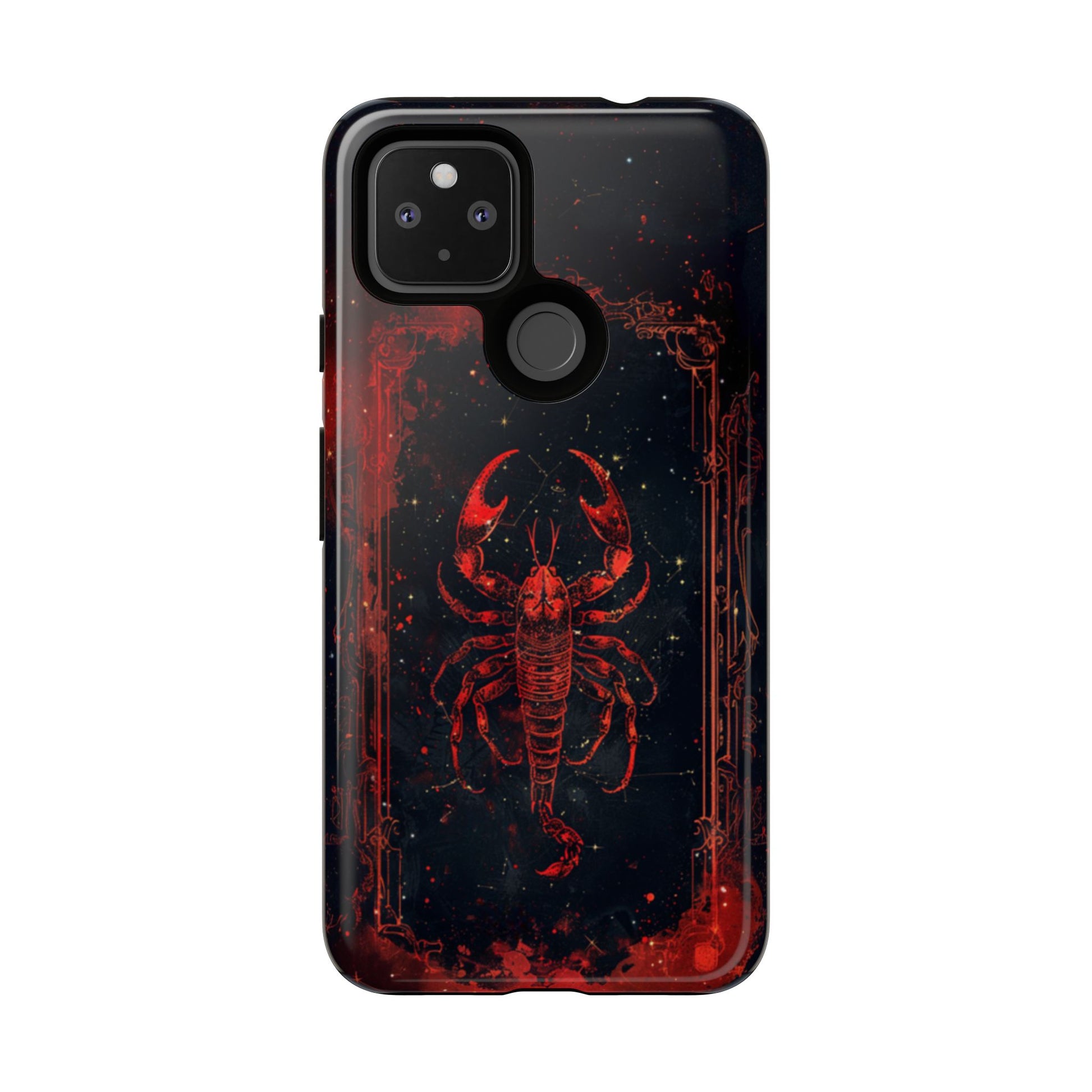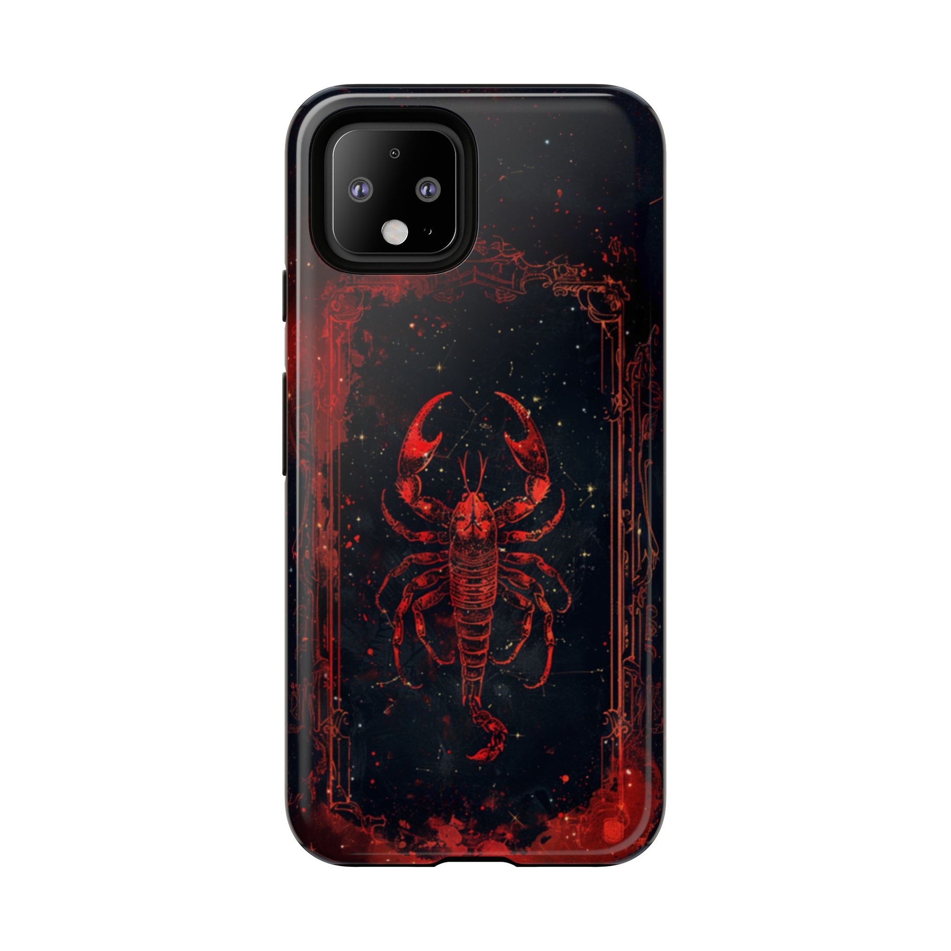 Golden stars shimmer through scarlet nebula clouds behind a red scorpion etched in celestial lines. Impact‑resistant dual‑layer construction pairs with vivid HD art to guard your Google Pixel under every cosmic alignment.