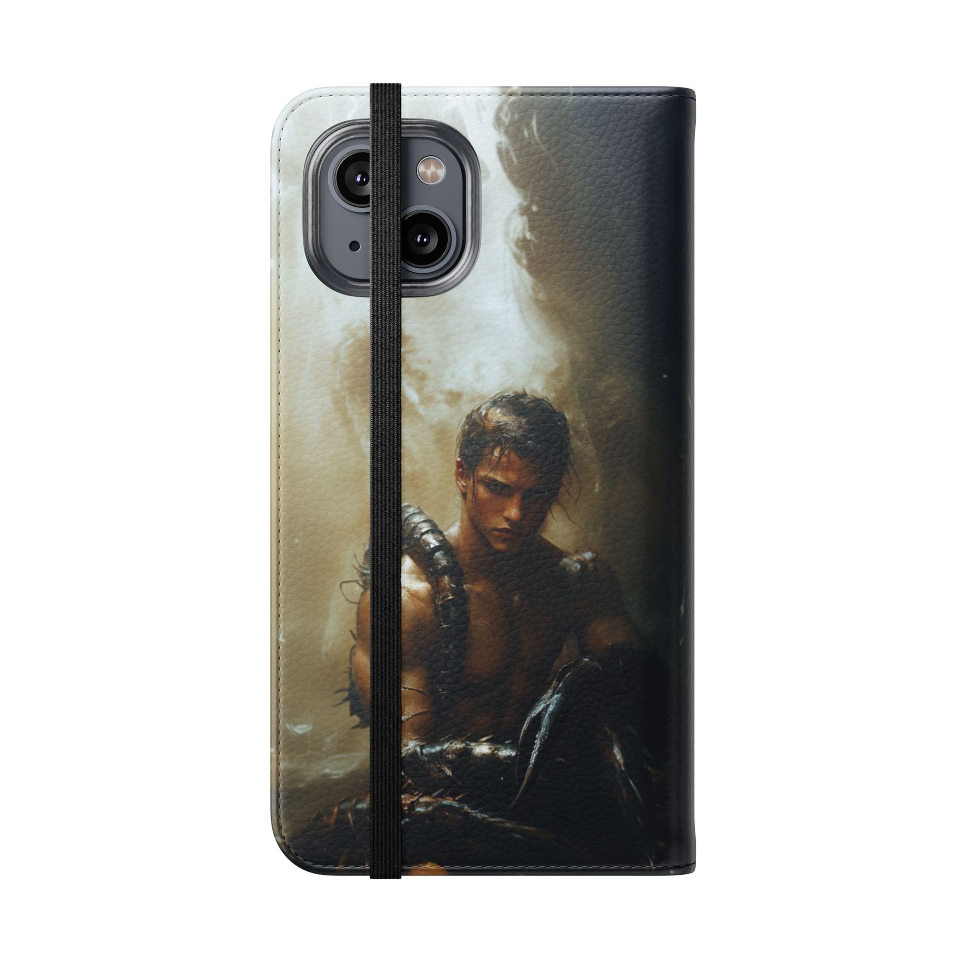 Protect your phone with our premium Scorpion Ascendant wallet case featuring a powerful warrior adorned with scorpion-inspired armor emerging through dramatic golden and dark smoke. This versatile flip case combines wallet functionality with comprehensive phone protection, card storage, and intense epic warrior artwork.