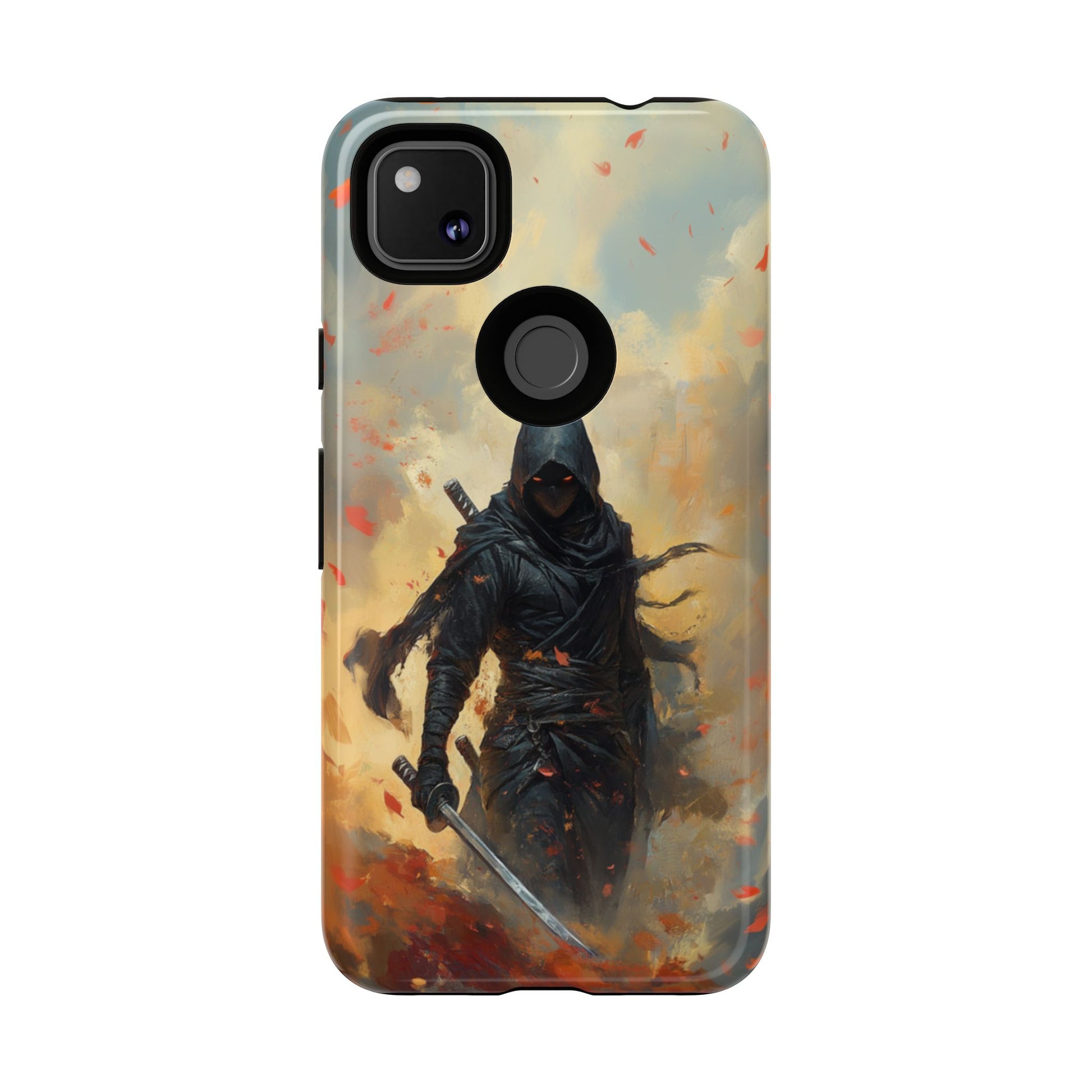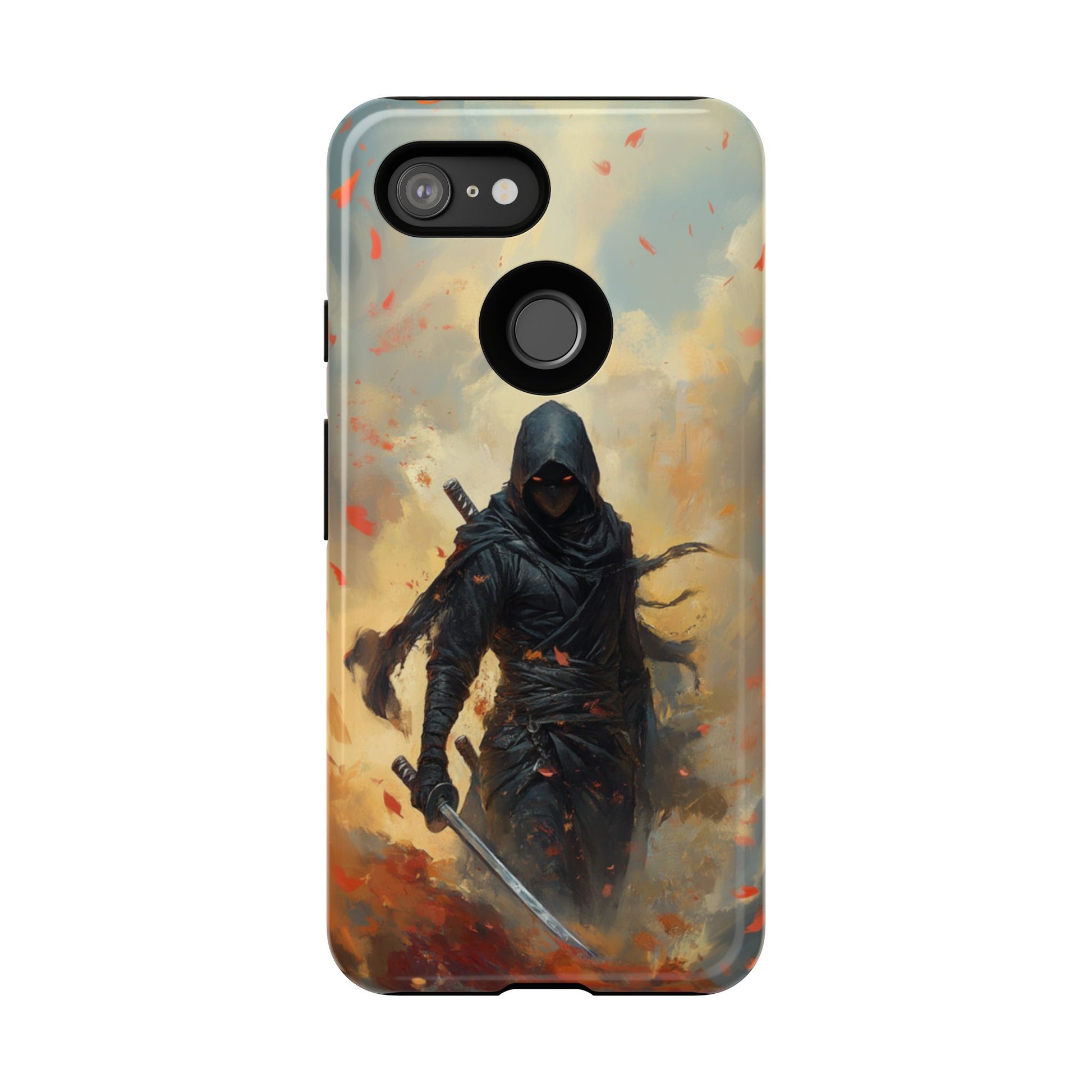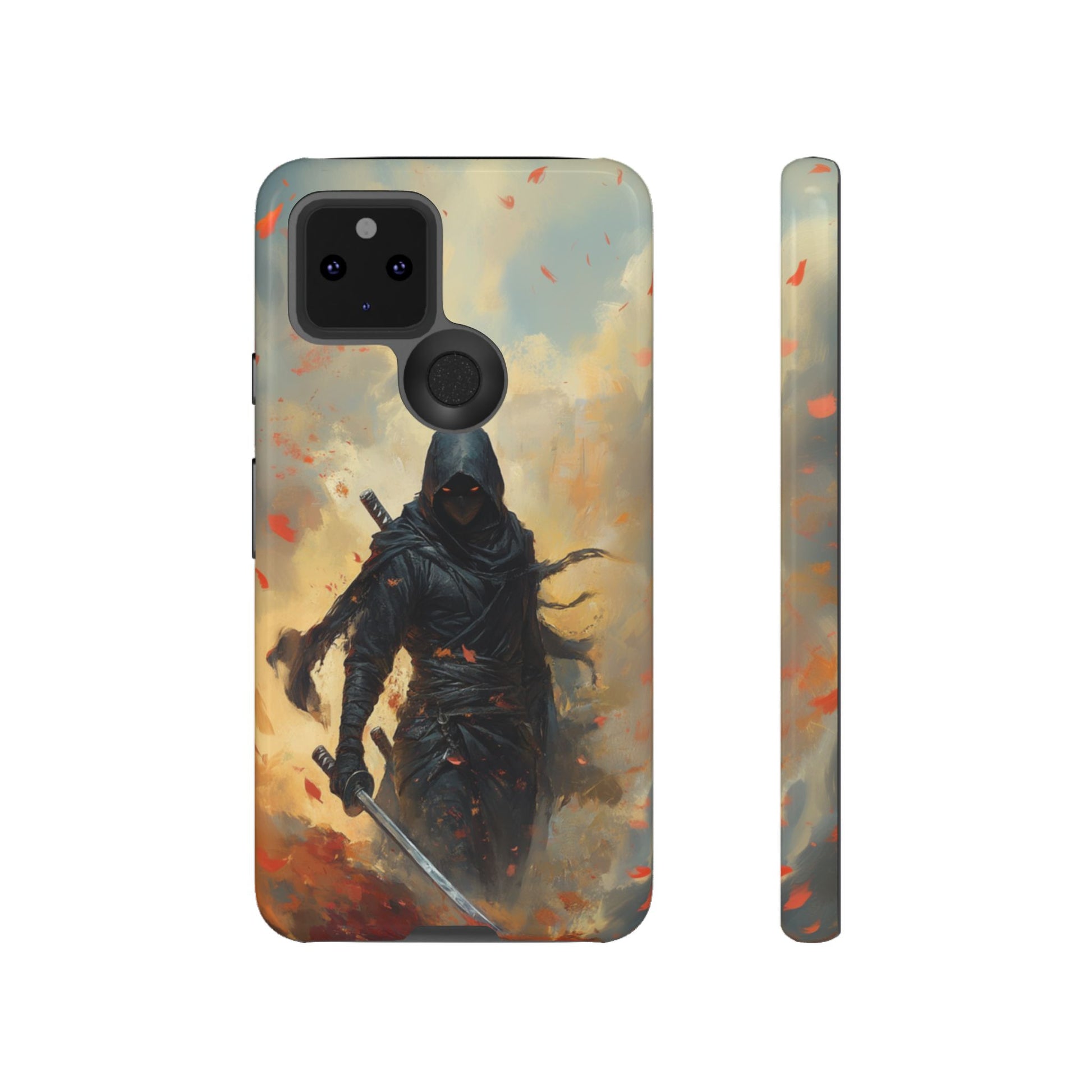 Infuse your Pixel with stealth, speed, and fiery resolve. This case depicts a hooded samurai cutting through swirling embers—perfect for fans of action art and Japanese warrior legends.