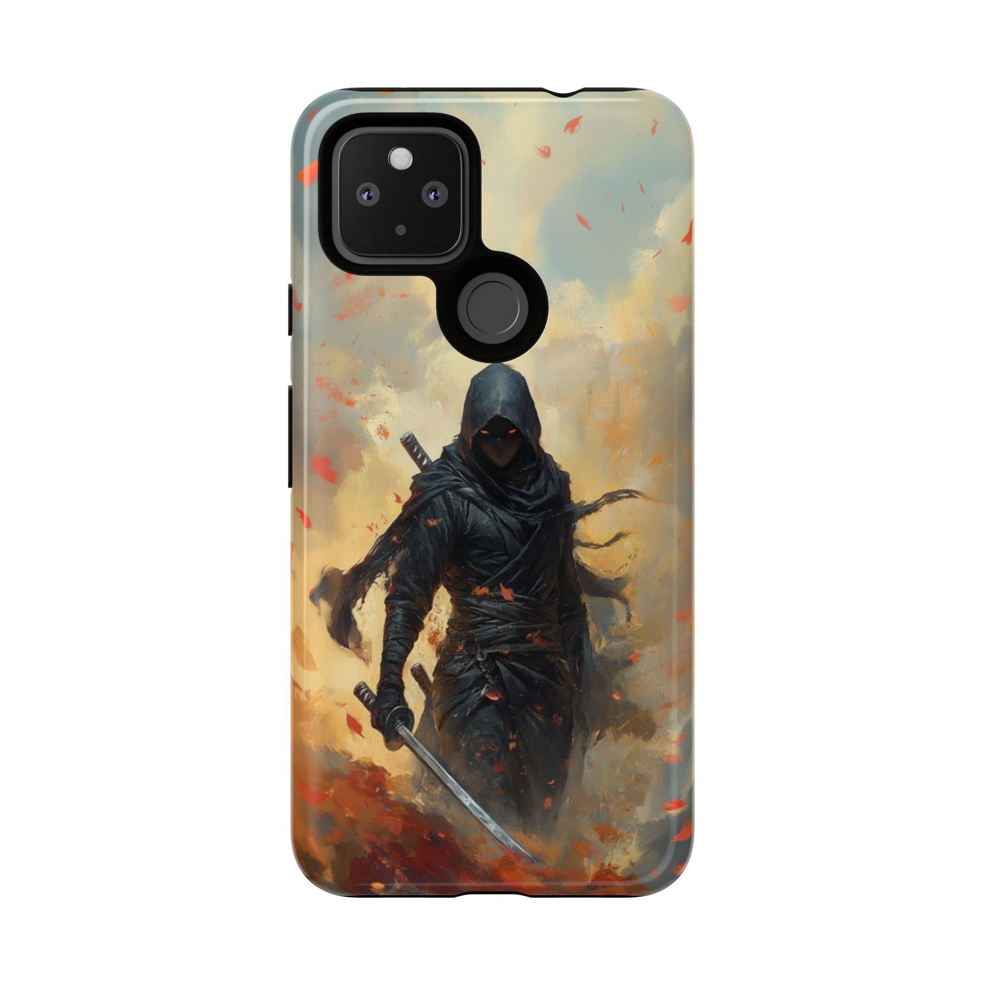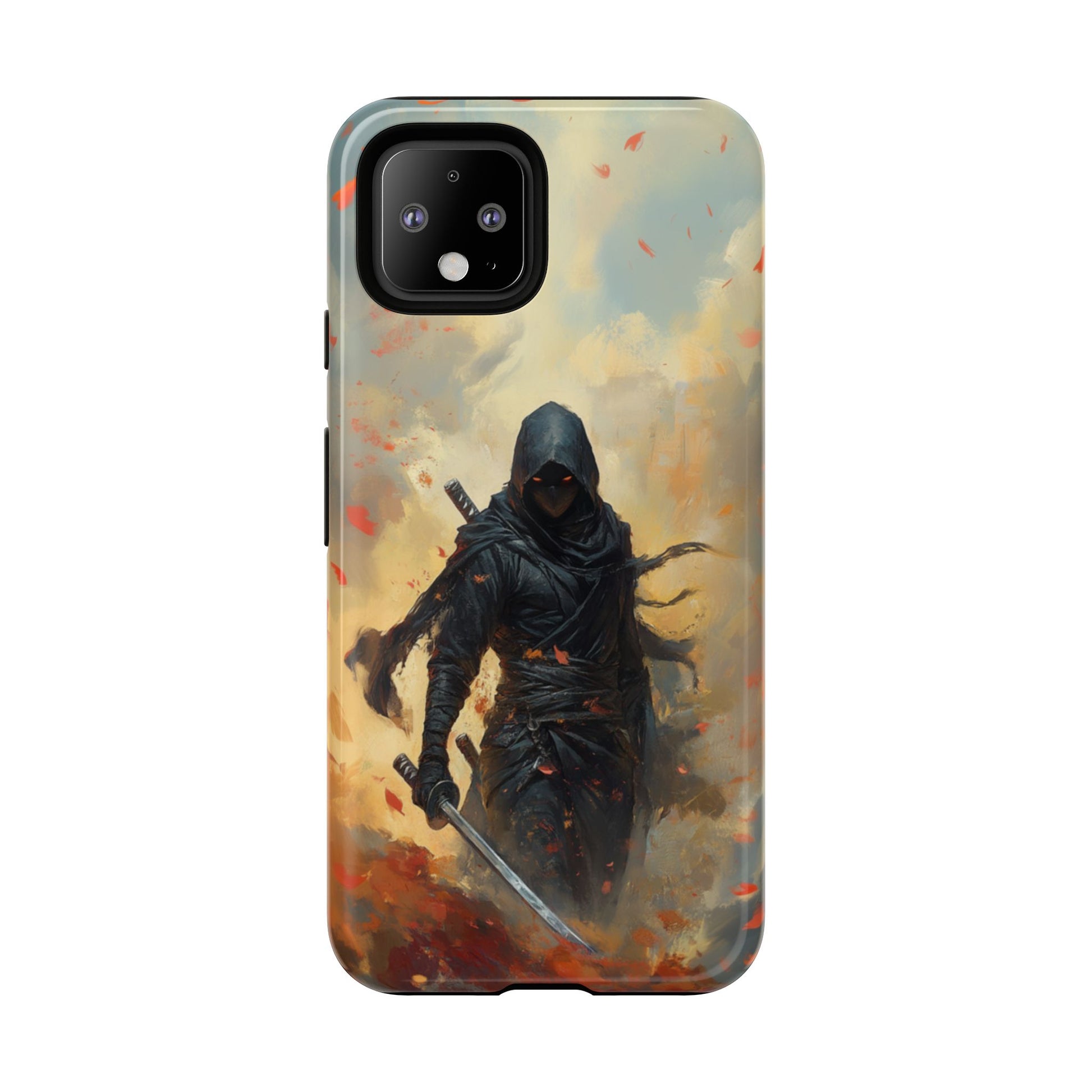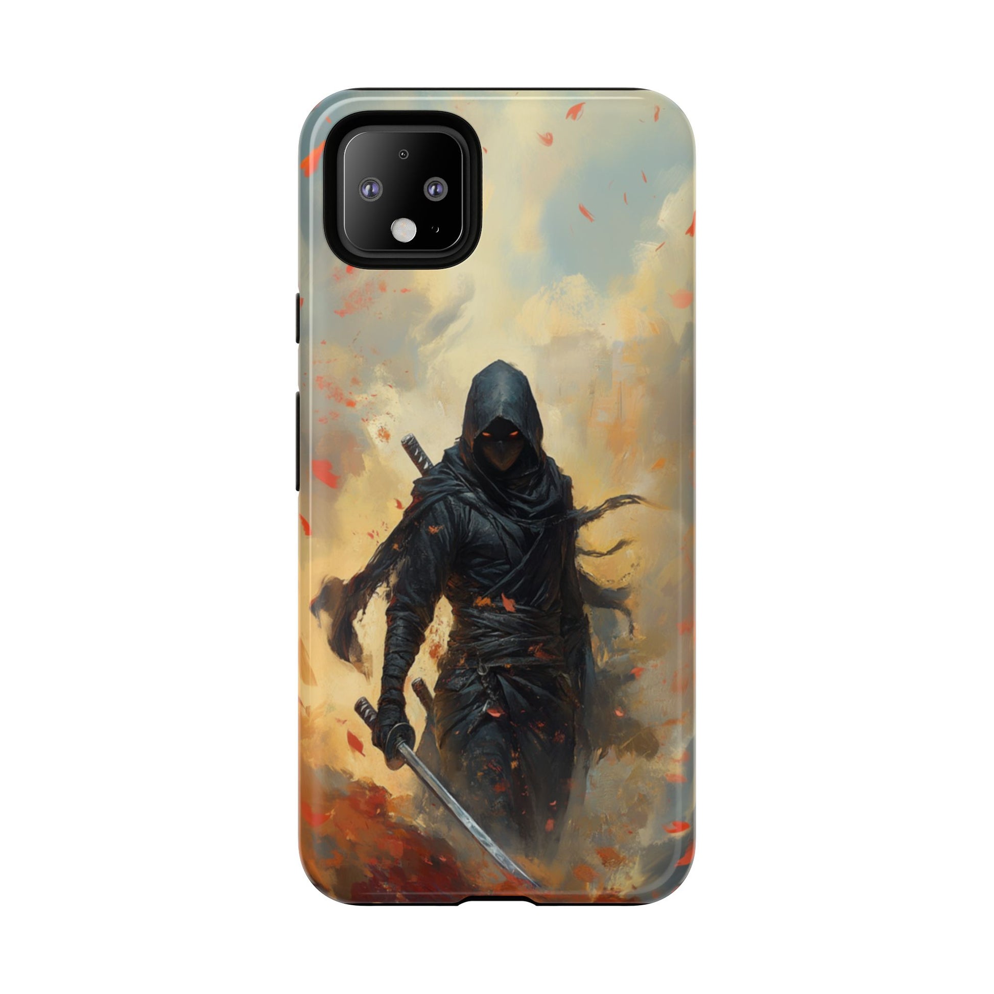Infuse your Pixel with stealth, speed, and fiery resolve. This case depicts a hooded samurai cutting through swirling embers—perfect for fans of action art and Japanese warrior legends.