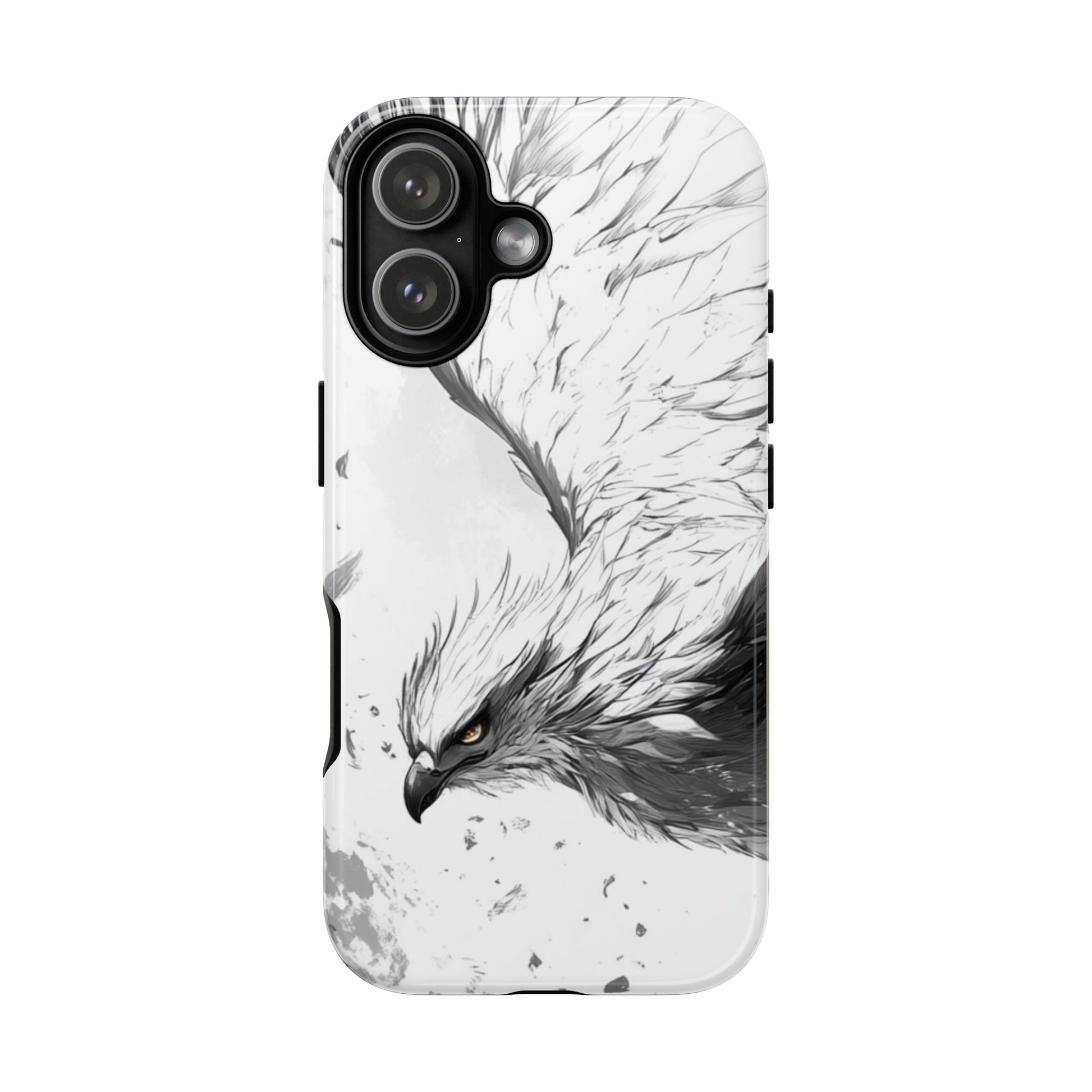 Witness the raw power of nature with our striking Storm Eagle iPhone case. This dramatic black and white artwork captures a magnificent eagle in mid-flight, its powerful wings spread wide as it soars through a turbulent storm. The monochromatic design emphasizes the bird's incredible detail - from the fierce intensity in its golden eye to every meticulously rendered feather that seems to ripple with movement and energy. Dynamic wind lines and scattered debris create a sense of motion and atmospheric drama, while the high-contrast composition highlights the eagle's commanding presence against the stormy backdrop. The artwork combines realistic detail with artistic expression, showcasing the eagle as a symbol of strength, freedom, and resilience in the face of nature's challenges. Perfect for wildlife enthusiasts, bird lovers, those who appreciate powerful symbolism, or anyone drawn to dramatic black and white artwork that captures the untamed spirit of America's national bird.