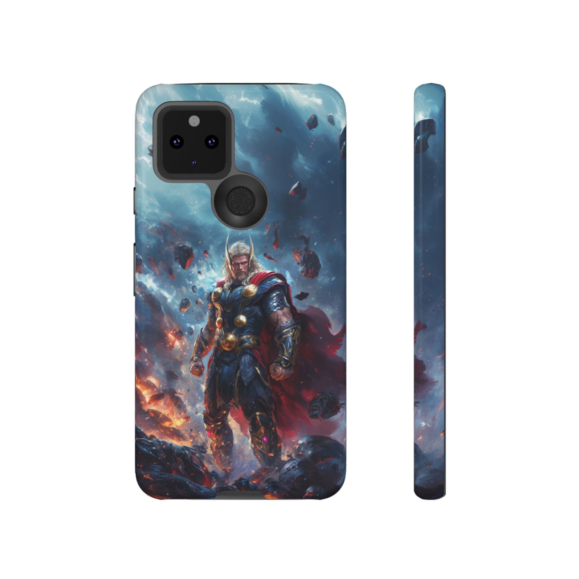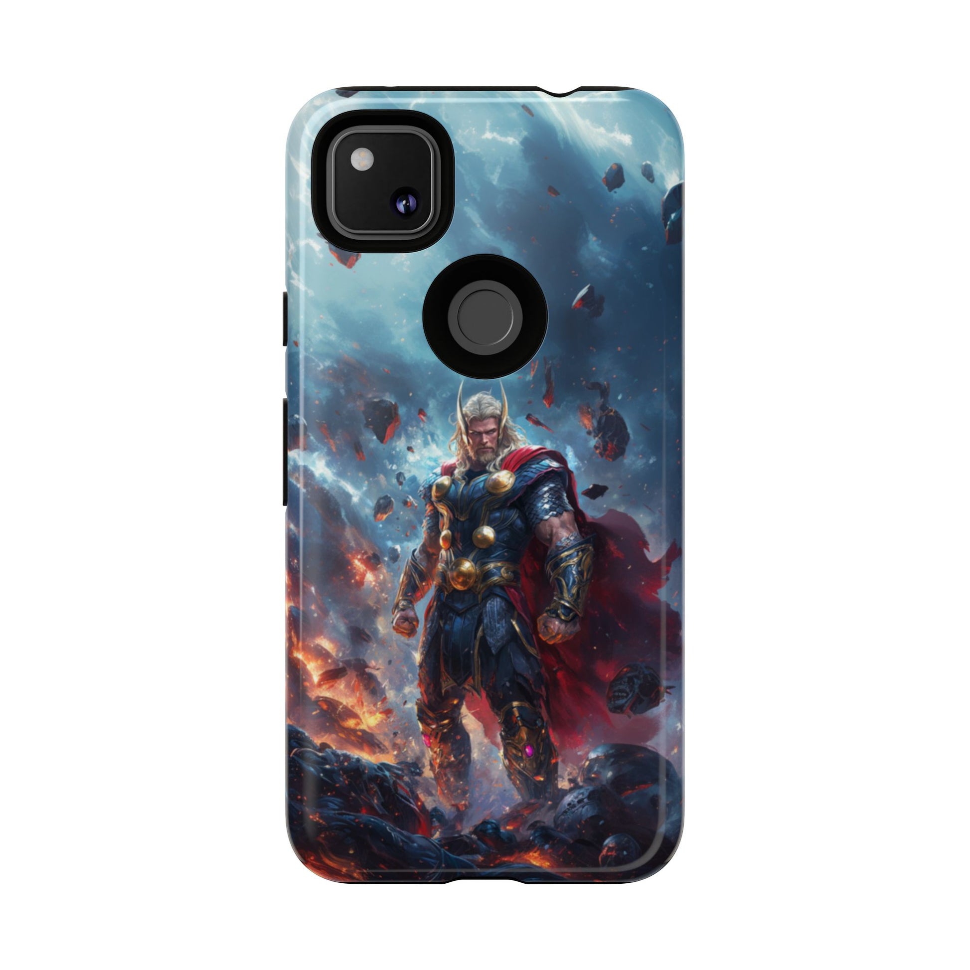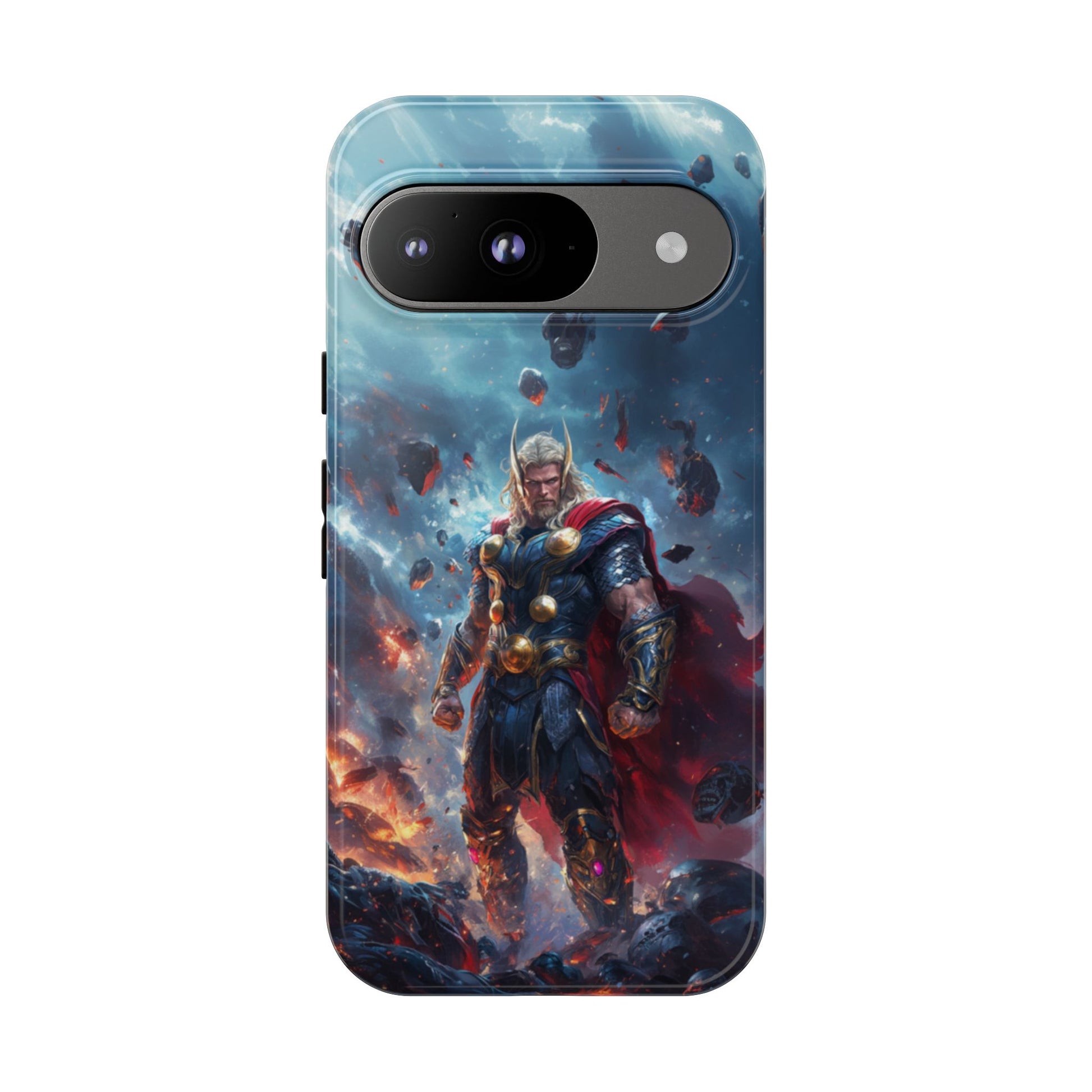 Arm your Pixel with the hammer‑wielding might of Thor, surrounded by storm‑torn skies and blazing rubble. A dynamic statement of valor, justice, and unstoppable power.