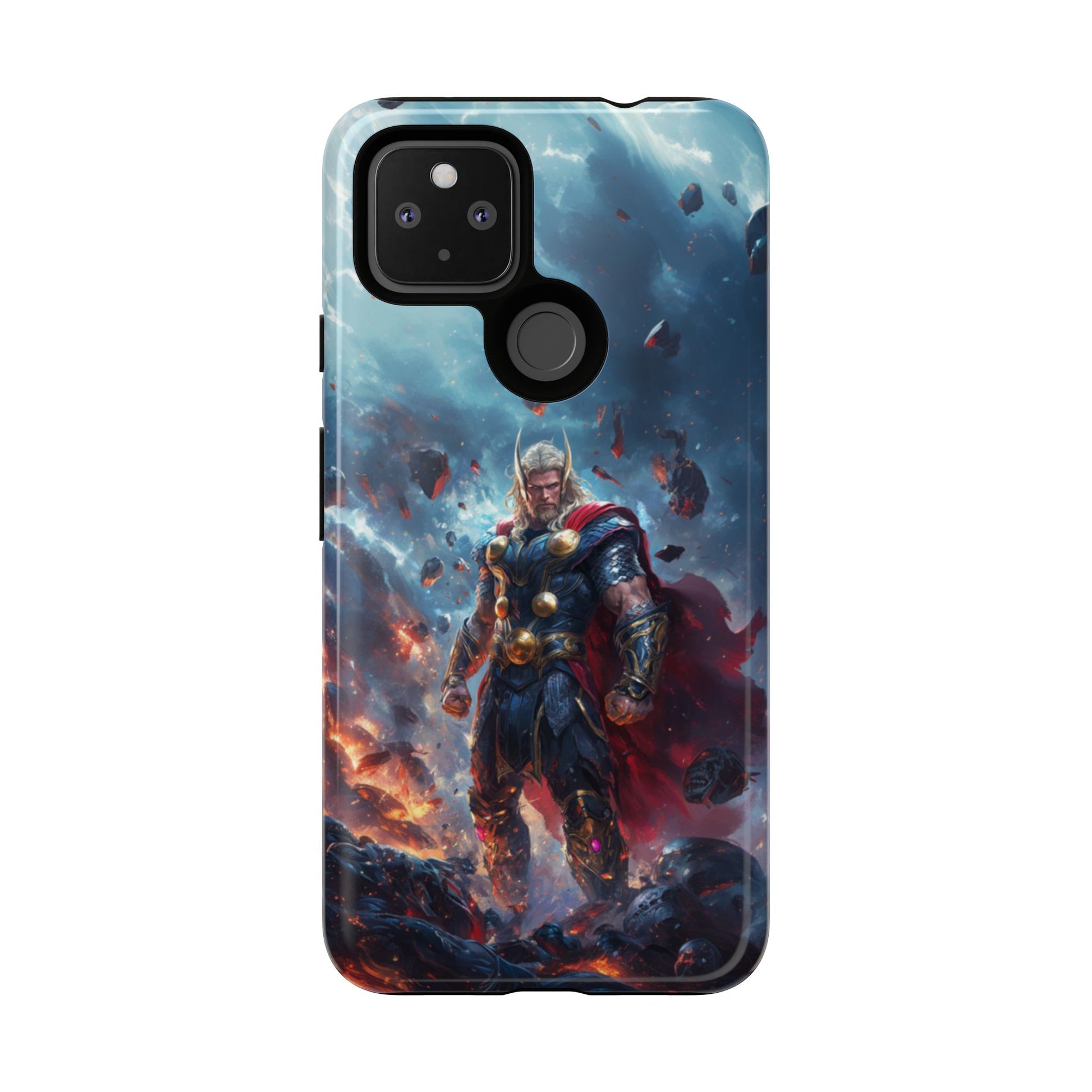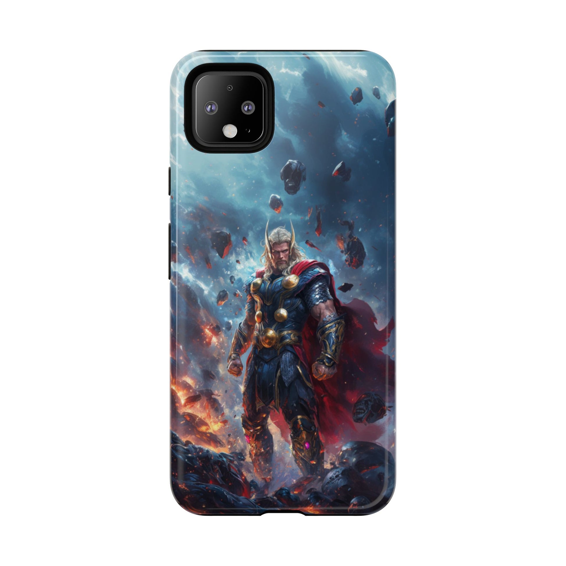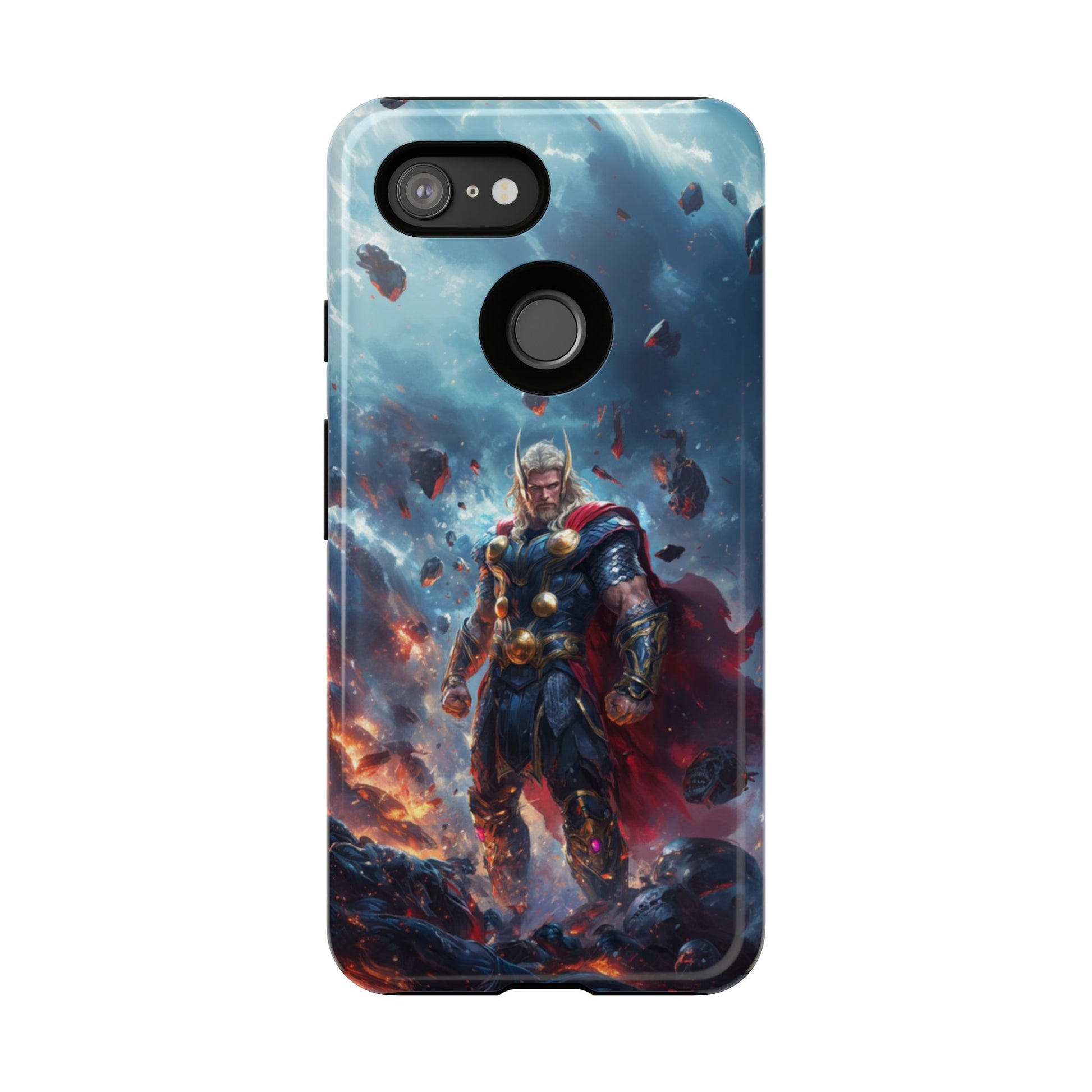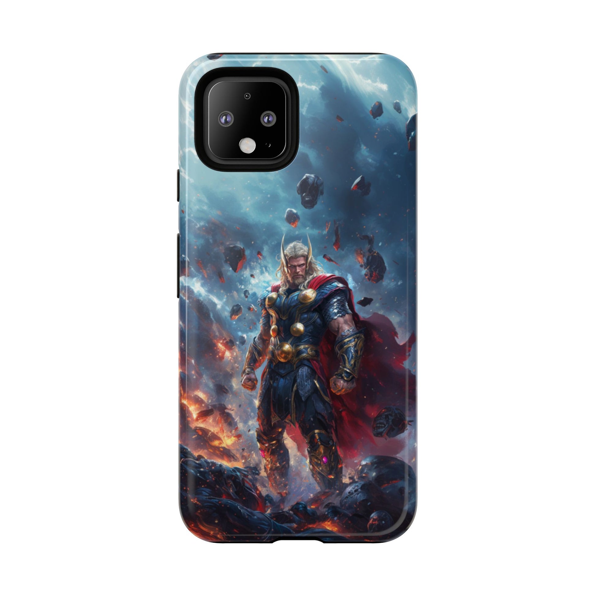 Arm your Pixel with the hammer‑wielding might of Thor, surrounded by storm‑torn skies and blazing rubble. A dynamic statement of valor, justice, and unstoppable power.