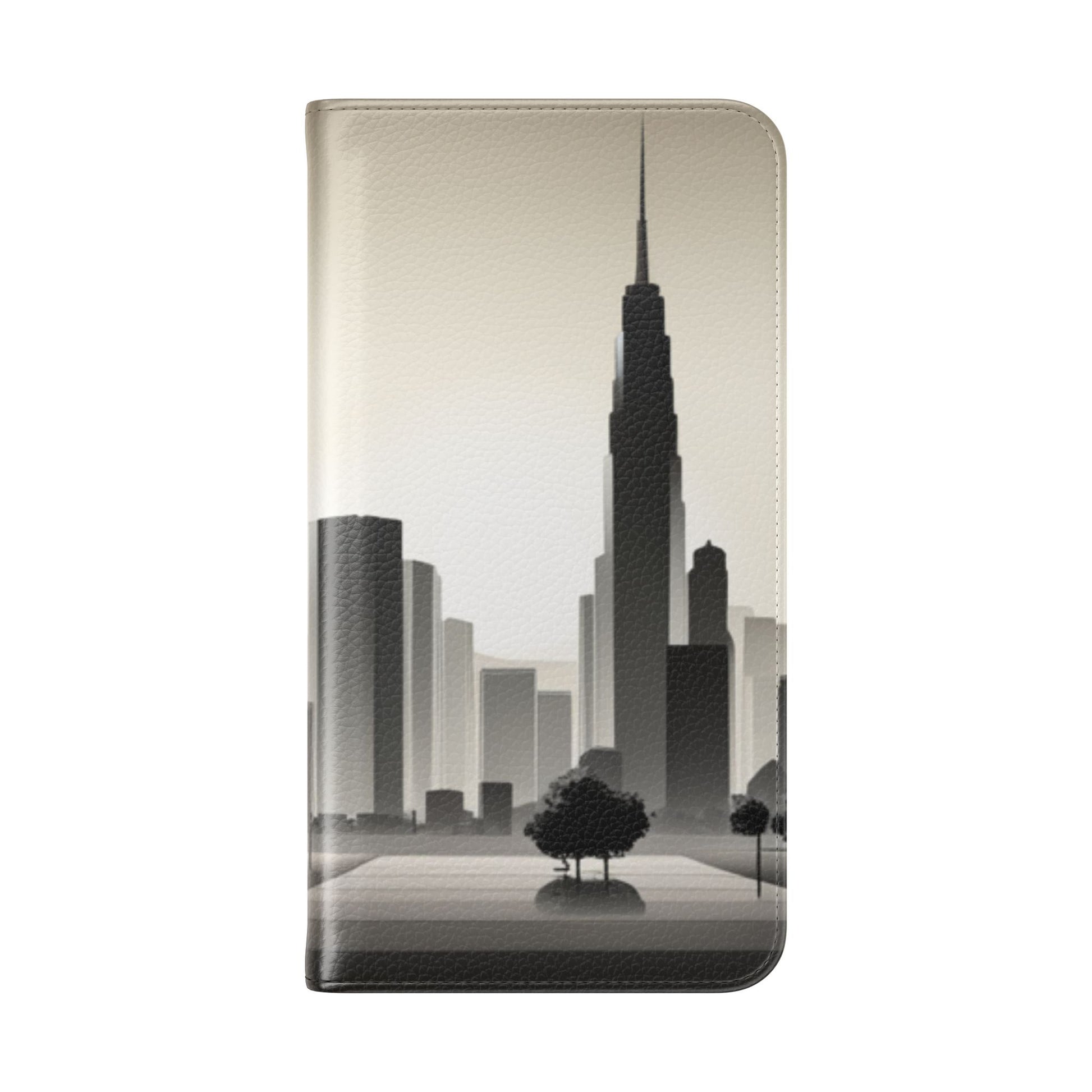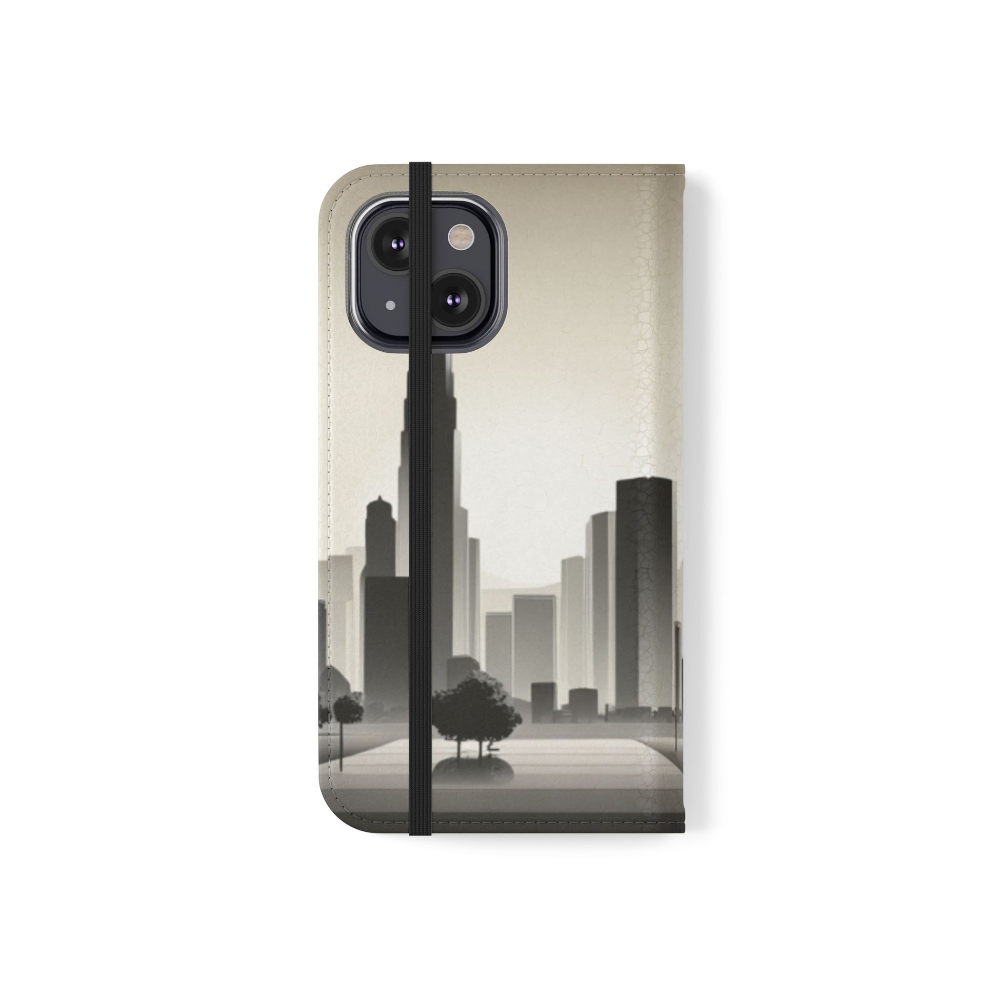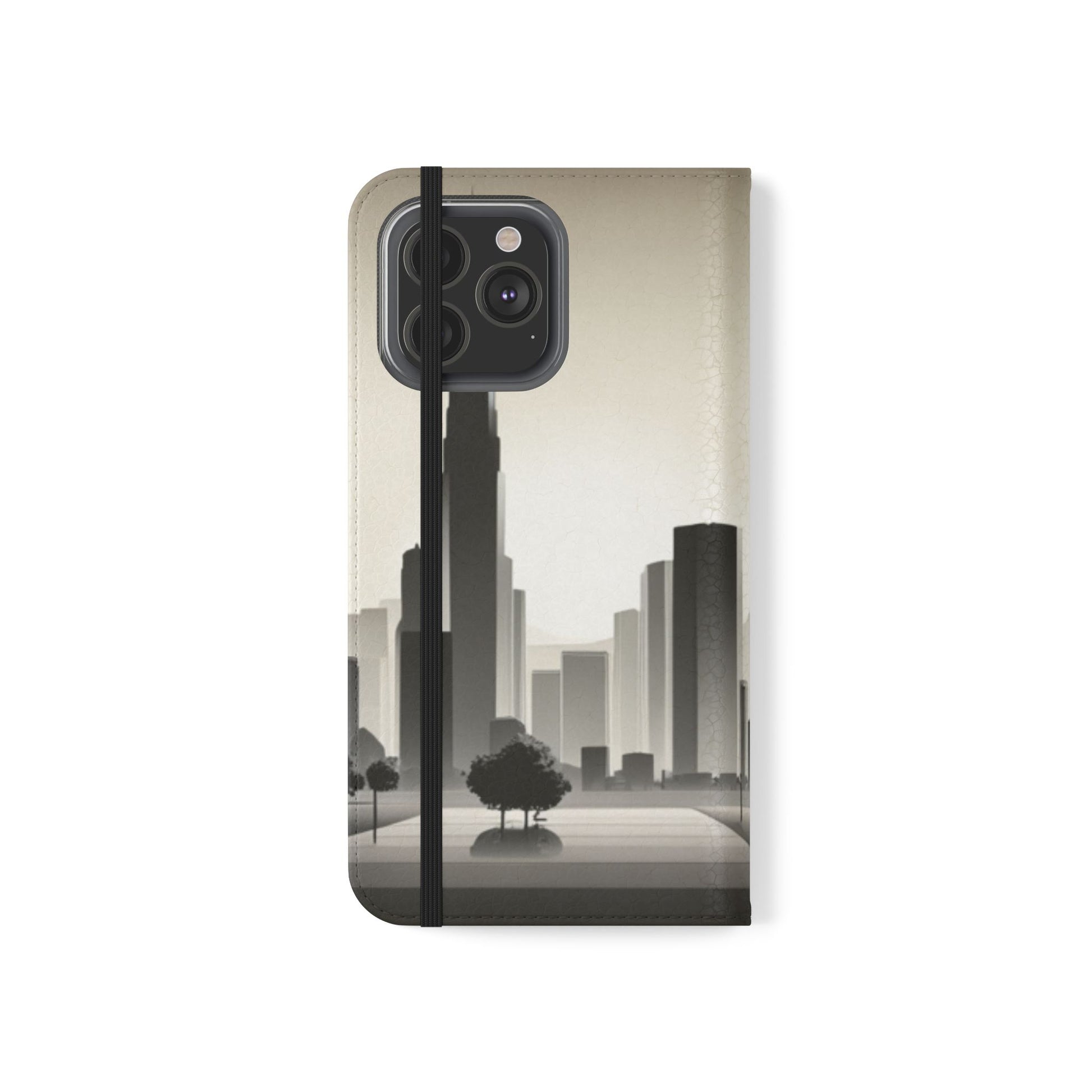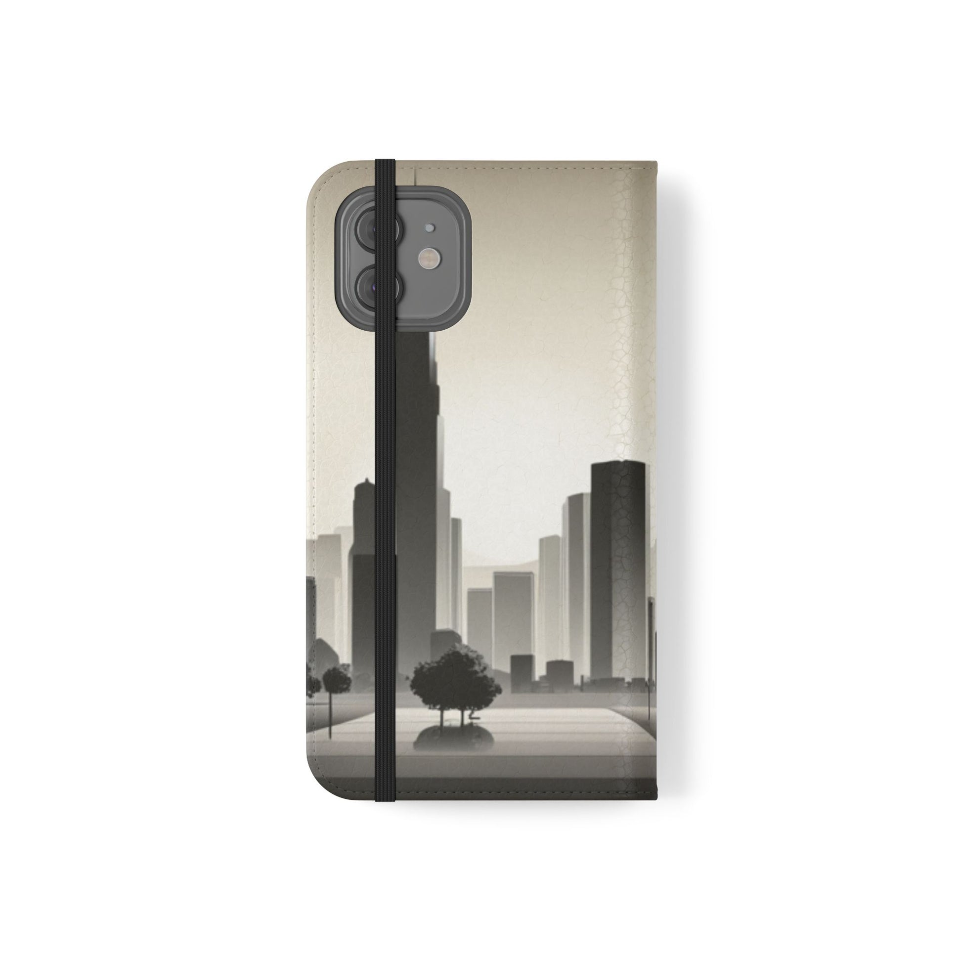 Embrace urban sophistication with our sleek Urban Skyline Wallet Flip Case. This minimalist design captures the essence of modern city living through a stunning black and white composition featuring towering skyscrapers and contemporary architecture. The clean geometric forms create a striking silhouette against a gradient sky, while the monochromatic palette adds timeless elegance to this metropolitan scene. The focal point is a prominent spire that commands attention, surrounded by varied building heights that create visual rhythm and depth. Simple tree silhouettes in the foreground add a touch of nature to balance the urban landscape, creating a harmonious composition that speaks to modern life's blend of natural and built environments. The sophisticated grayscale treatment gives this design a classic, professional aesthetic that works perfectly for both business and casual settings. Perfect for city dwellers, architecture enthusiasts, minimalist design lovers, or anyone who appreciates the bold beauty of urban landscapes and contemporary metropolitan aesthetics.