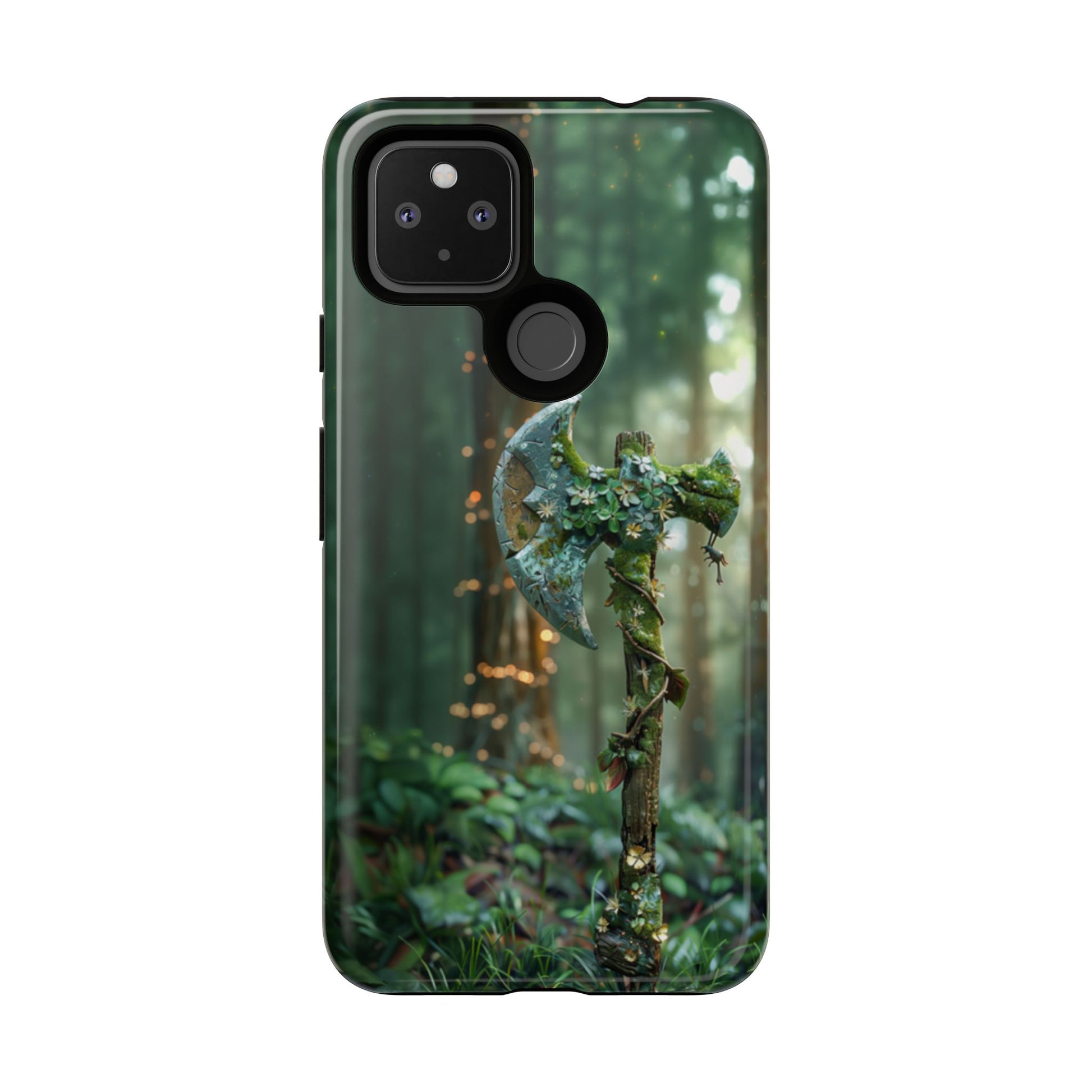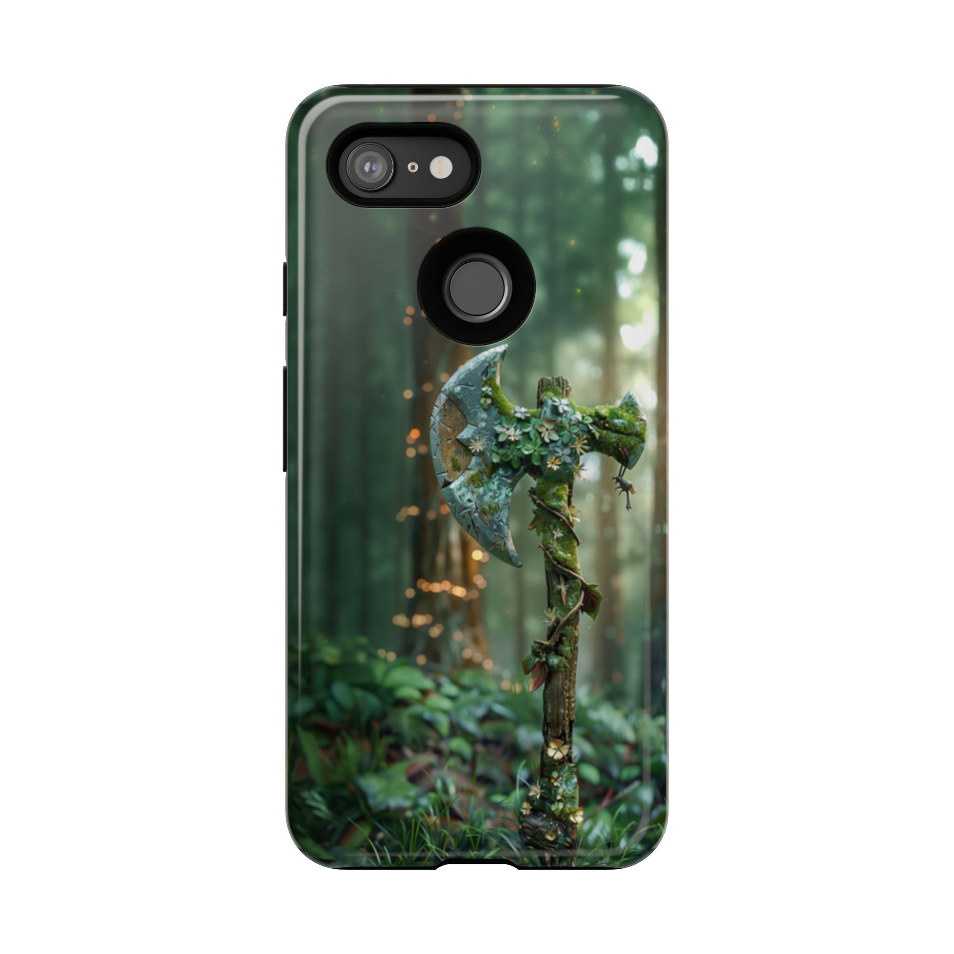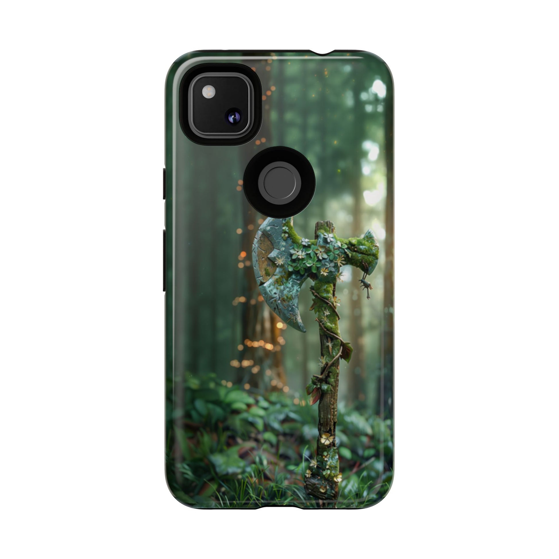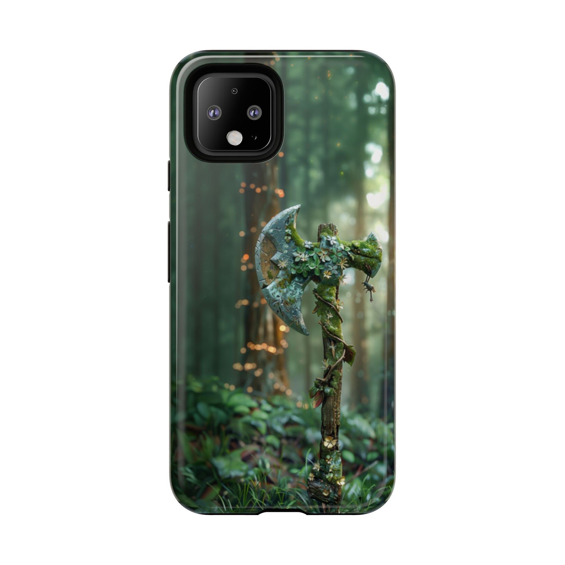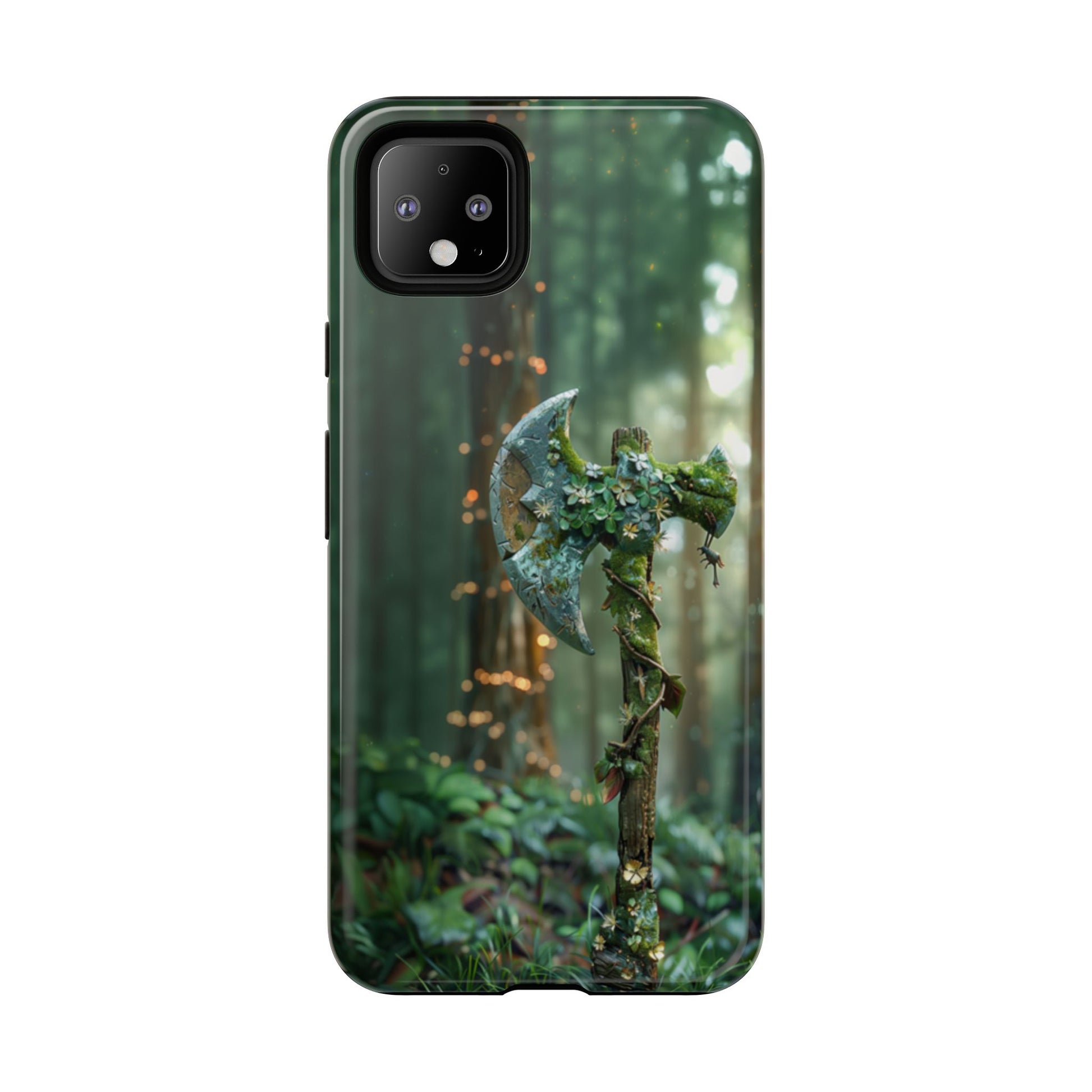 Discover the magic of nature reclaiming civilization with our enchanting Verdant Axe Google Pixel case. This captivating design features an ancient war axe lovingly embraced by nature's gentle touch - moss, delicate vines, and tiny wildflowers have made this forgotten weapon their home. Set in a mystical forest with soft bokeh lights filtering through the canopy, the scene captures the beautiful harmony between the strength of forged steel and the tender persistence of growing life. This peaceful yet powerful image speaks to the eternal cycle of nature and the beauty found in forgotten places. Perfect for nature lovers, fantasy enthusiasts, or anyone drawn to the magical coexistence of civilization and the wild.