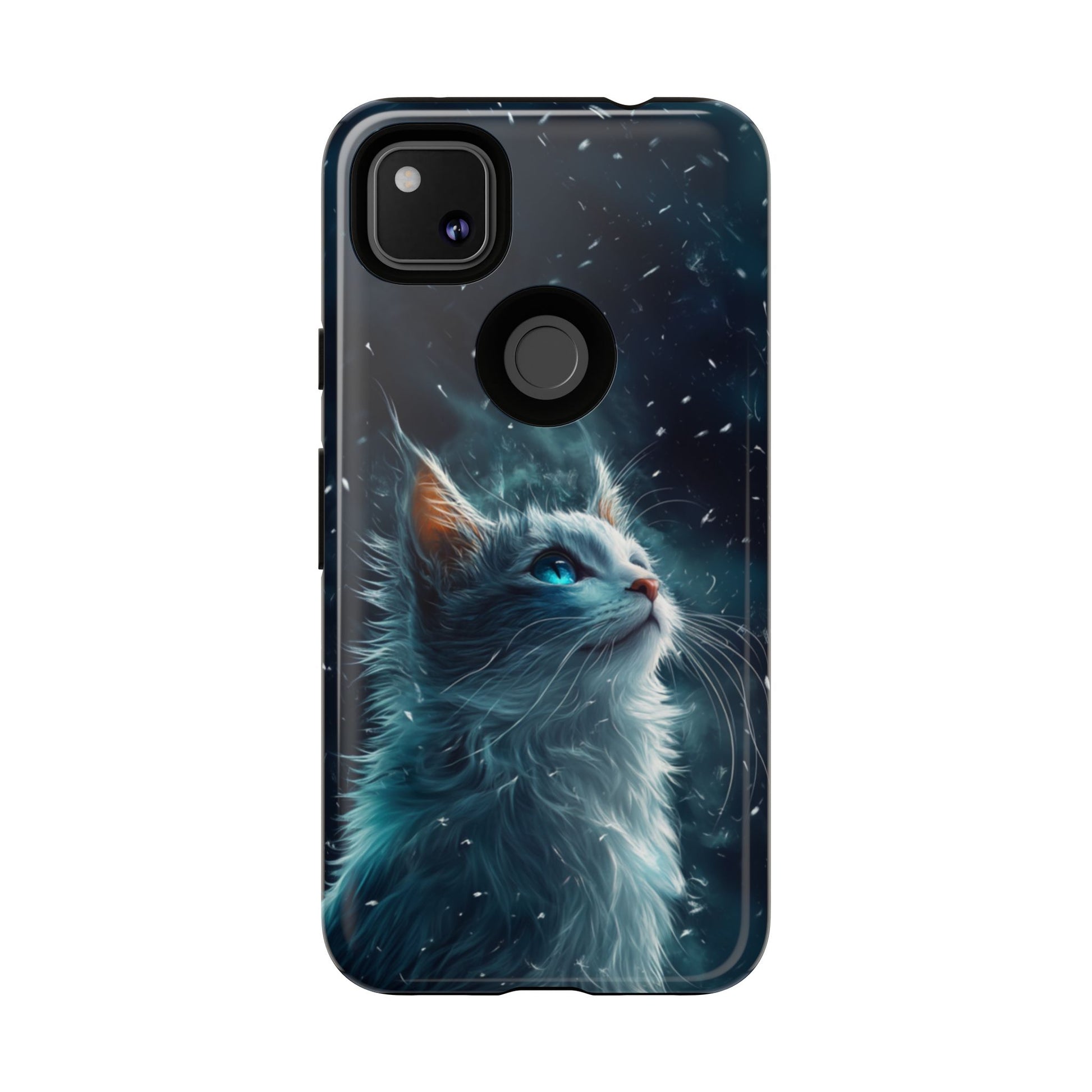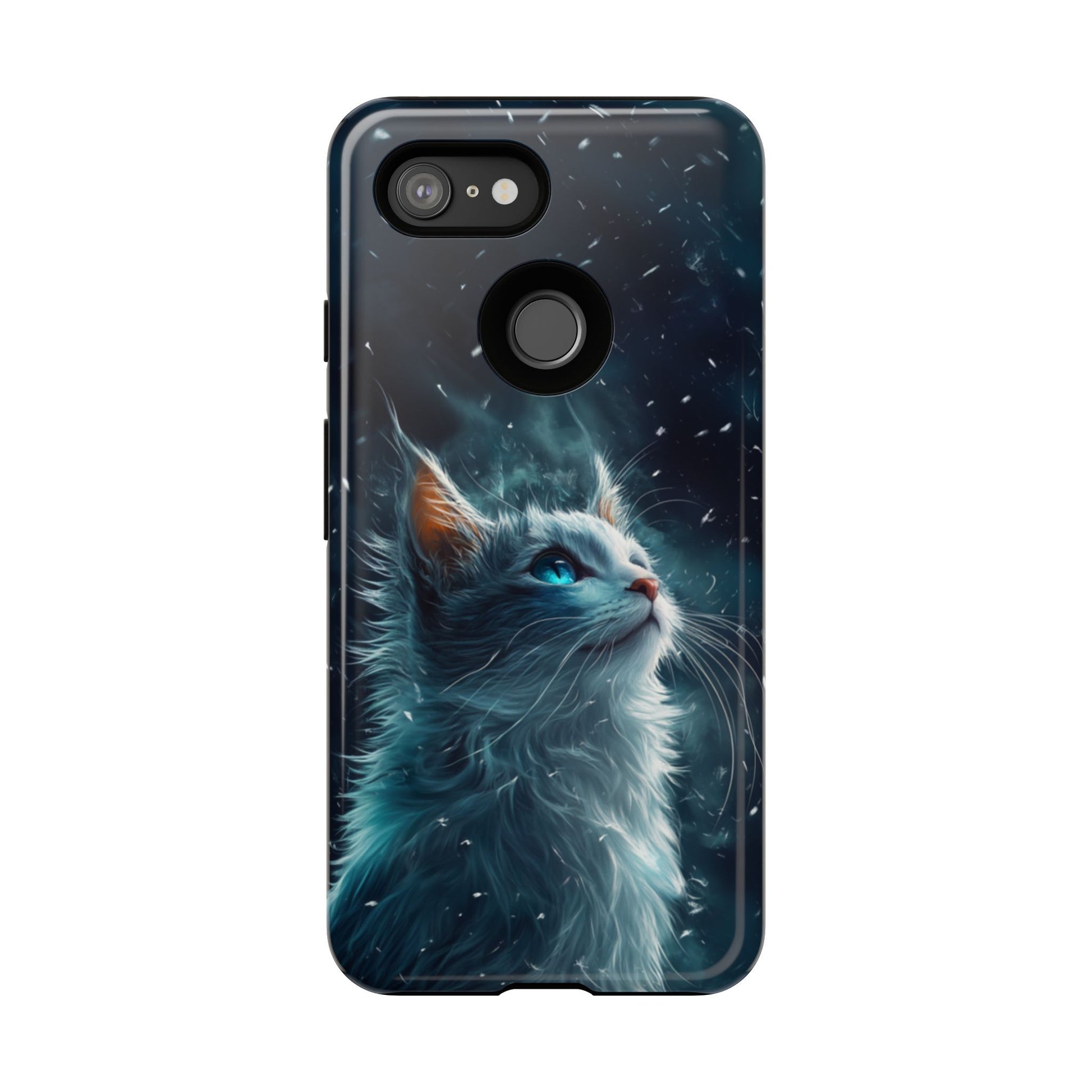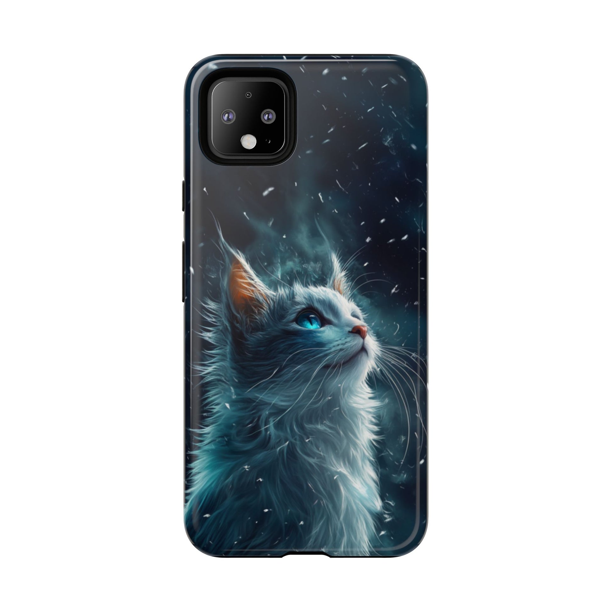 Discover pure tranquility with our enchanting Winter Cat Google Pixel case. This beautiful design features a serene feline with striking blue eyes gazing peacefully upward through gently falling snowflakes. The detailed fur texture in soft grays and whites captures every whisker and strand, while the dreamy blue-tinted atmosphere creates a sense of wonder and calm. Delicate snowflakes drift through the scene, adding movement and magic to this peaceful winter portrait. Perfect for cat lovers, winter enthusiasts, or anyone drawn to the quiet beauty of animals in their natural seasonal environment.